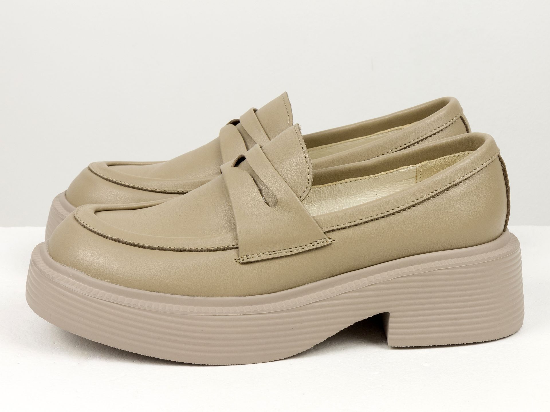 Женские туфли-лоферы из натуральной кожи бежевого цвета на утолщенной подошве Gino Figini
