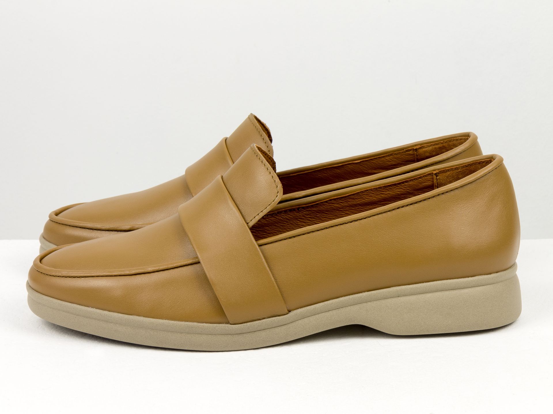 Женские карамельные лоферы из натуральной кожи Gino Figini