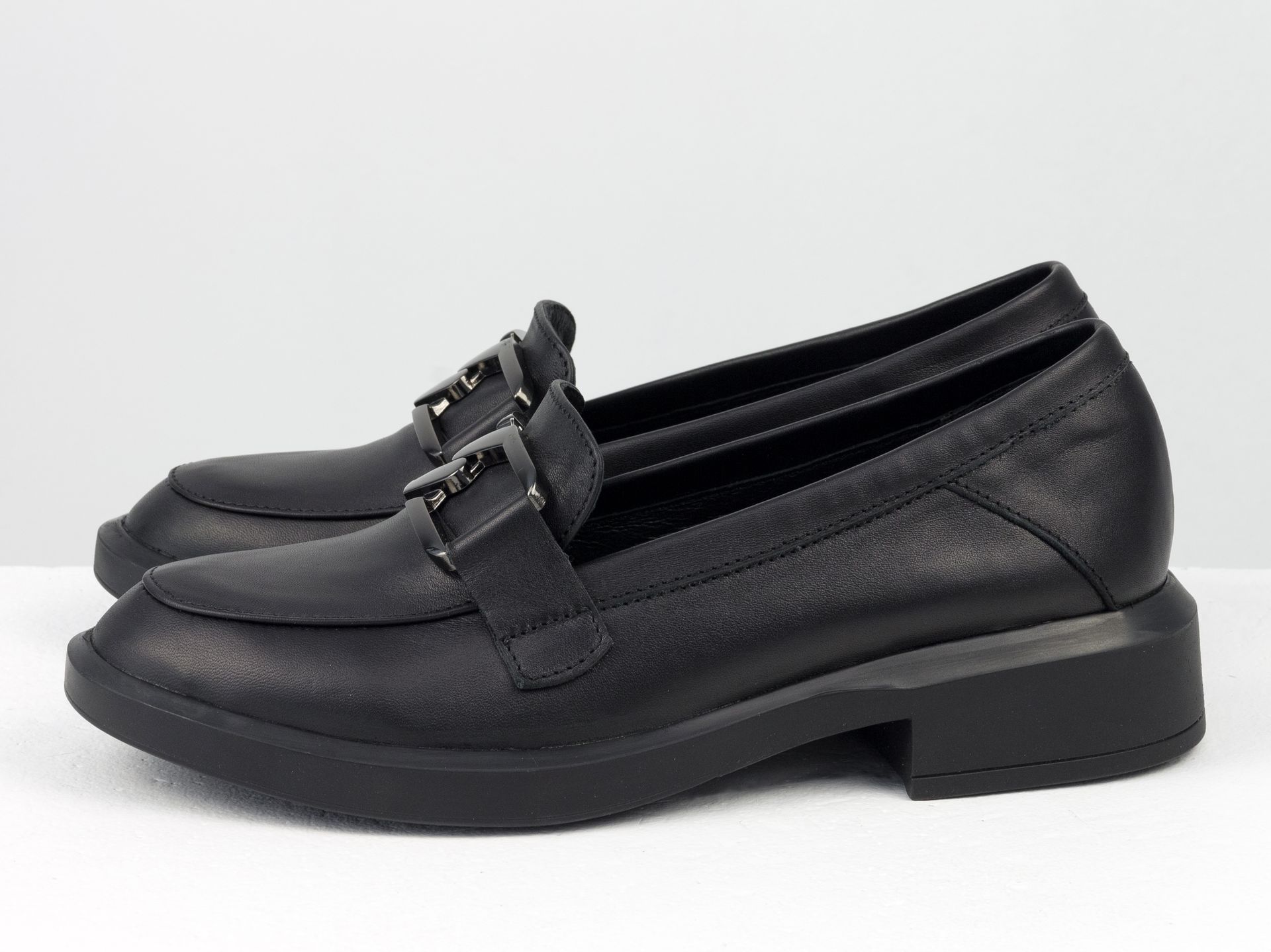 Женские лоферы из кожи черного цвета с фурнитурой Gino Figini