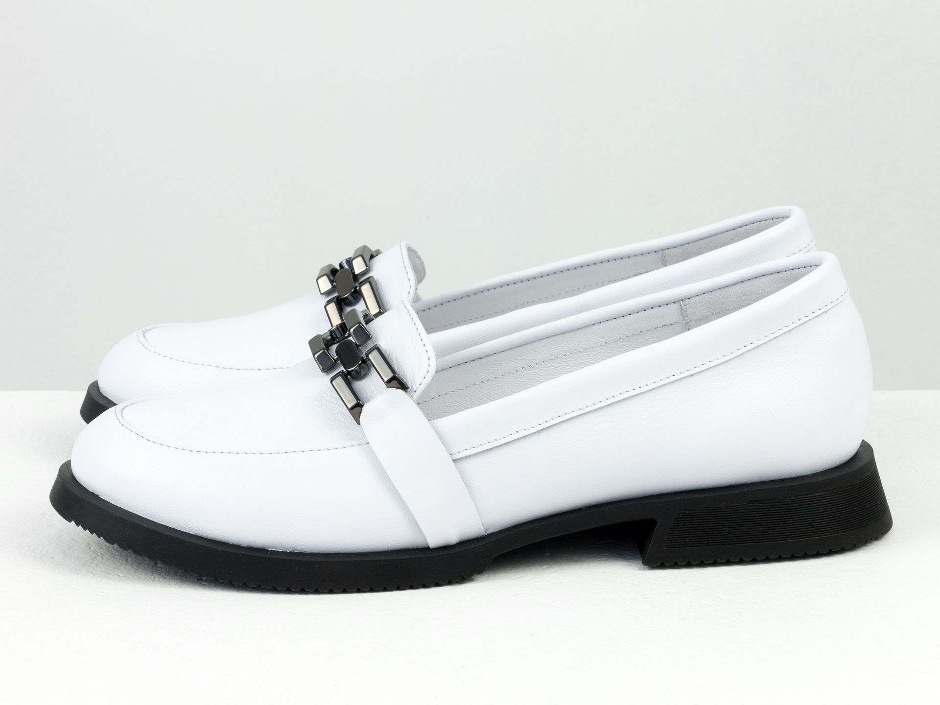Женские лоферы из кожи белого цвета с фурнитурой Gino Figini