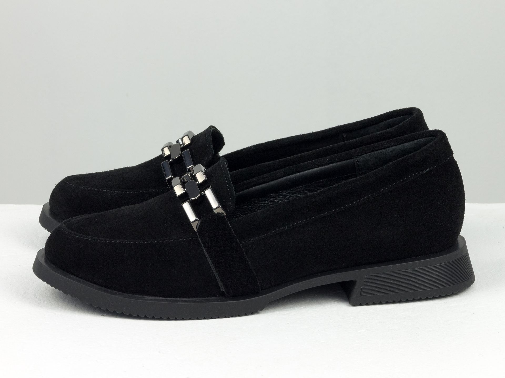 Женские лоферы из замши черного цвета с фуртитурой Gino Figini