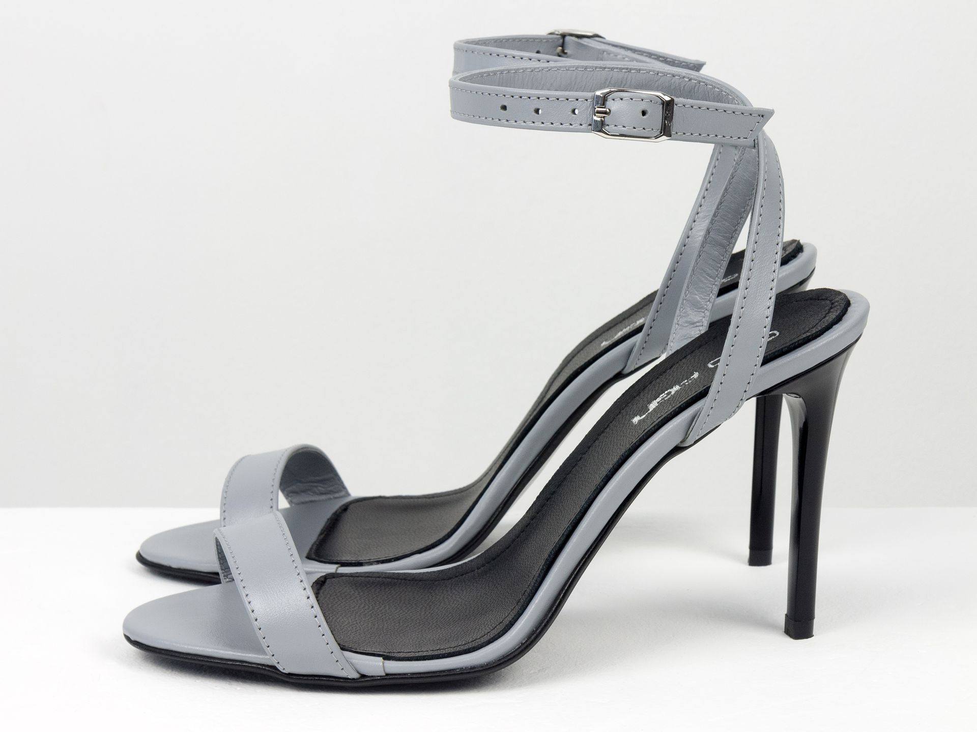 Классические босоножки из натуральной кожи серого цвета на каблуке Gino Figini