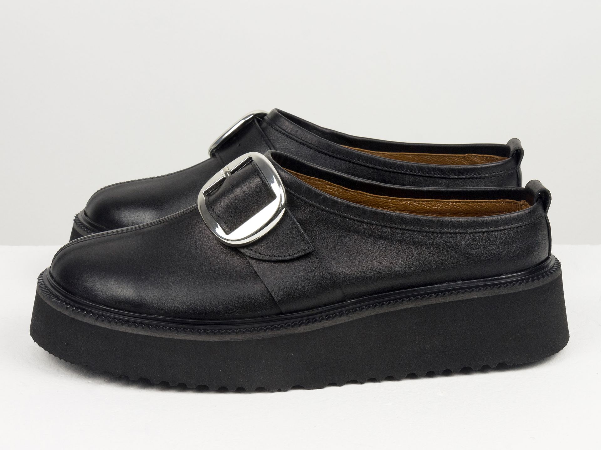 Мюли на низком ходу из натуральной кожи черного цвета с фурнитурой Gino Figini