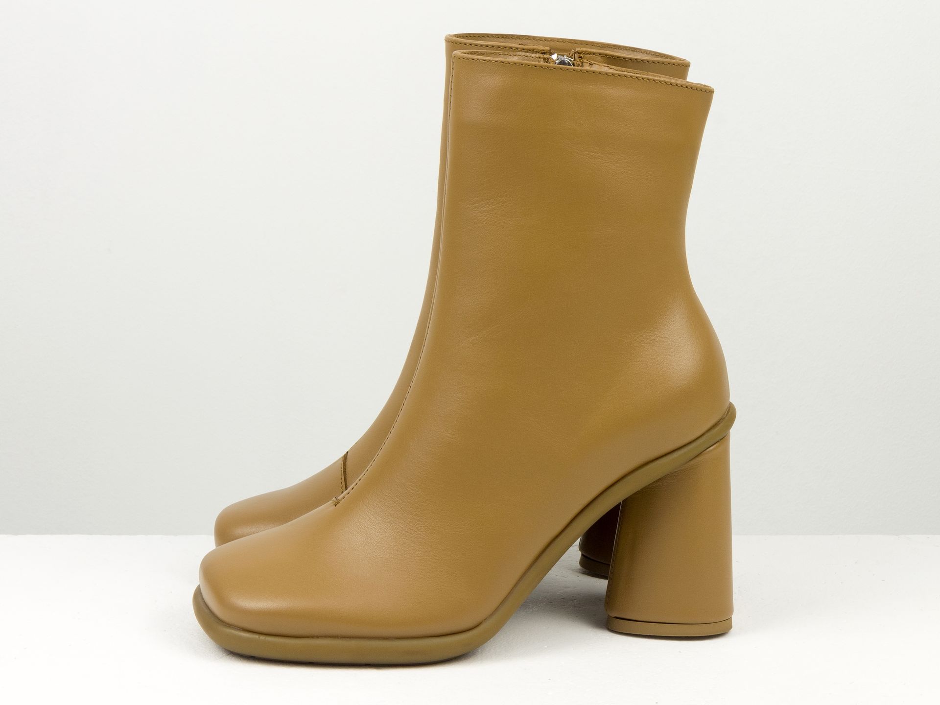 Дизайнерские ботильоны карамельного цвета из натуральной кожи на невысоком обтяжном каблуке Gino Figini