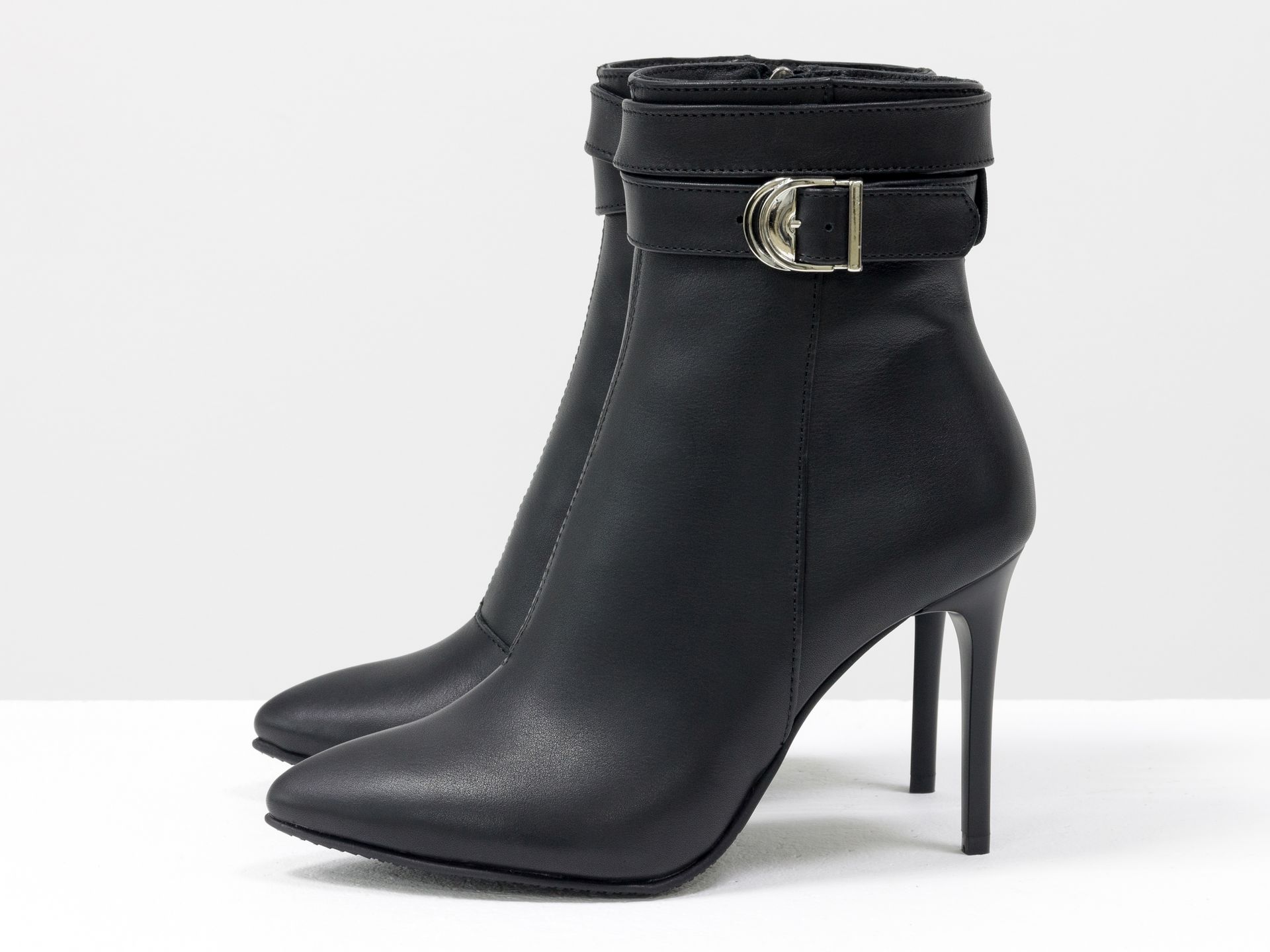 Классические ботильоны на шпильке из кожи черного цвета с ремешком Gino Figini