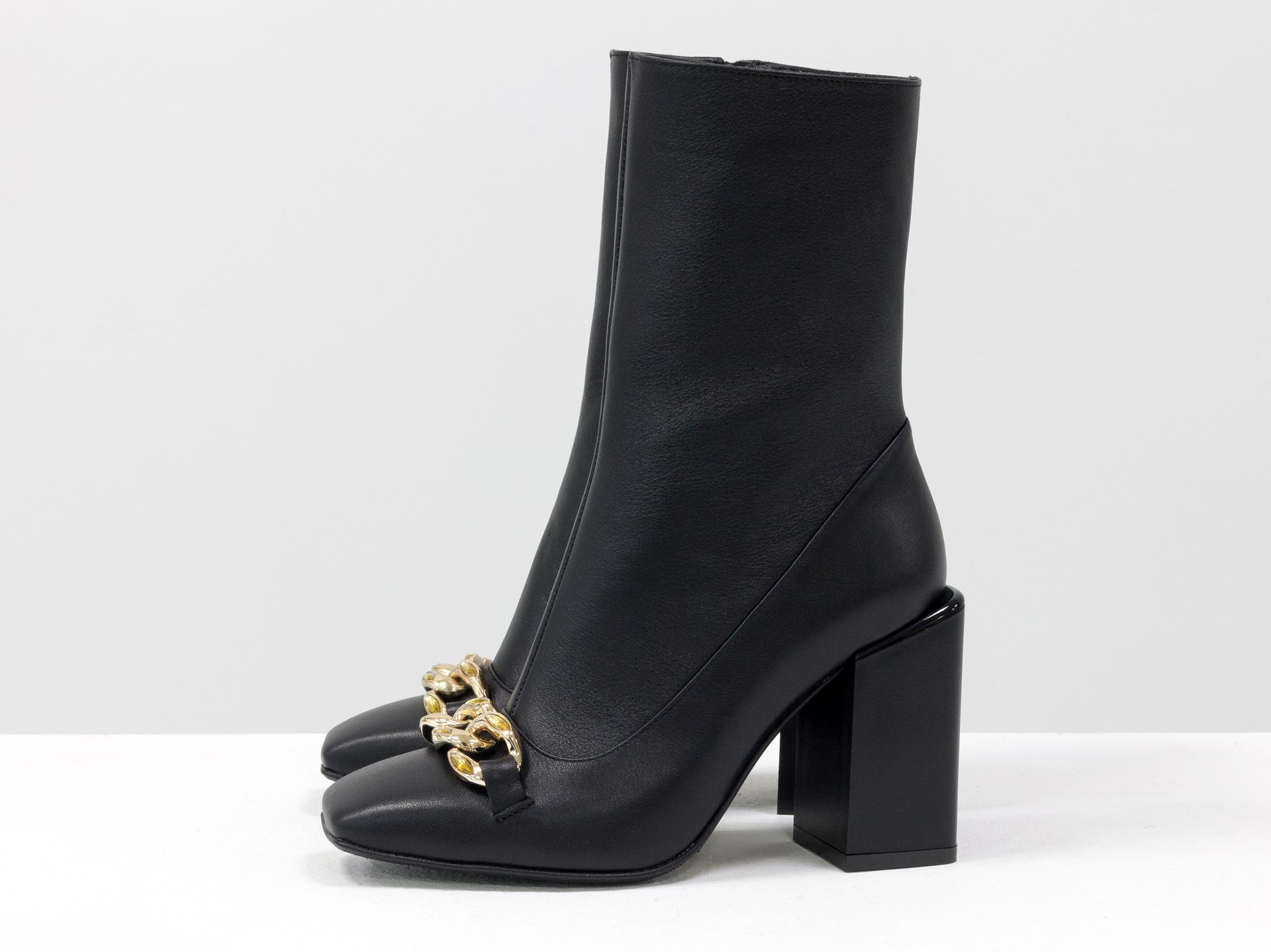 Женские классические ботинки черного цвета из натуральной кожи с фурнитурой Gino Figini