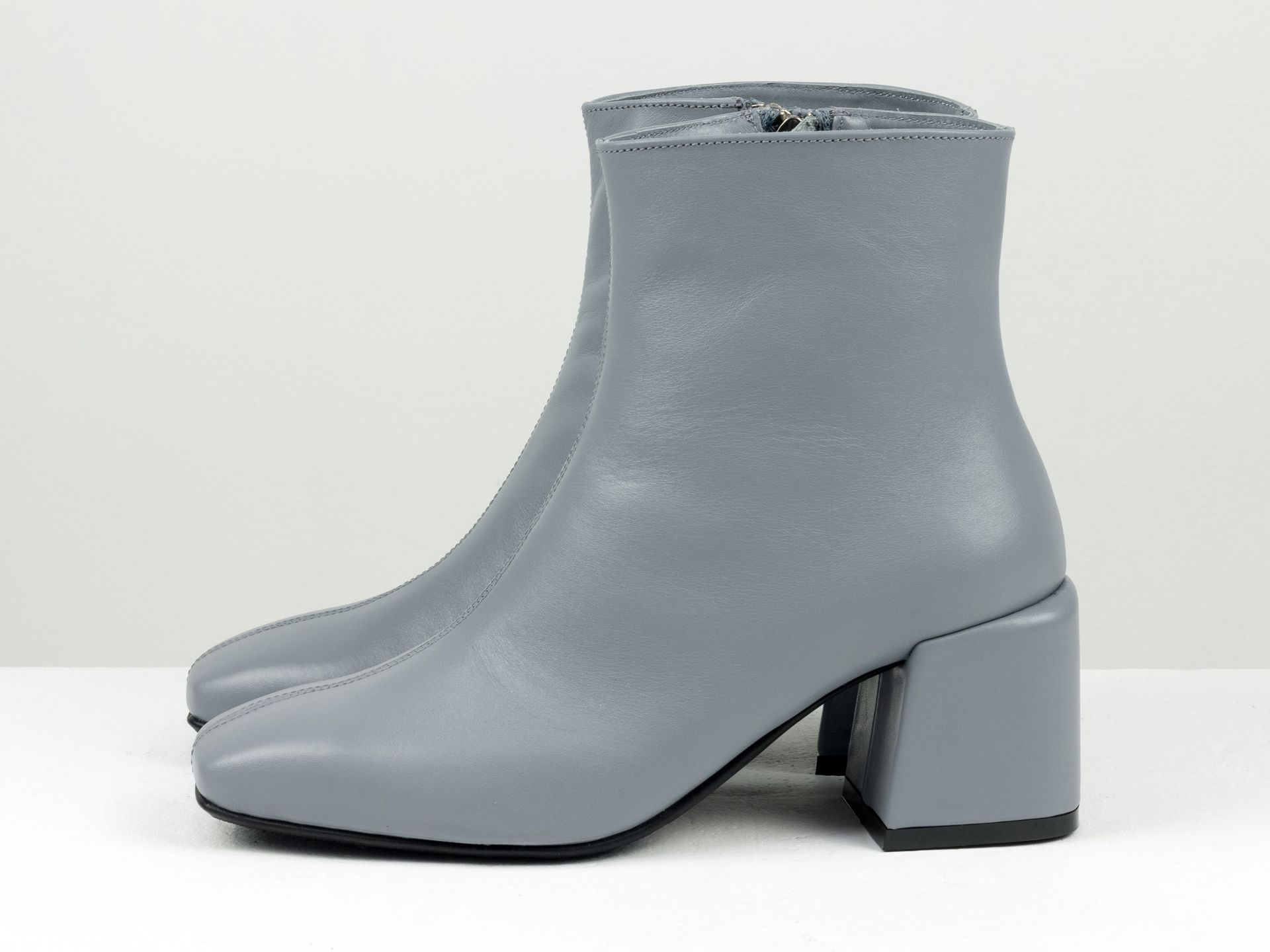 Женские серые ботинки из натуральной кожи с обтяжным каблуком Gino Figini