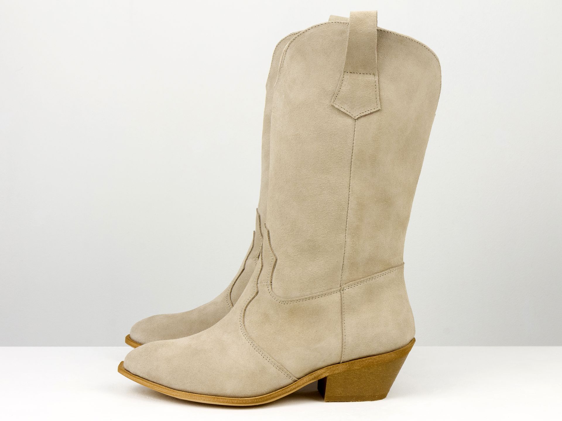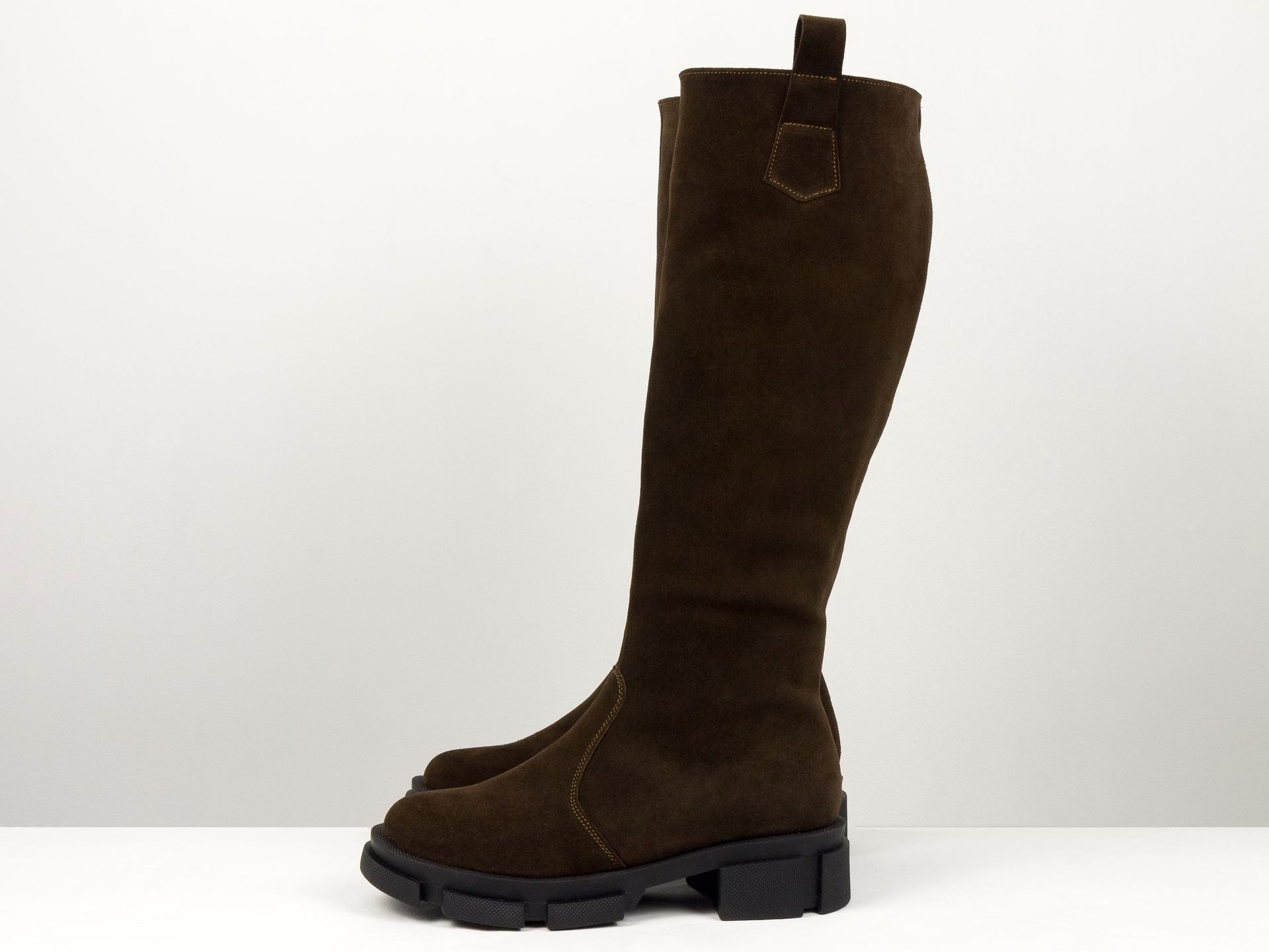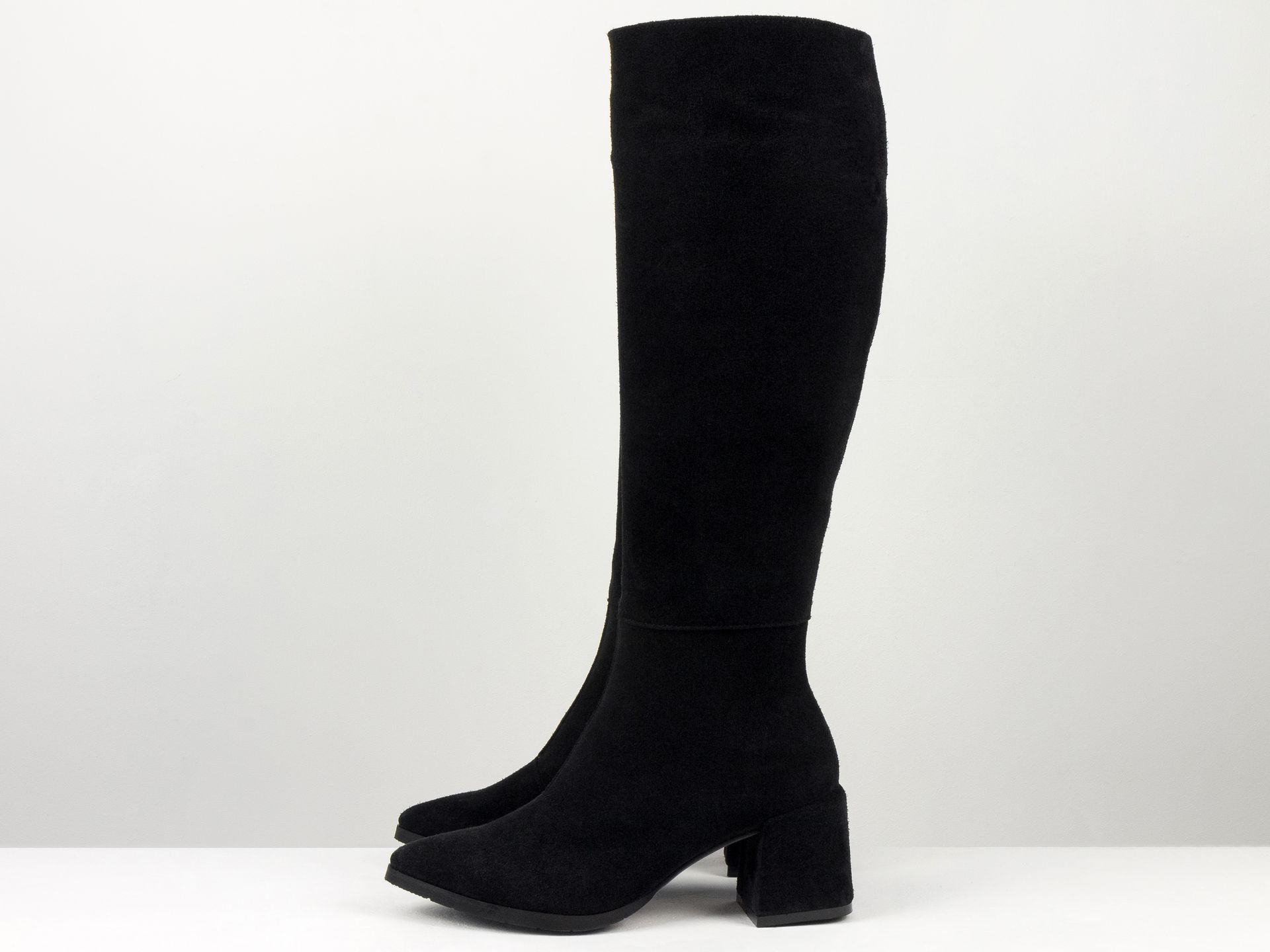Замшевые модели сапог великолепно подчеркивают женские образы своим презентабельным и привлекательным видом. Они приятны на ощупь, мягкие и удобные, а внутренняя отделка со стелькой выполняются из байки, меха и других качественных материалов. В качестве застежки во всех моделях используются молнии, замочки, резинки, шнурки и другие элементы.