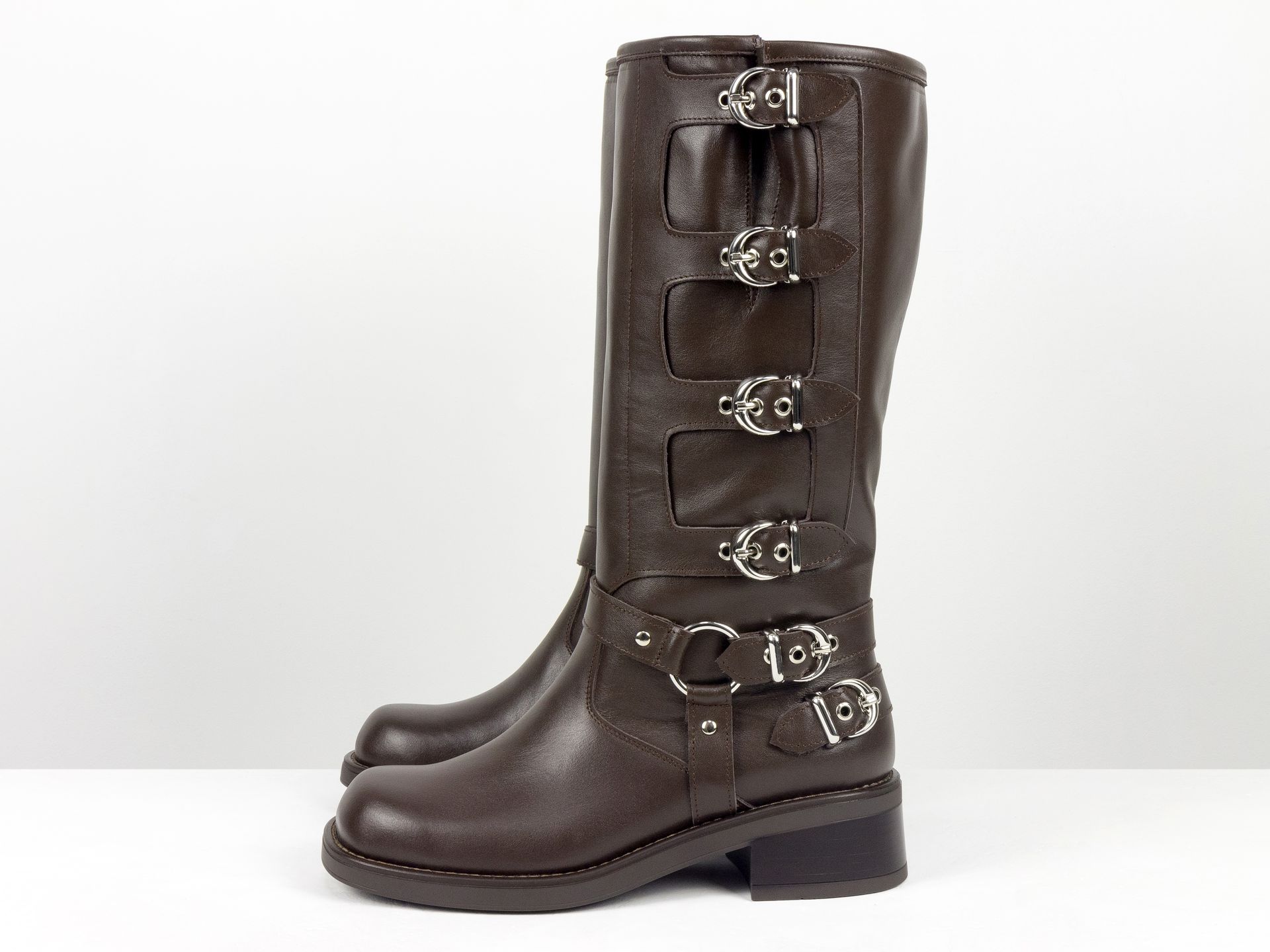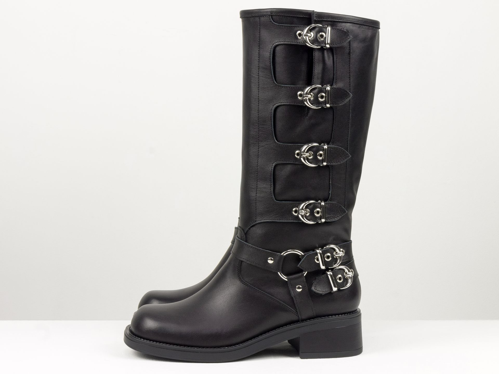 Подошва у обуви итальянского производителя выполняется с применением качественных, прочных и эластичных термопласта и полиуретана. Эти материалы обладают противоскользящим эффектом, амортизационными свойствами и потому сапоги любой модели обеспечивают полную безопасность при хождении на любой поверхности. Каждая пара имеет либо широкий, устойчивый и невысокий каблук, платформу, или шпильку.