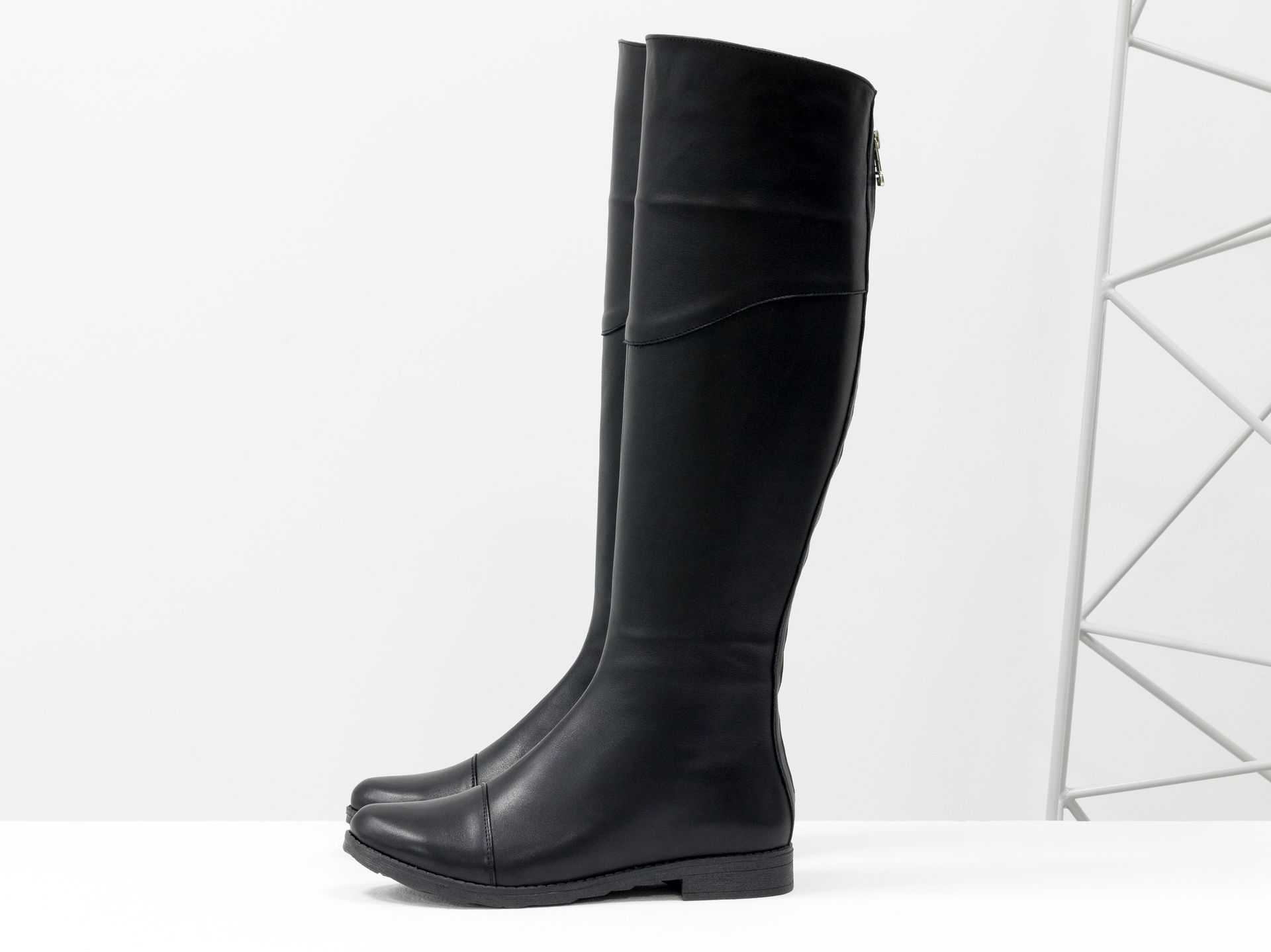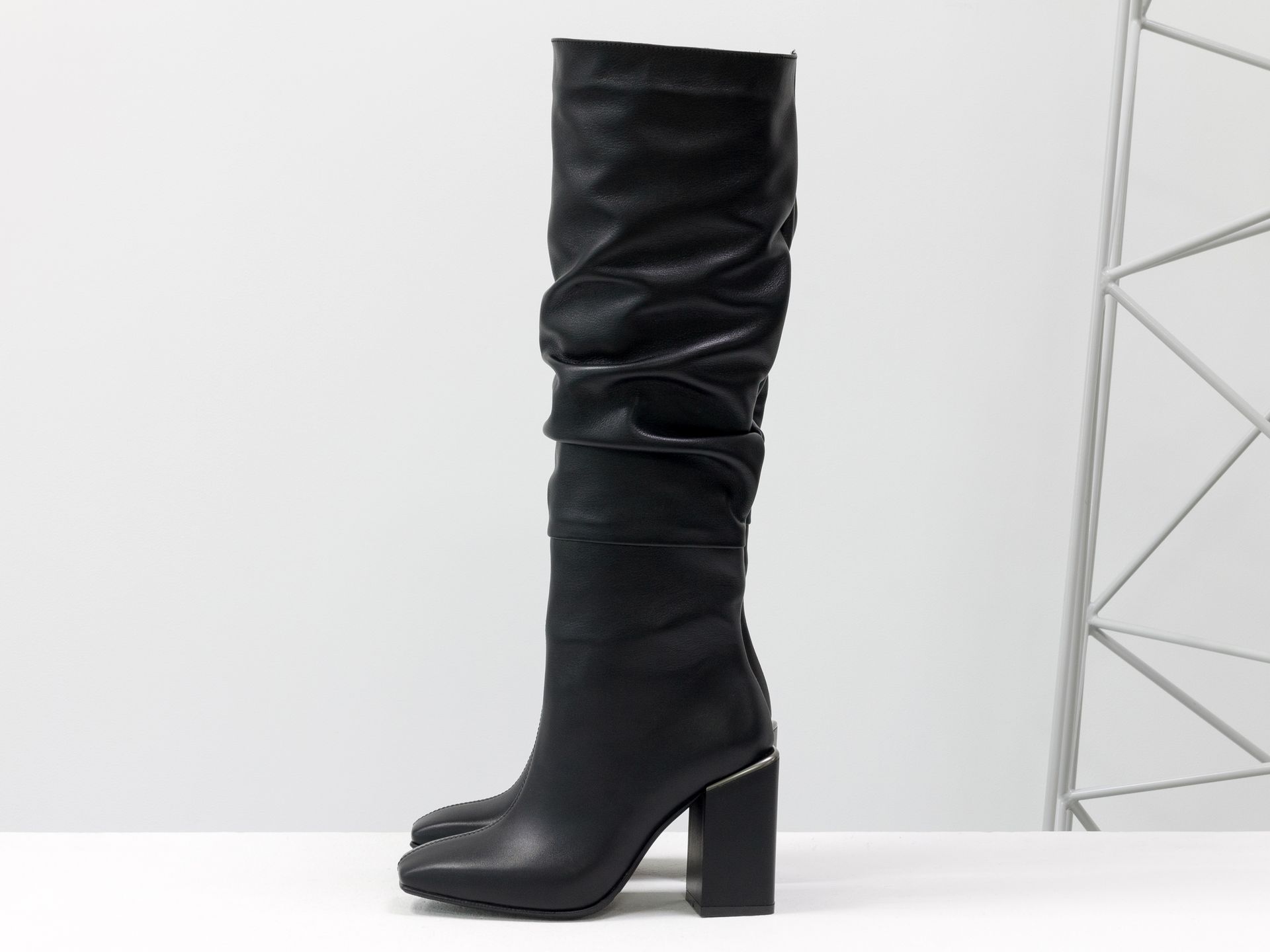 Cапоги из черной натуральной кожи на матовом квадратном каблуке, М-2089-01