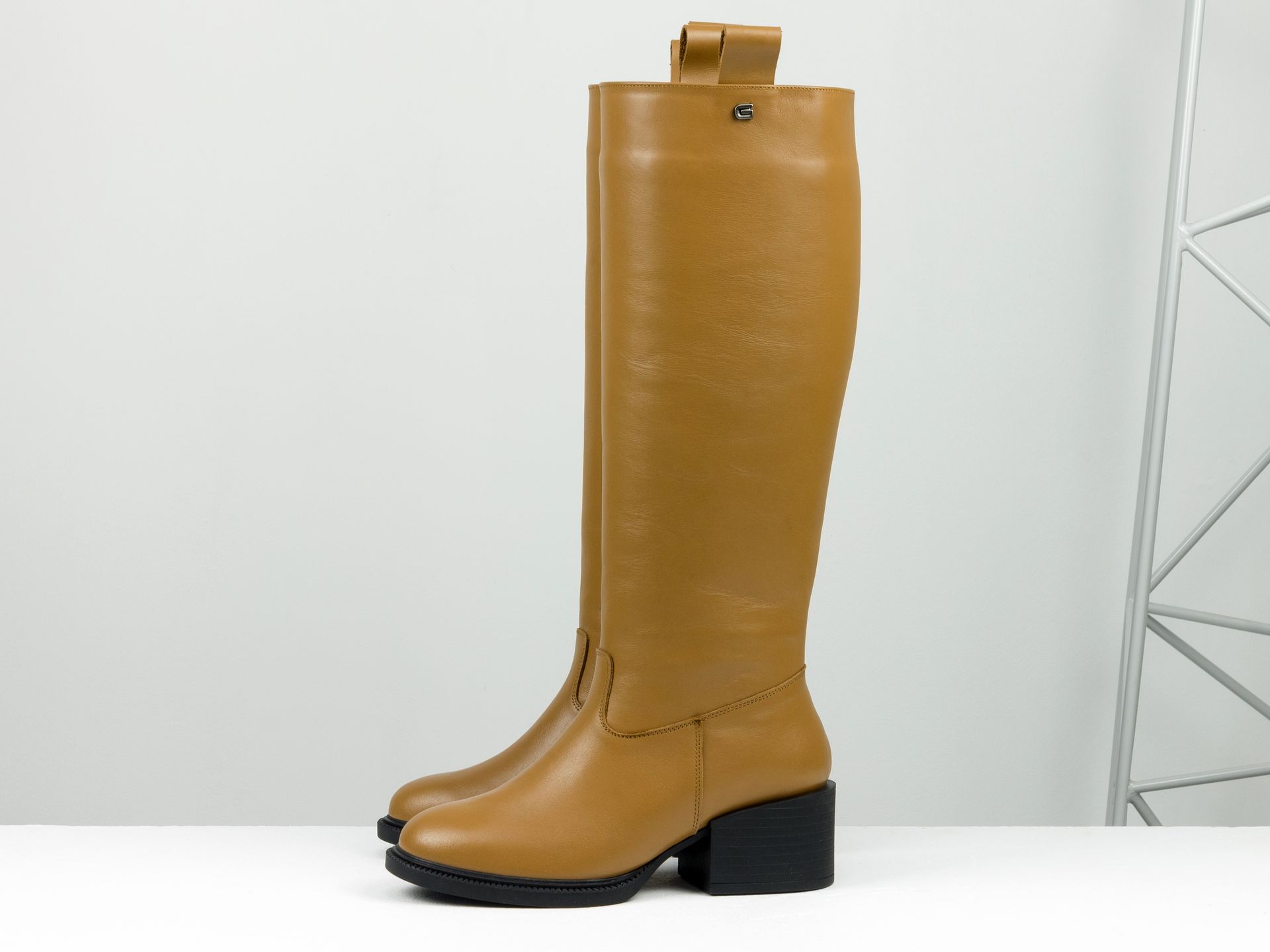 Женские сапоги свободного одевания из карамельной кожи на невысоком каблуке Gino Figini