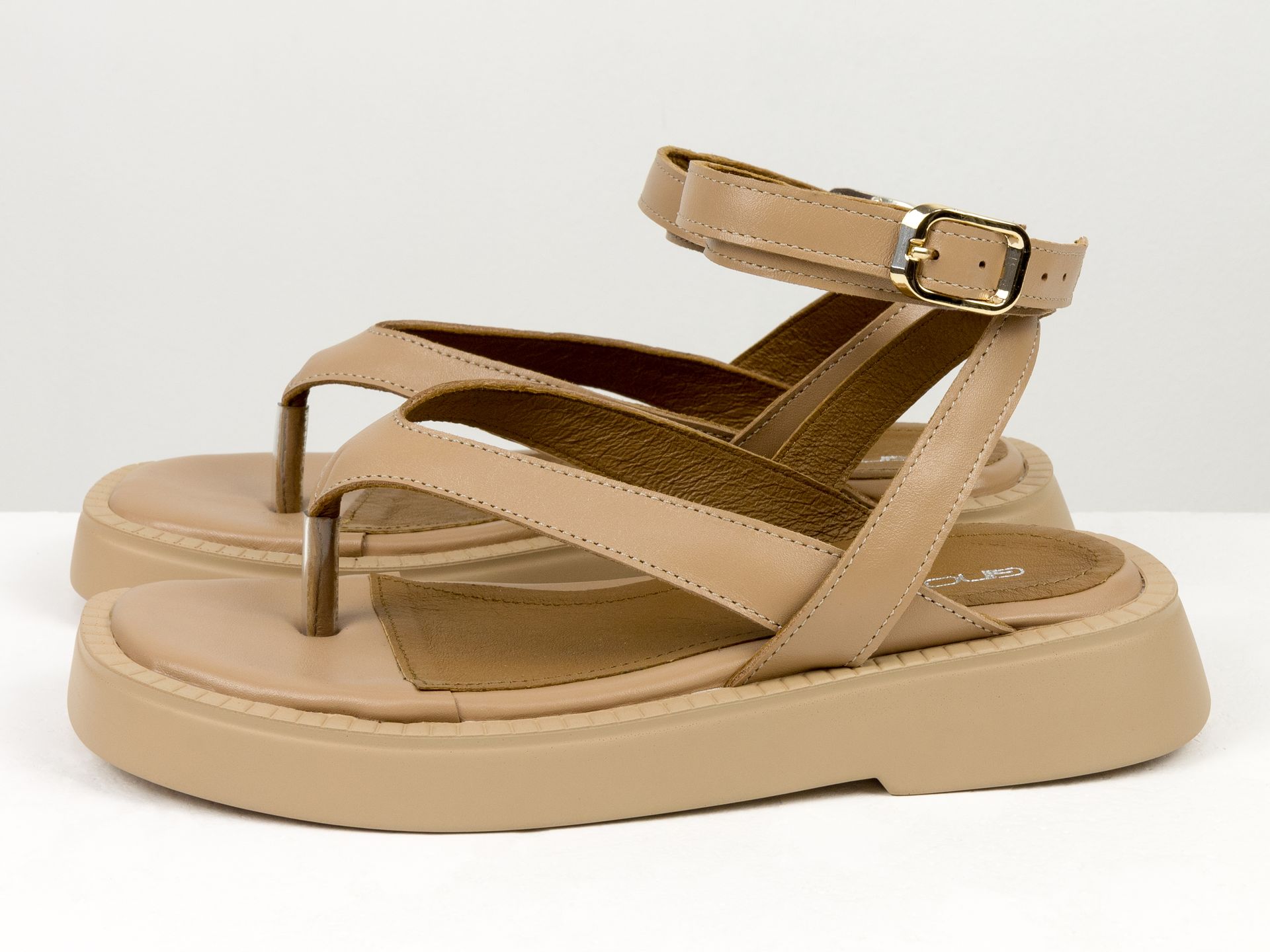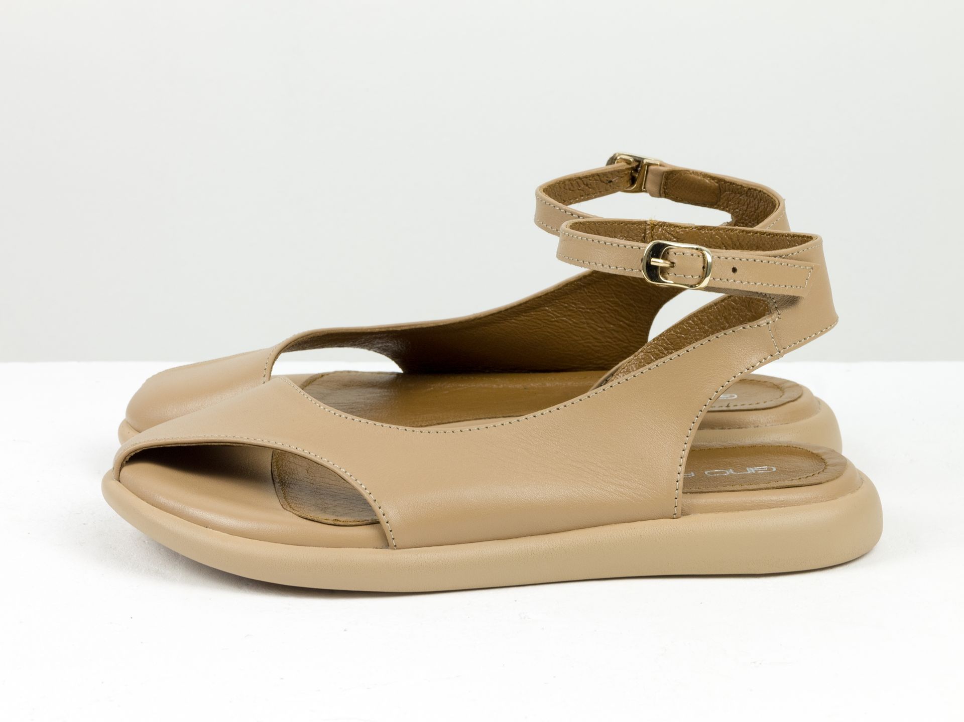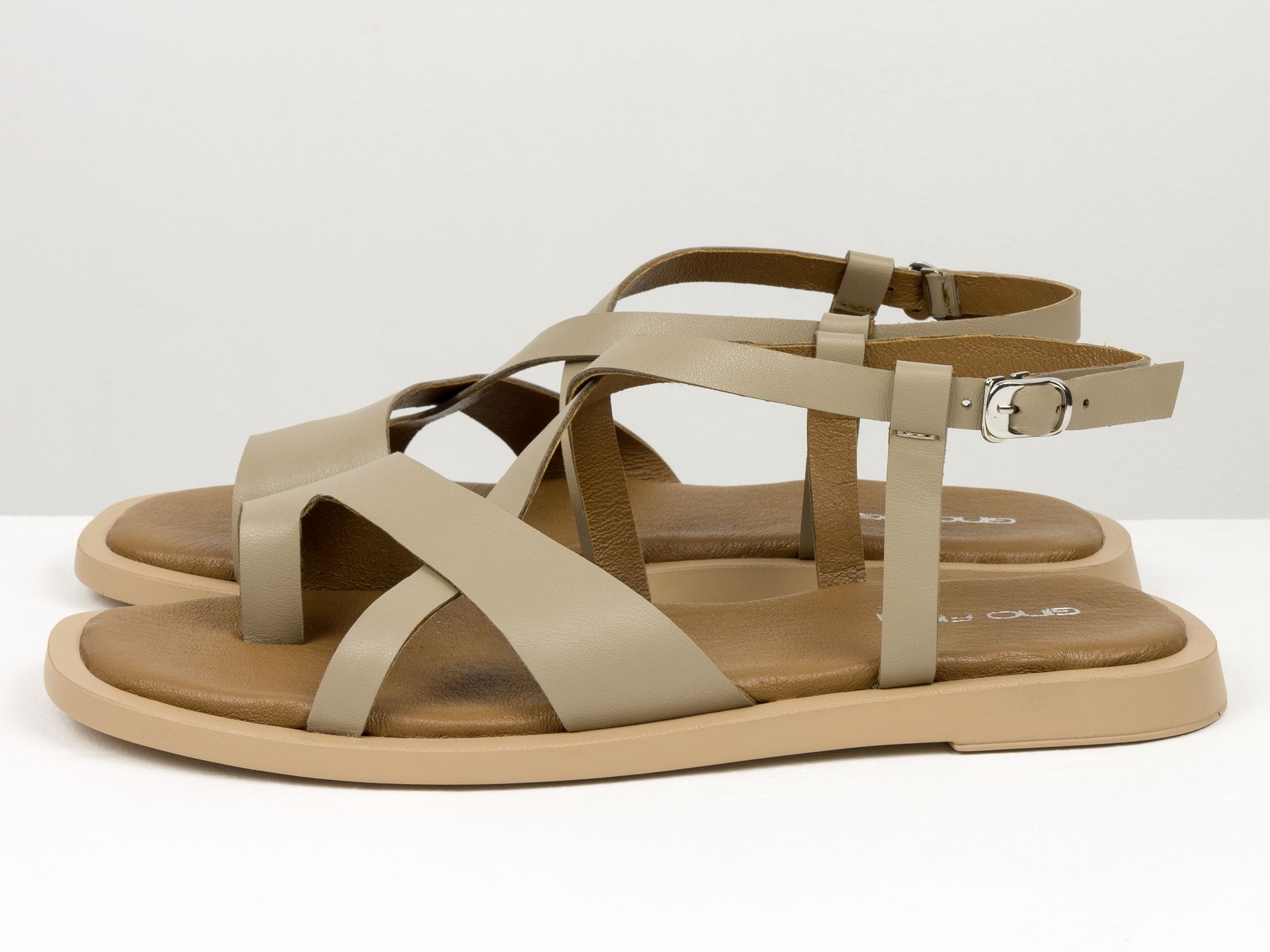 Дизайнерские женские босоножки с ремешком на облегченной подошве из натуральной кожи цвета капучино Gino Figini
