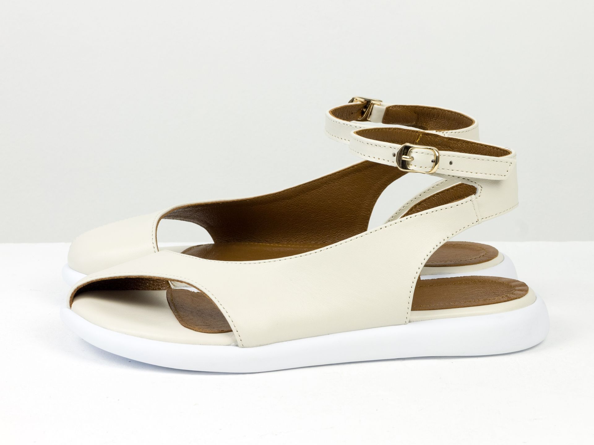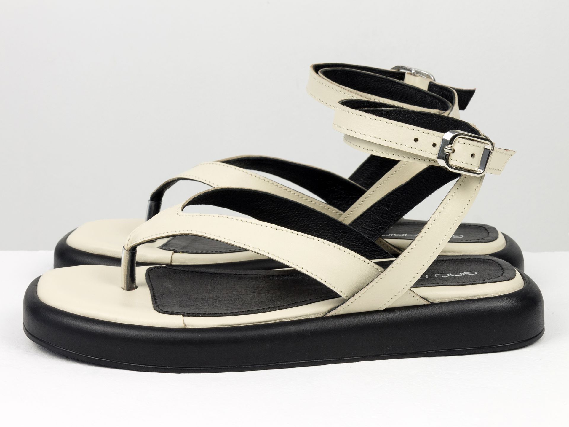 Дизайнерские женские босоножки с ремешком на облегченной подошве из натуральной кожи молочного цвета Gino Figini