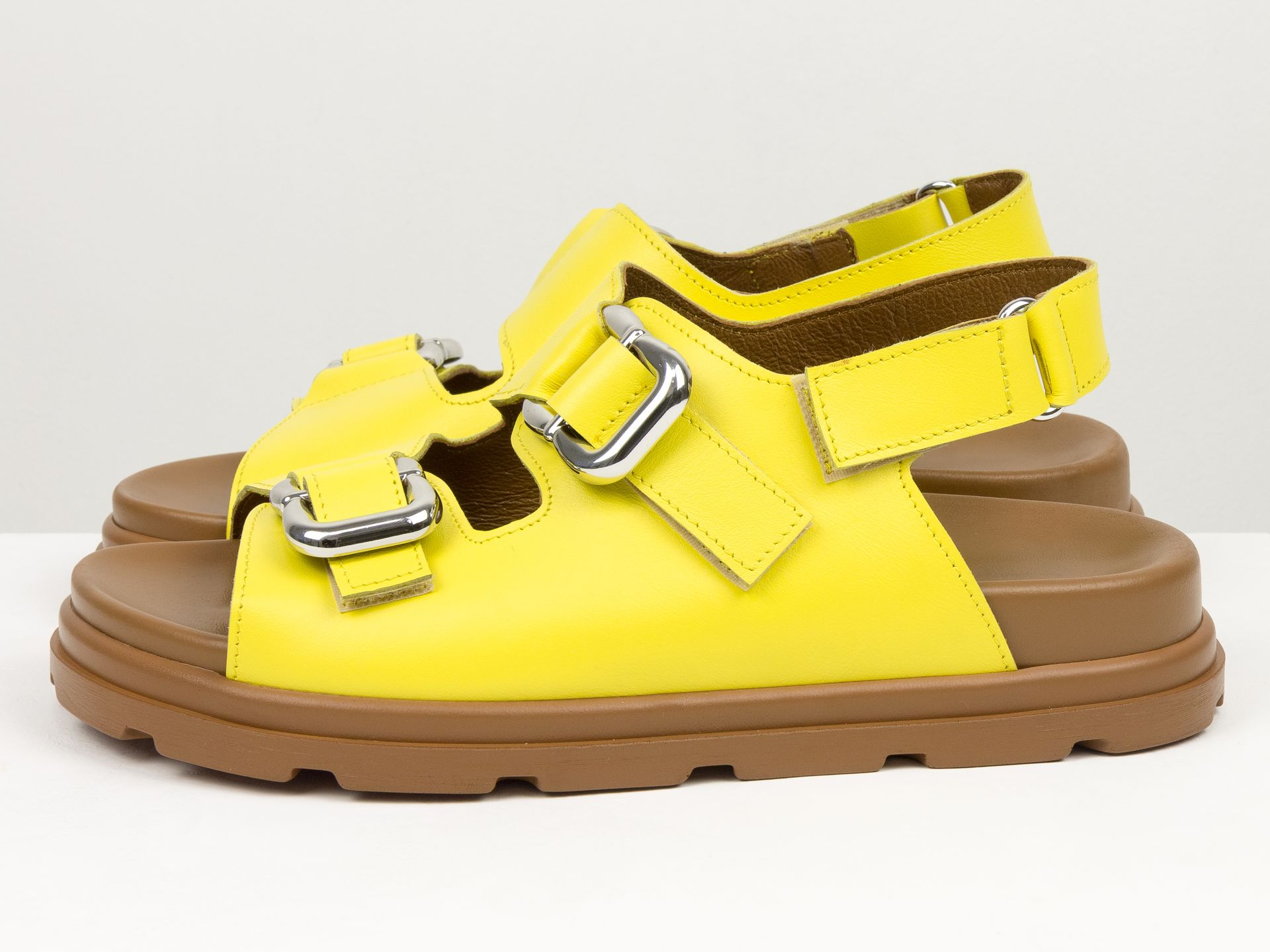 Женские кожаные сандалии желтого цвета с массивными пряжками Gino Figini