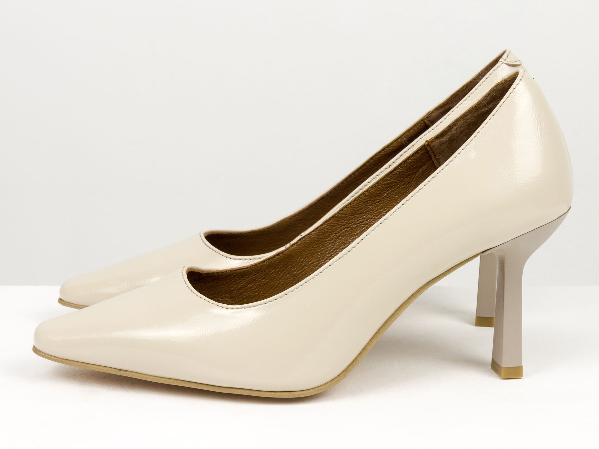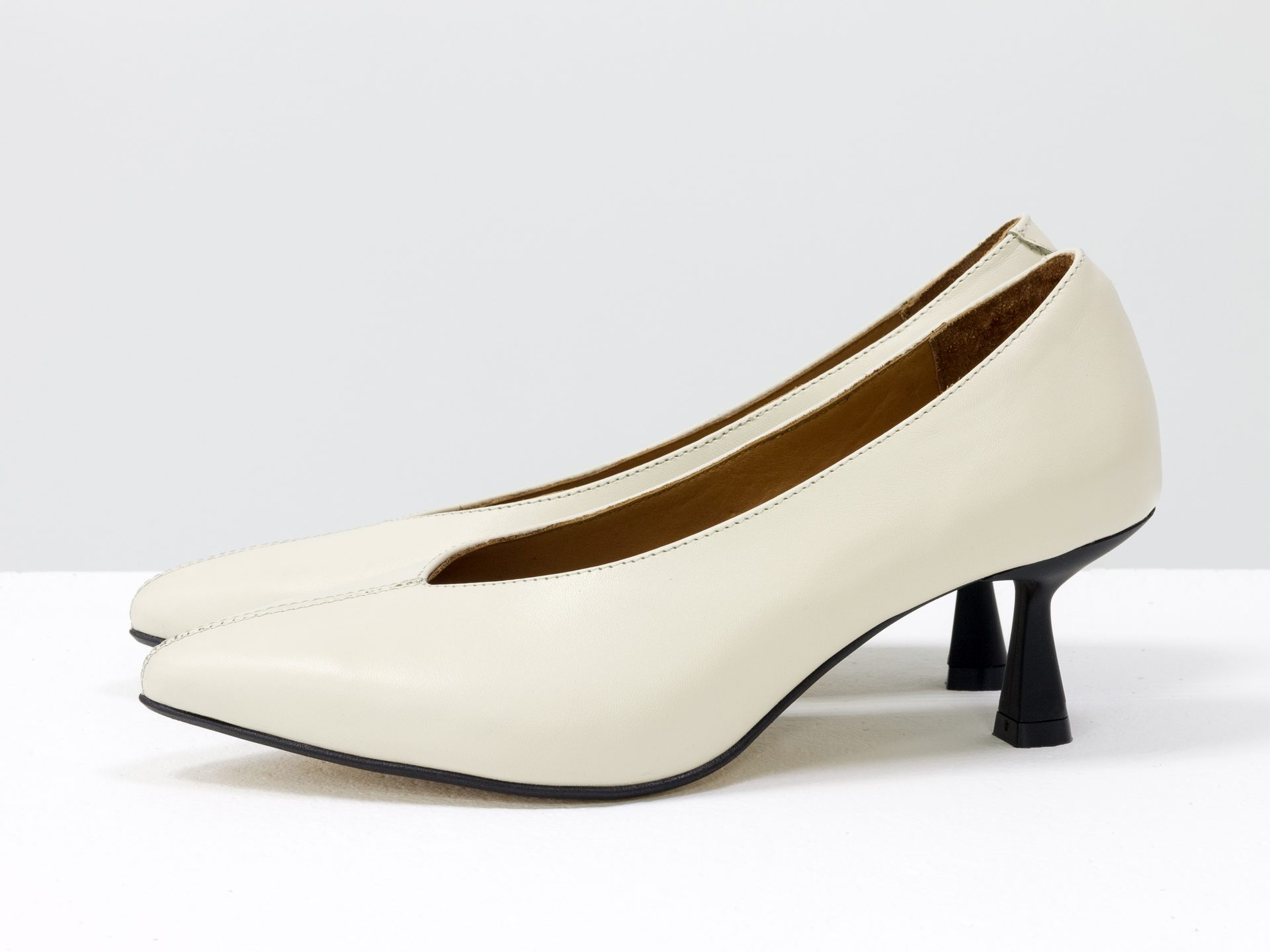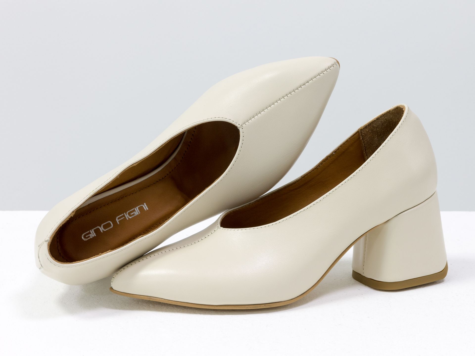 Дизайнерські туфлі човники на підборах з натуральної італійської шкіри наплак кольору "айворі" Gino Figini