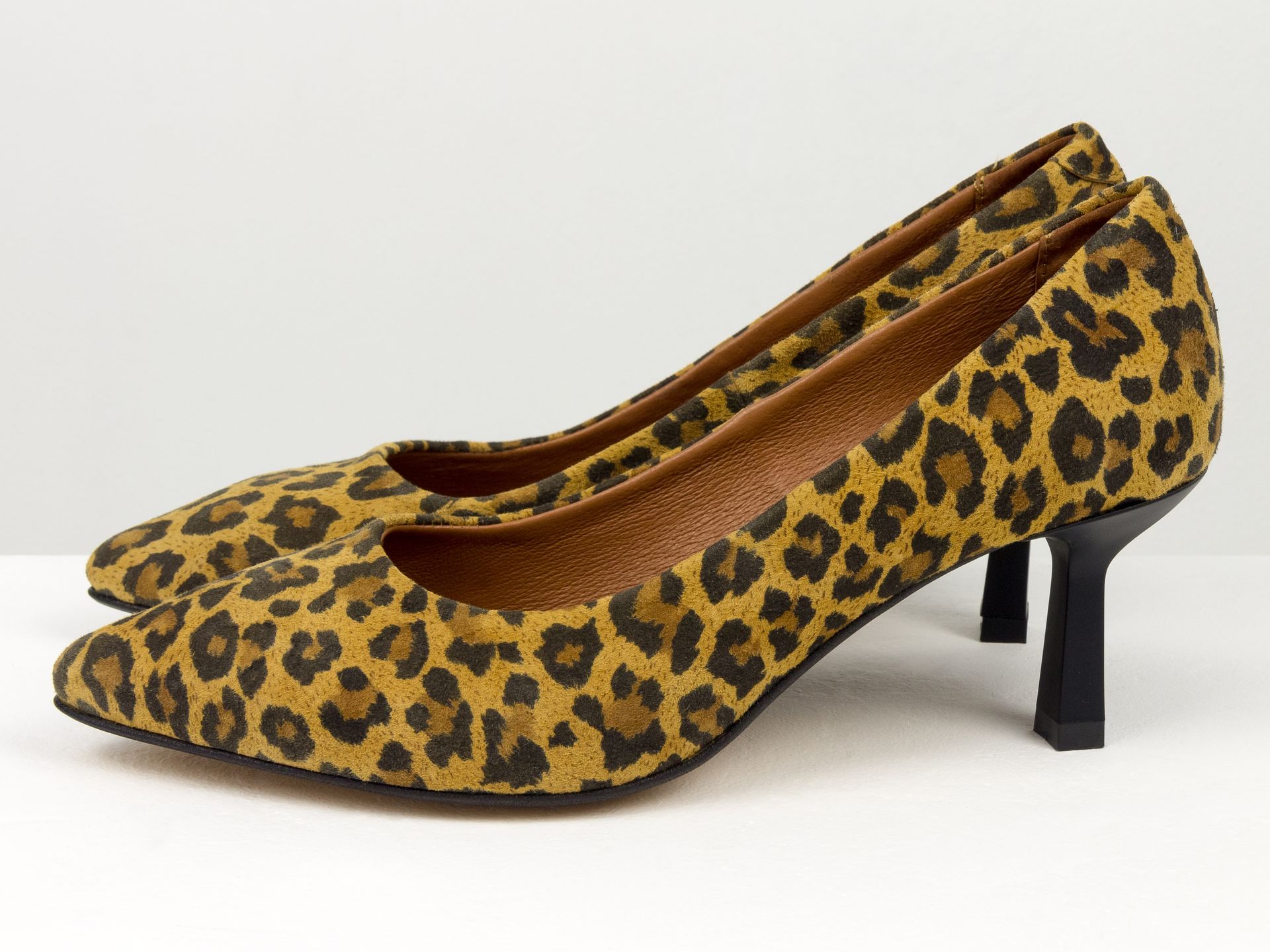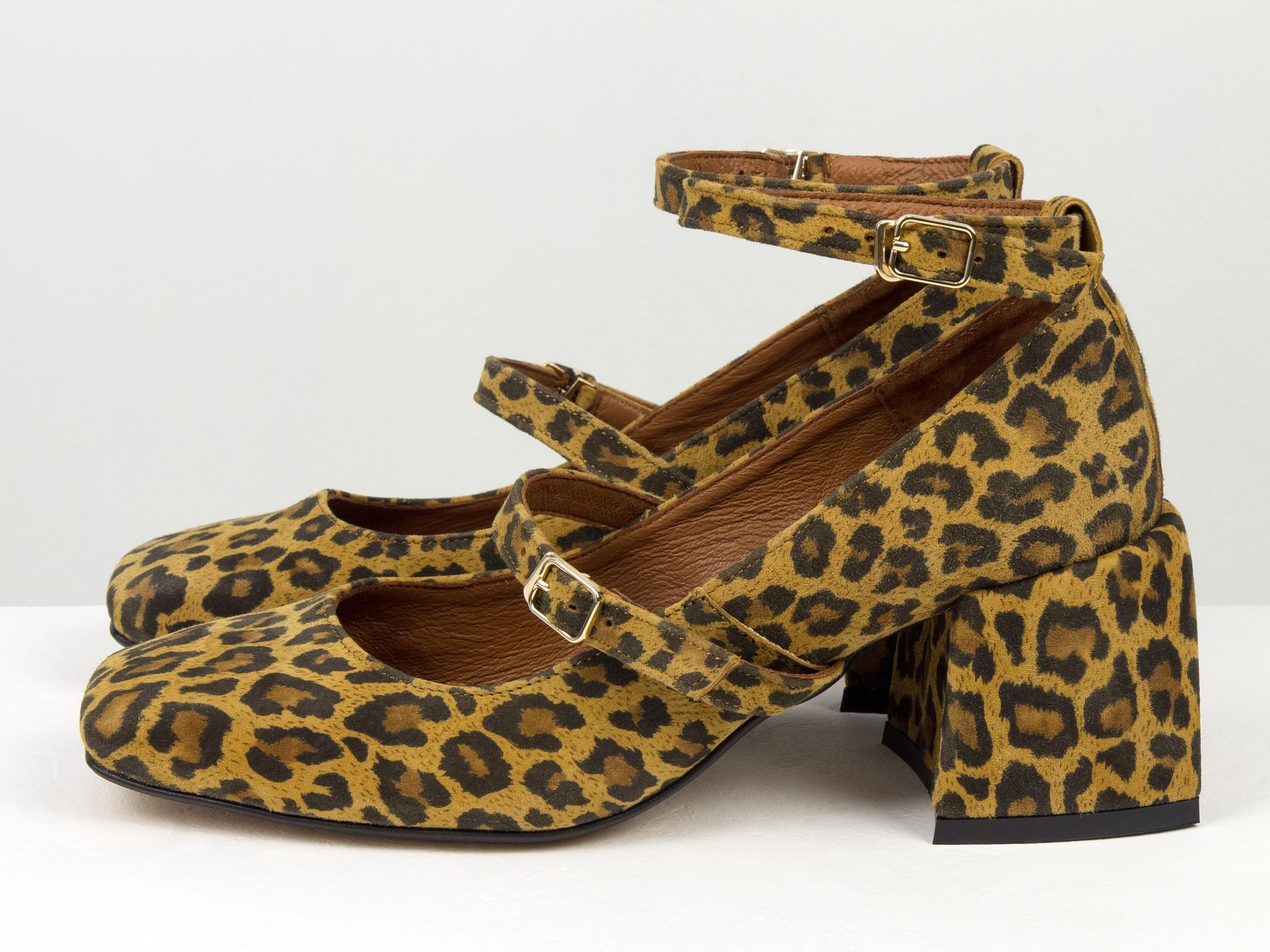 Дизайнерські туфлі на невисокому обтяжному підборі з натуральної італійської шкіри леопардового кольору з ремінцями Gino Figini