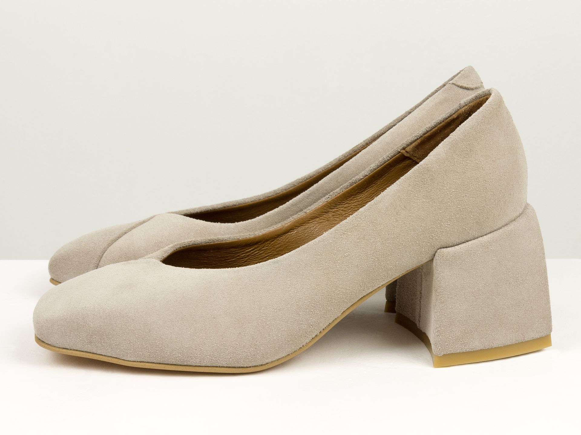 Дизайнерські туфлі на невисокому обтяжному підборі з натуральної італійської замші бежевого кольору Gino Figini