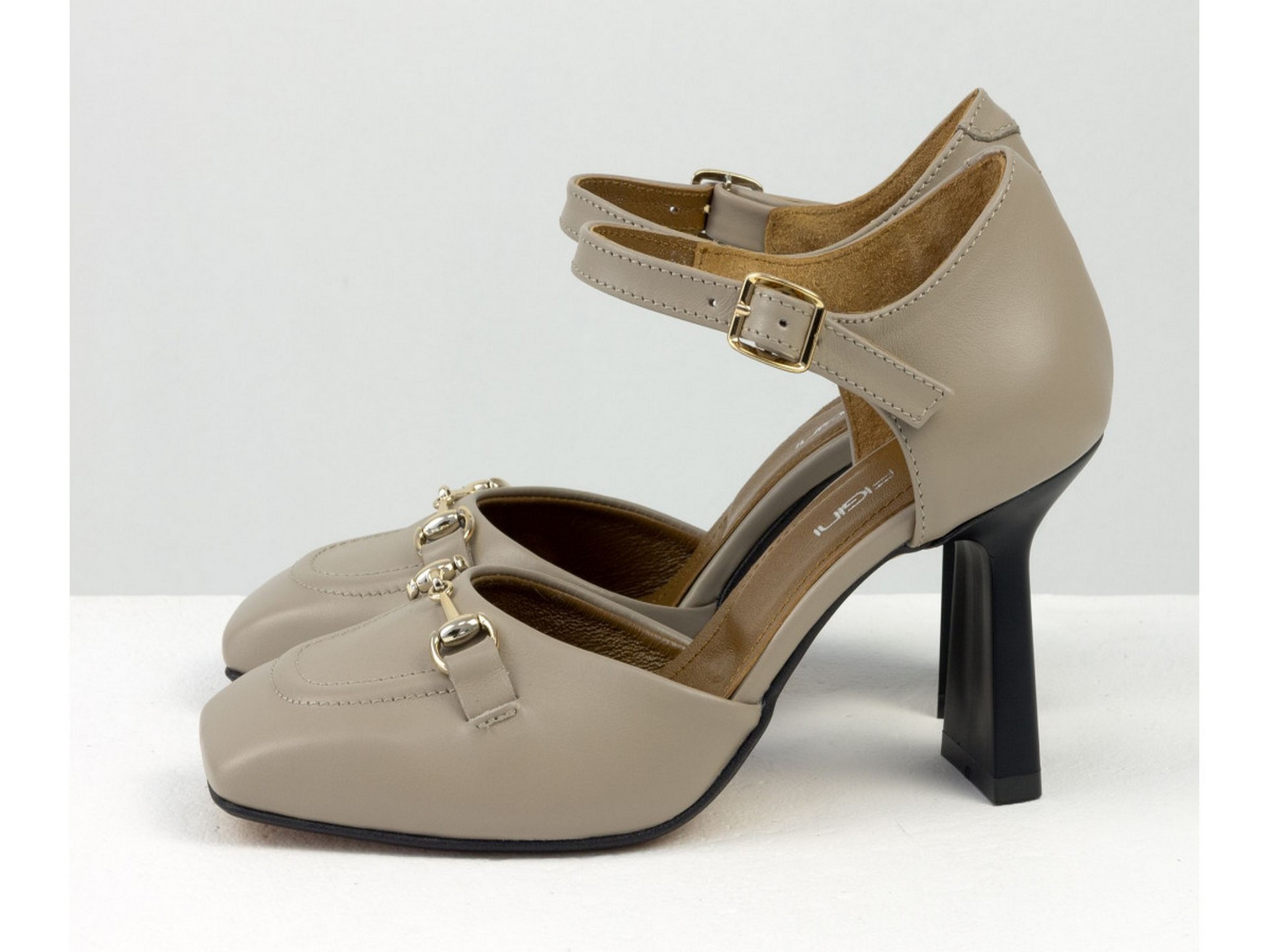 Дизайнерські бежеві босоніжки на каблучці з натуральної італійської шкіри із золотою фурнітурою Gino Figini