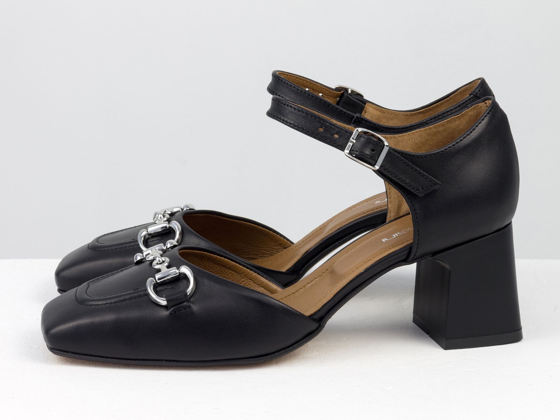 Натуральна шкіра/Середній 6 см/Чорний