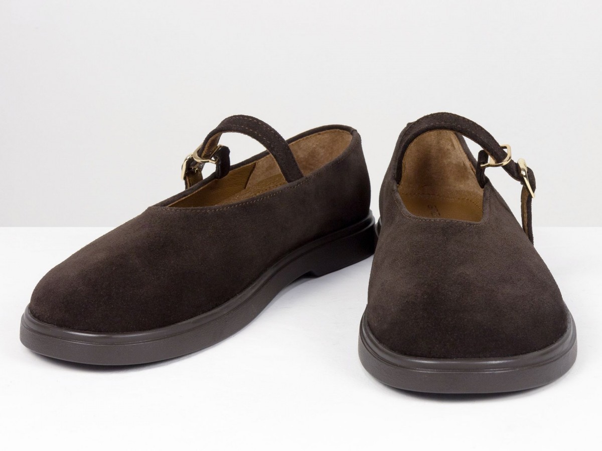 Туфли Mary Jane из натуральной замши коричневого цвета на анатомичной колодке Gino Figini