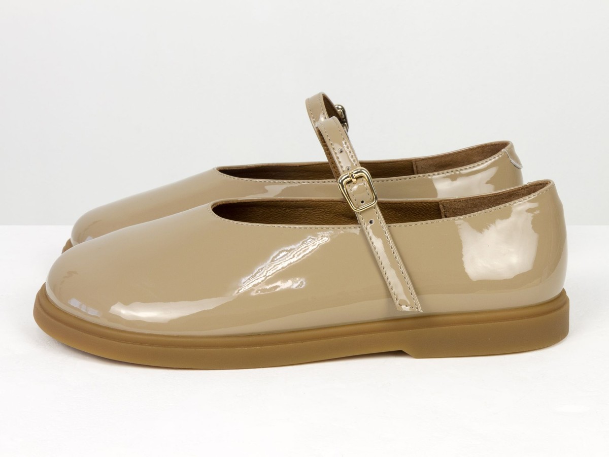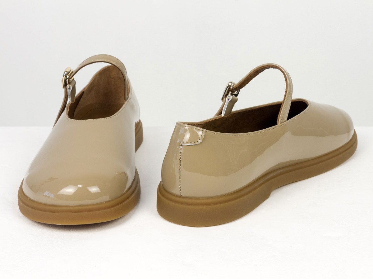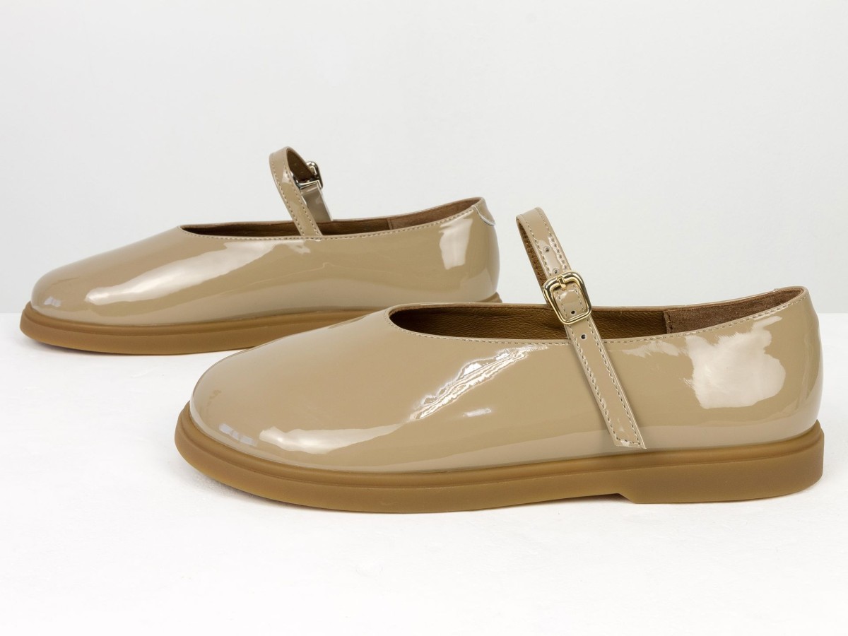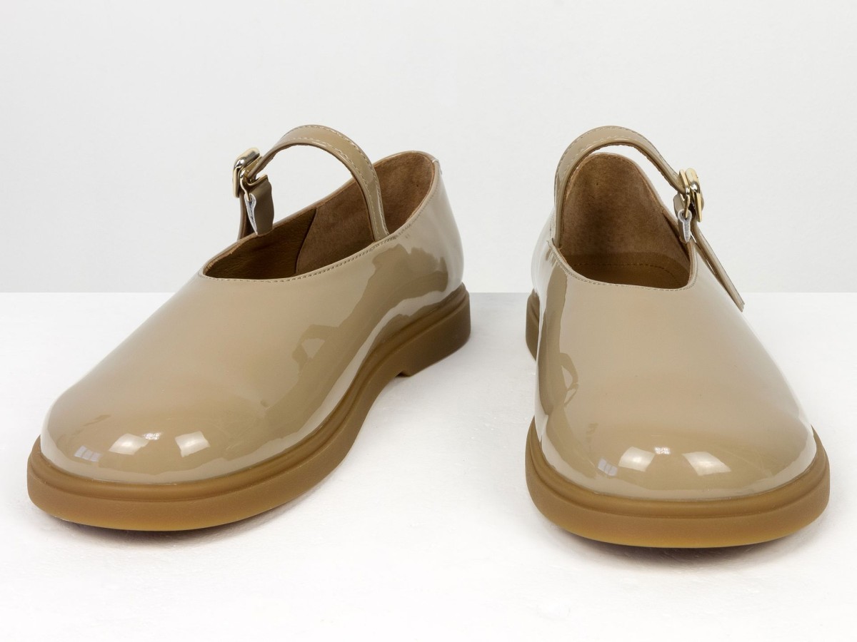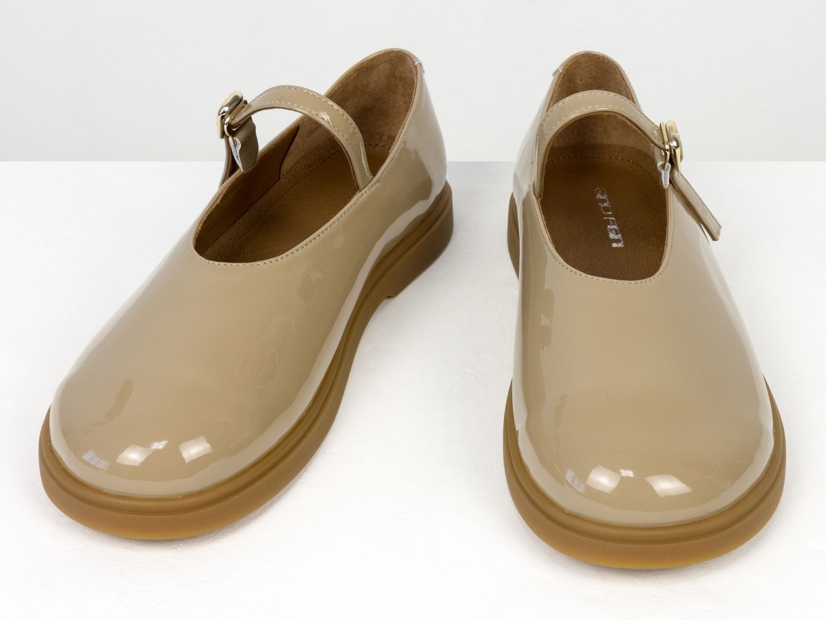 Стильні шкіряні балетки у ексклюзивному виконанні Mary Jane з ремінцем і золотою пряжкою. Натуральна лакована шкіра м’яко облягає стопу,виконані на анатомічній колодці, створюючи комфорт протягом усього дня. Легка та гнучка підошва забезпечує зручність під час ходьби, а універсальний коричневий відтінок легко поєднується як із джинсами, так і з сукнями. Ідеальний вибір для щоденного носіння та створення елегантних casual-образів.