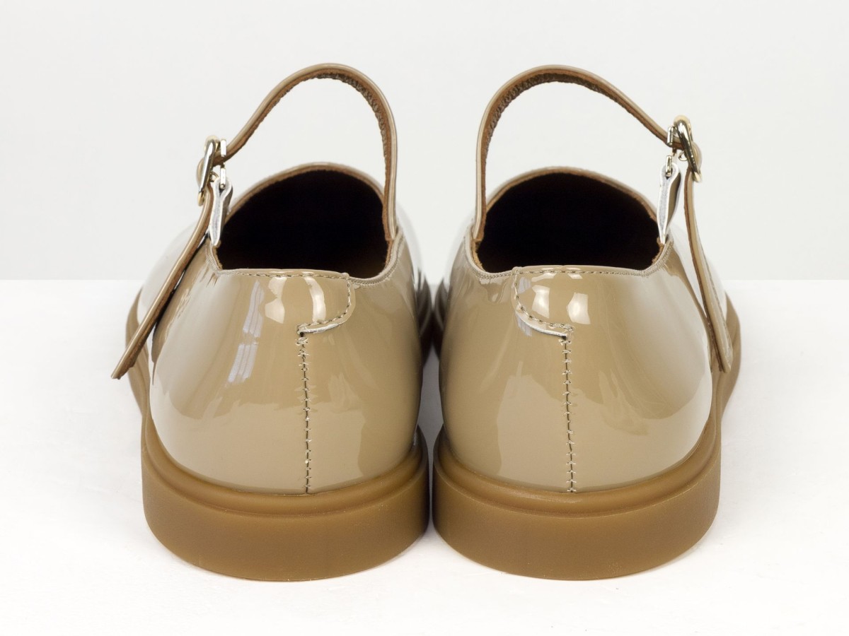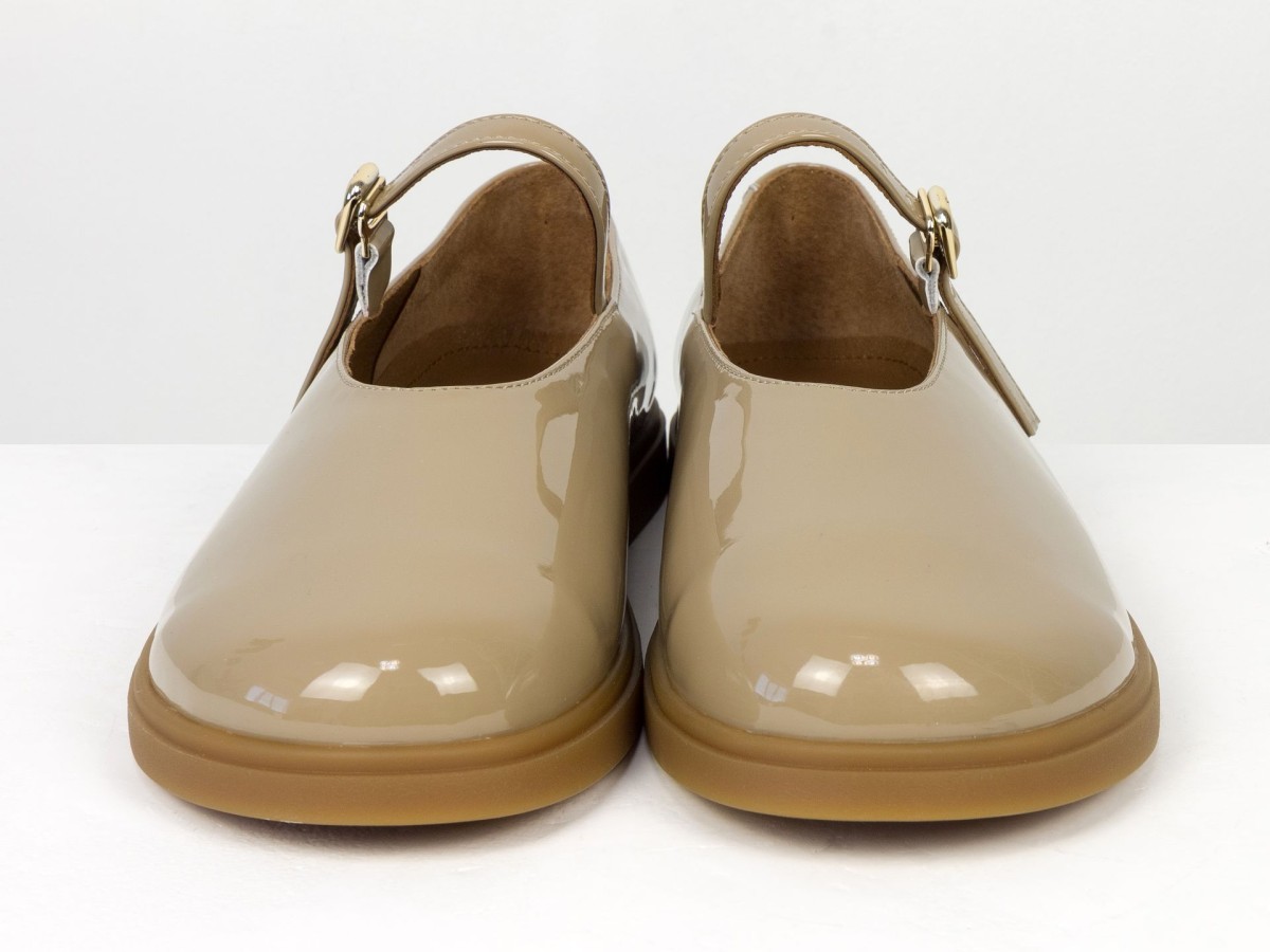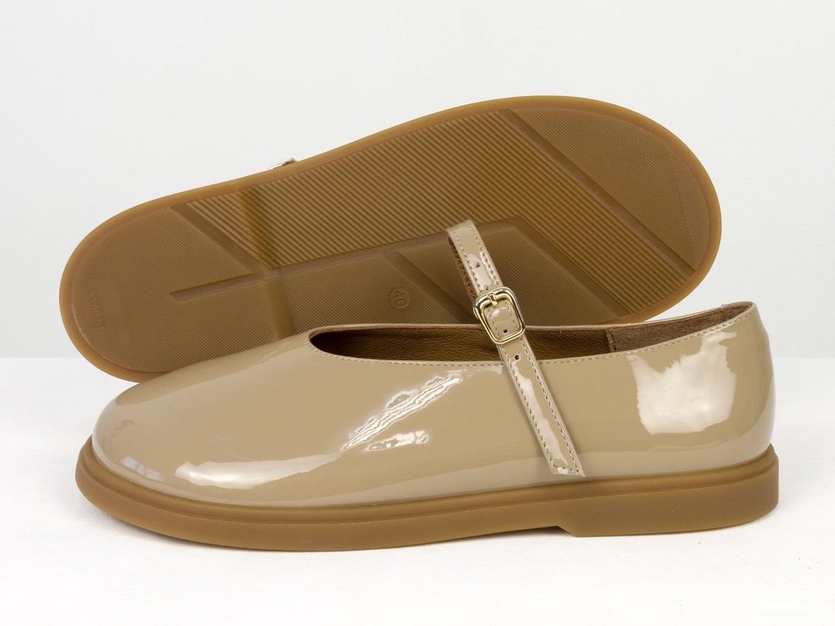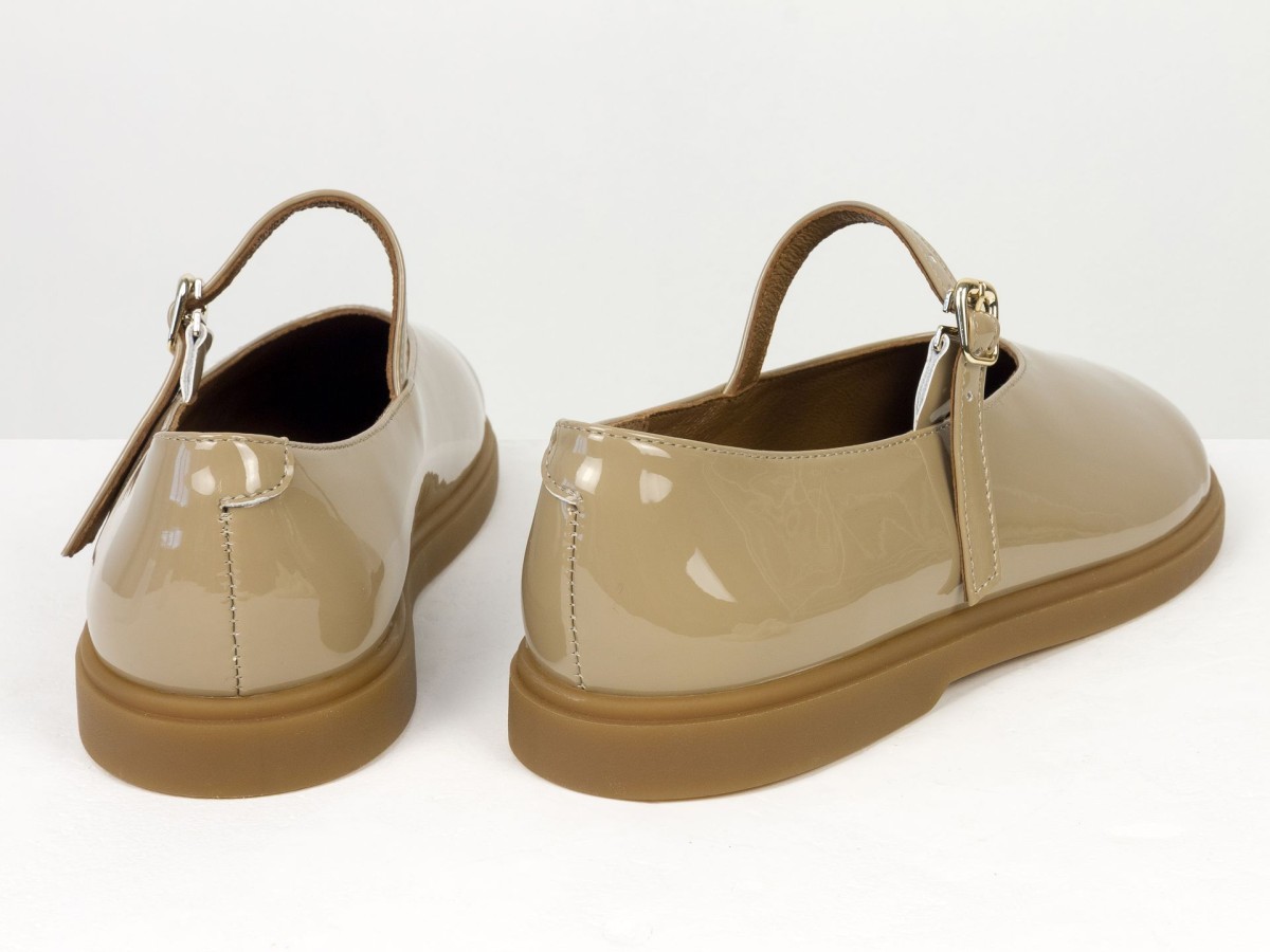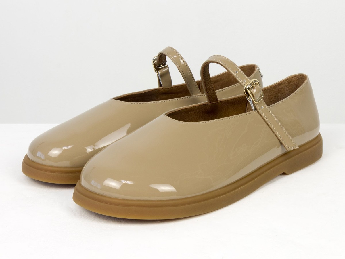 Стильні шкіряні балетки у ексклюзивному виконанні Mary Jane з ремінцем і золотою пряжкою. Натуральна лакована шкіра м’яко облягає стопу,виконані на анатомічній колодці, створюючи комфорт протягом усього дня. Легка та гнучка підошва забезпечує зручність під час ходьби, а універсальний коричневий відтінок легко поєднується як із джинсами, так і з сукнями. Ідеальний вибір для щоденного носіння та створення елегантних casual-образів.
