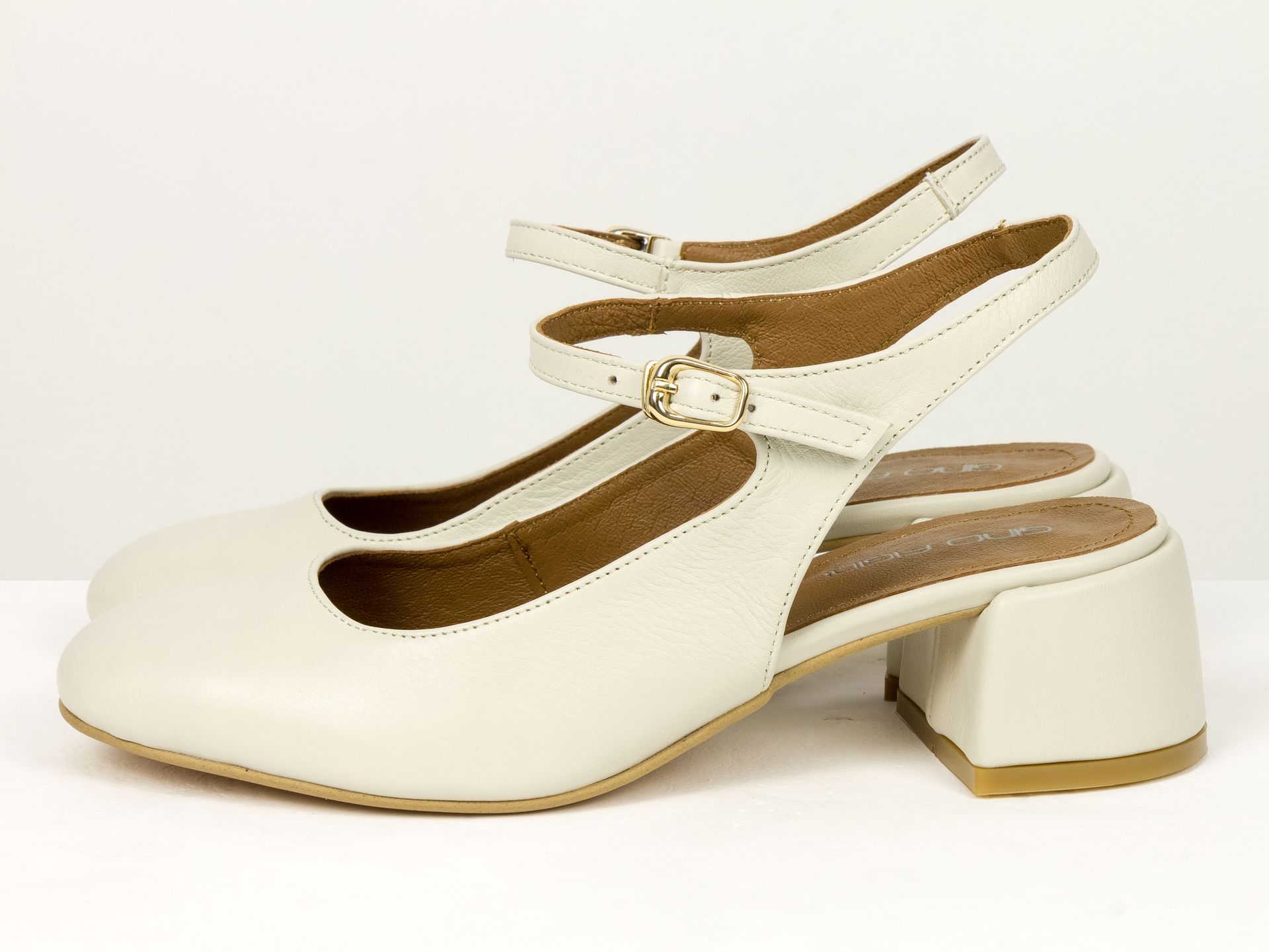 Туфлі з натуральної шкіри наплак кольору "айворі" з закритою п'ятою на квадратному каблуці Gino Figini