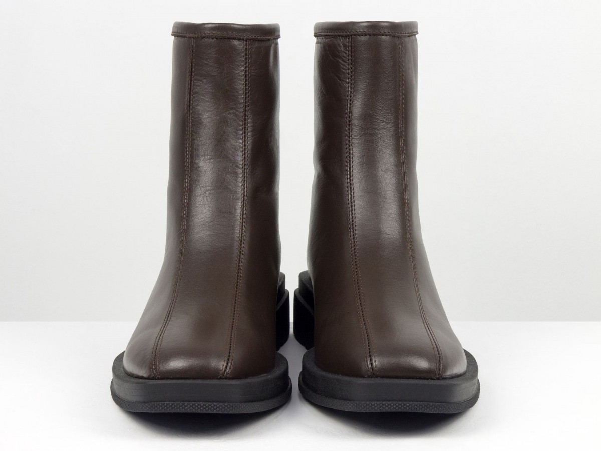 Подчеркнуть свою женственность, экстравагантный образ способна правильная пара обуви. Классическая модель коричневого цвета выполнена из натуральной итальянской кожи. Модель имеет трендовый квадратный мыс.