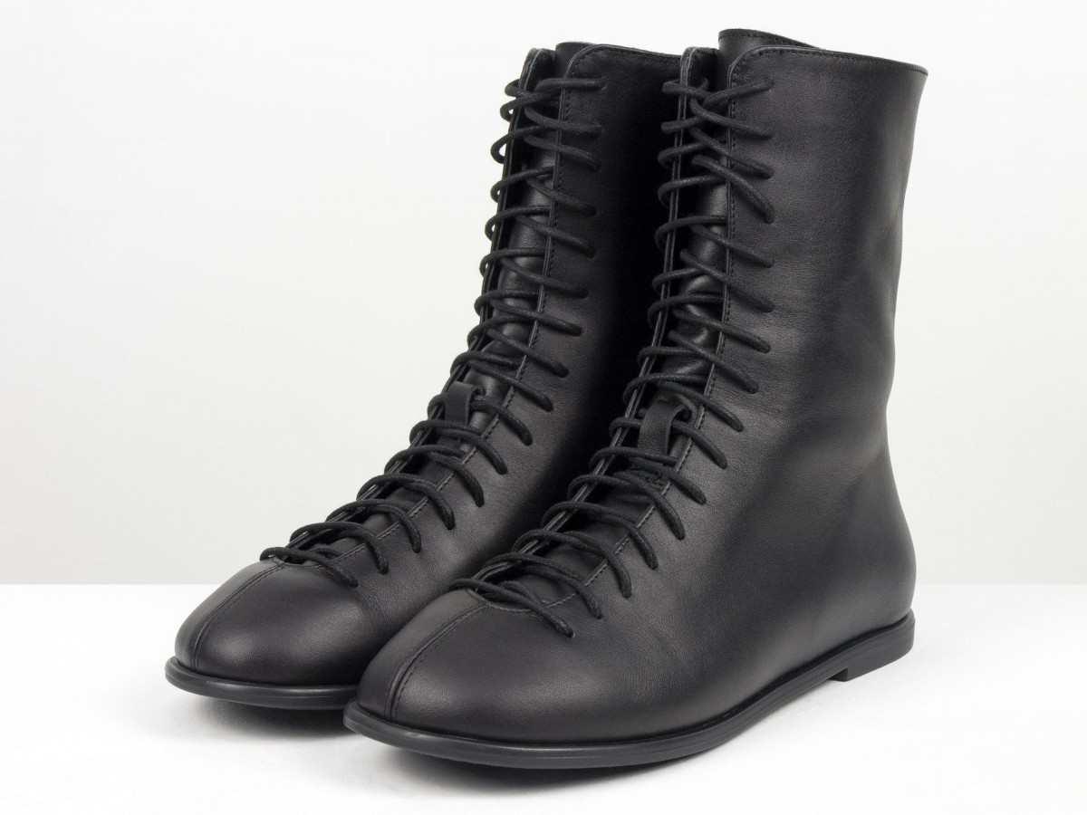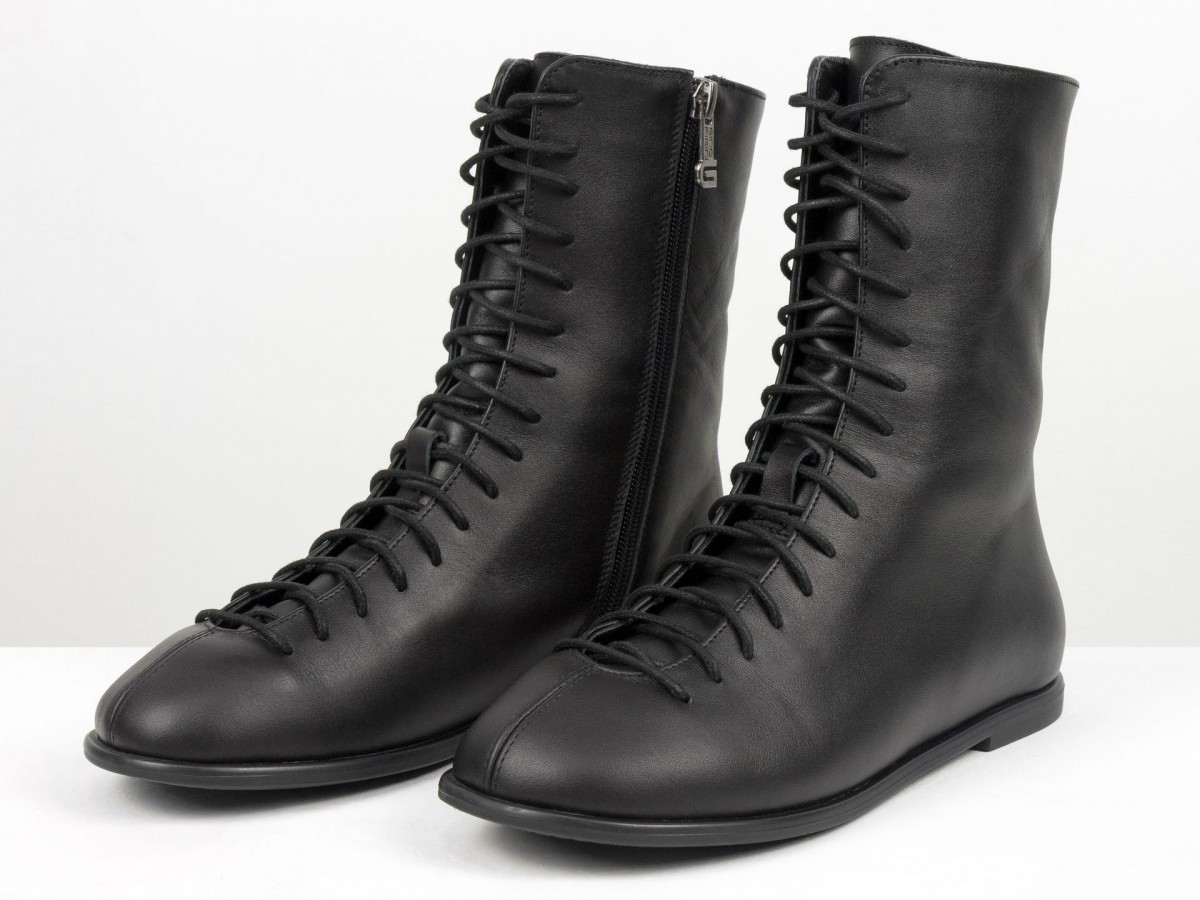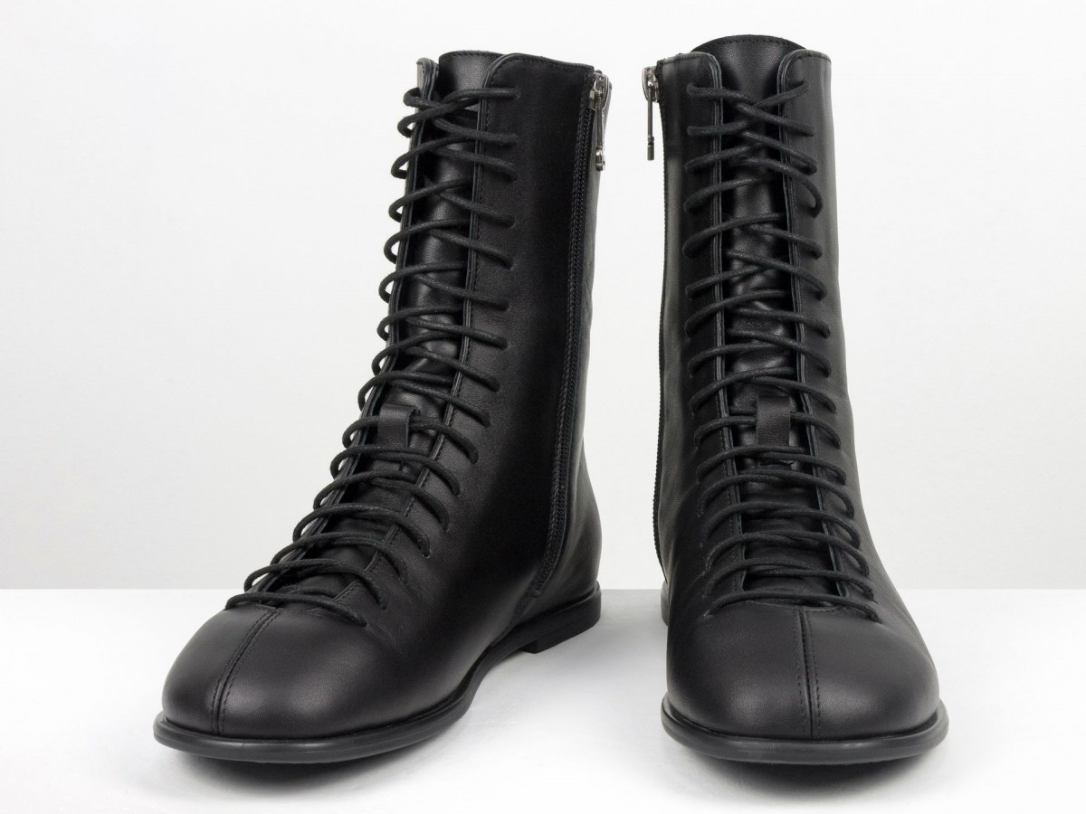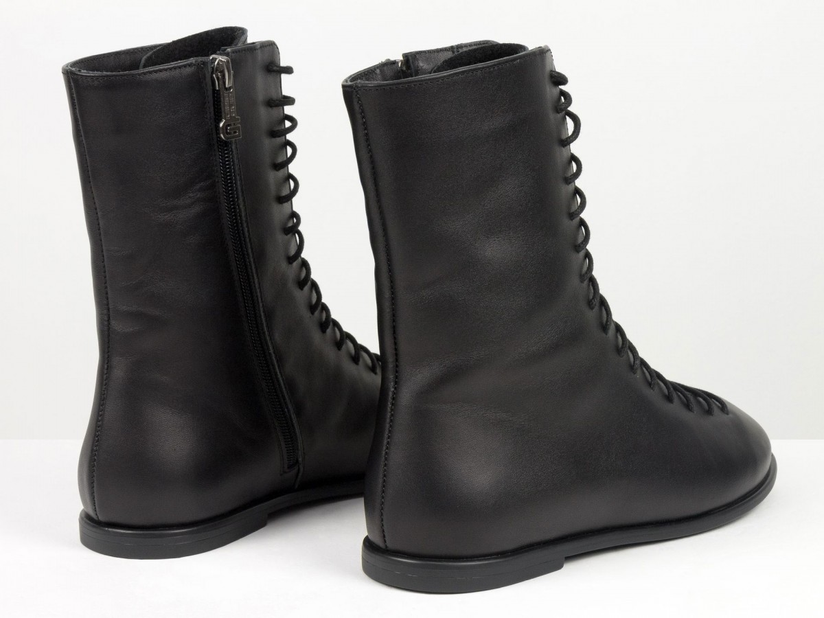 Женские кожаные ботинки со шнуровкой - изящная модель с тонкой подошвой, придающей элегантность силуэту. Выполненные из натуральной мягкой кожи, они комфортно сидят по ноге и прекрасно держат форму. Удобная молния с внутренней стороны обеспечивает легкую обувку, а шнуровка позволяет идеально отрегулировать объем.