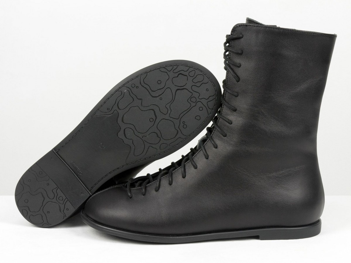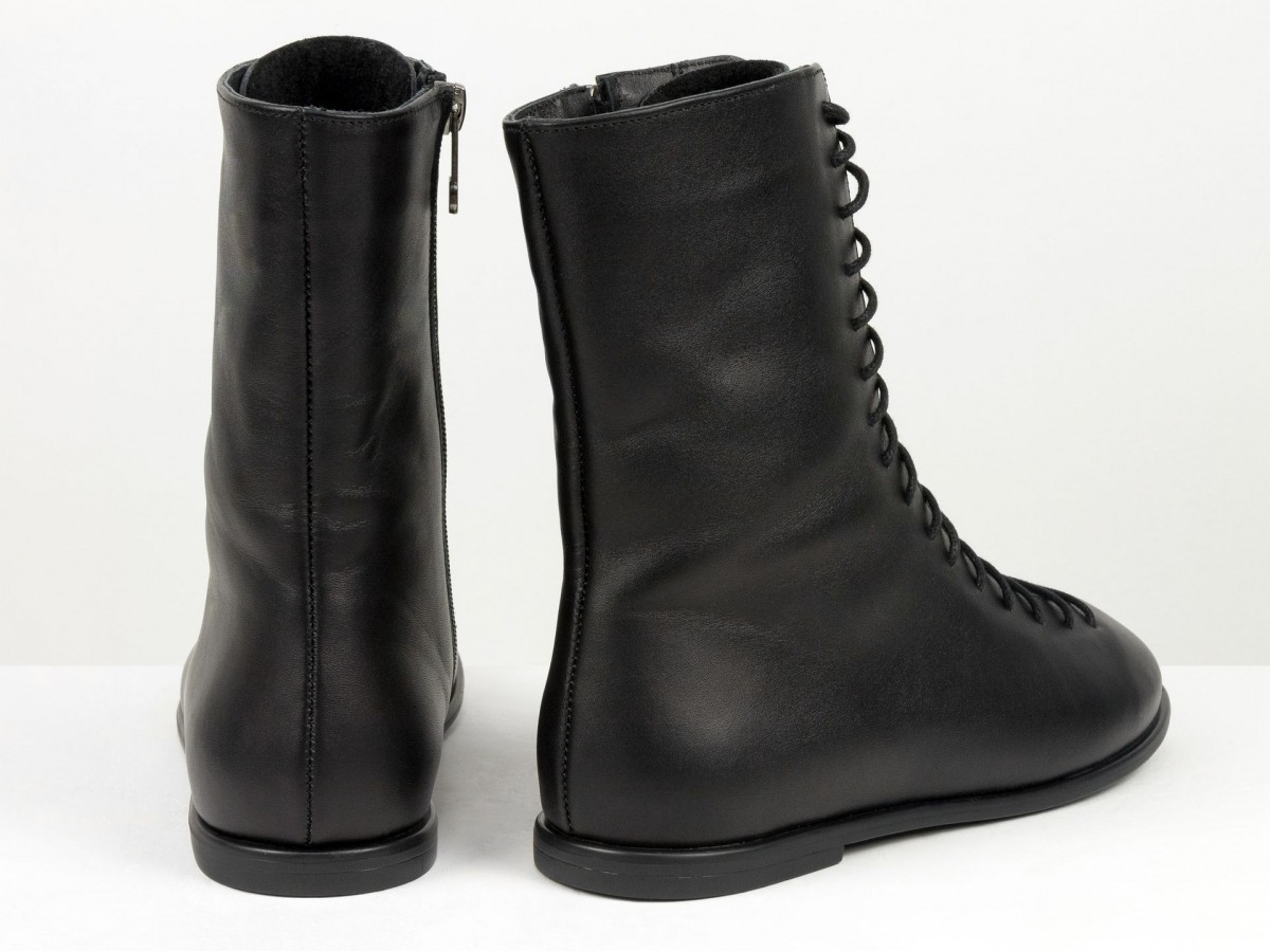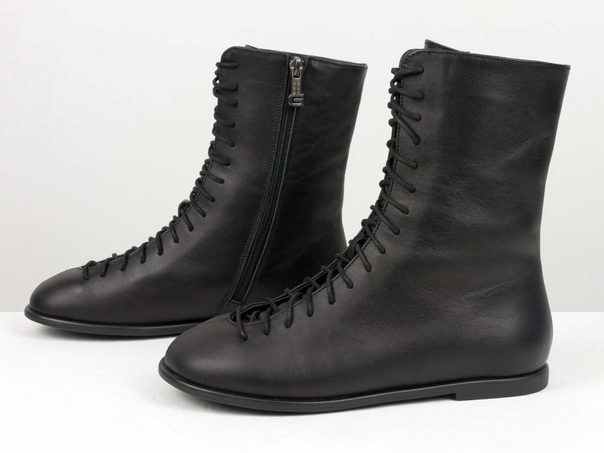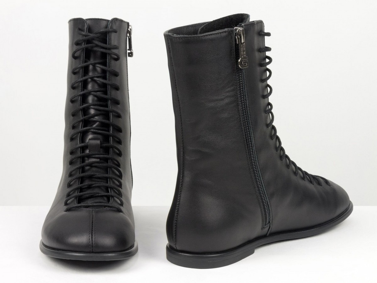 Женские кожаные ботинки со шнуровкой - изящная модель с тонкой подошвой, придающей элегантность силуэту. Выполненные из натуральной мягкой кожи, они комфортно сидят по ноге и прекрасно держат форму. Удобная молния с внутренней стороны обеспечивает легкую обувку, а шнуровка позволяет идеально отрегулировать объем.
