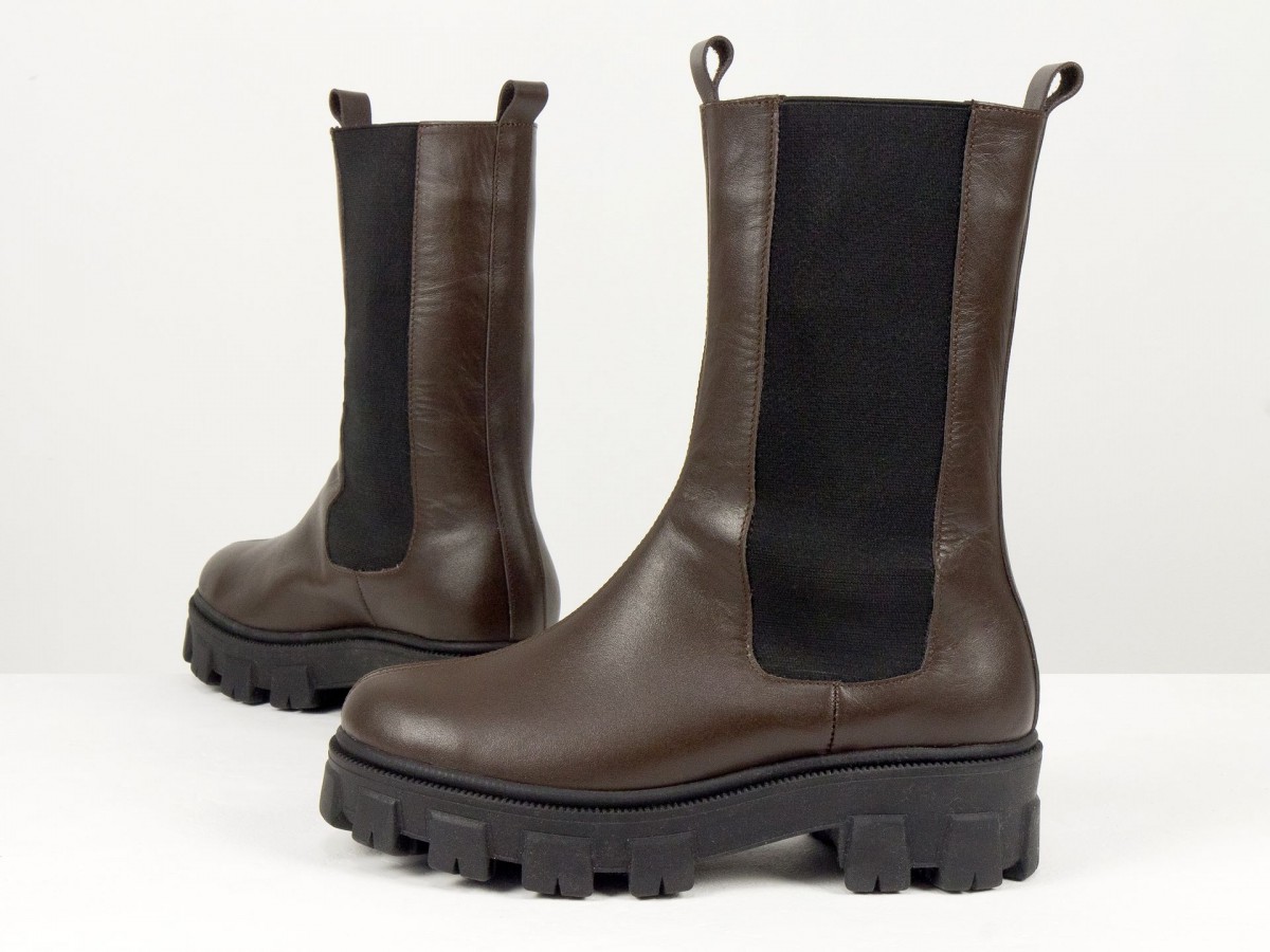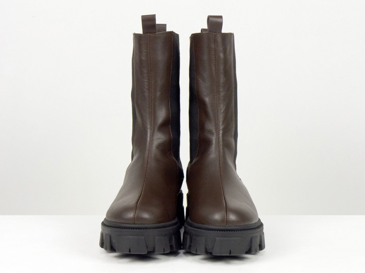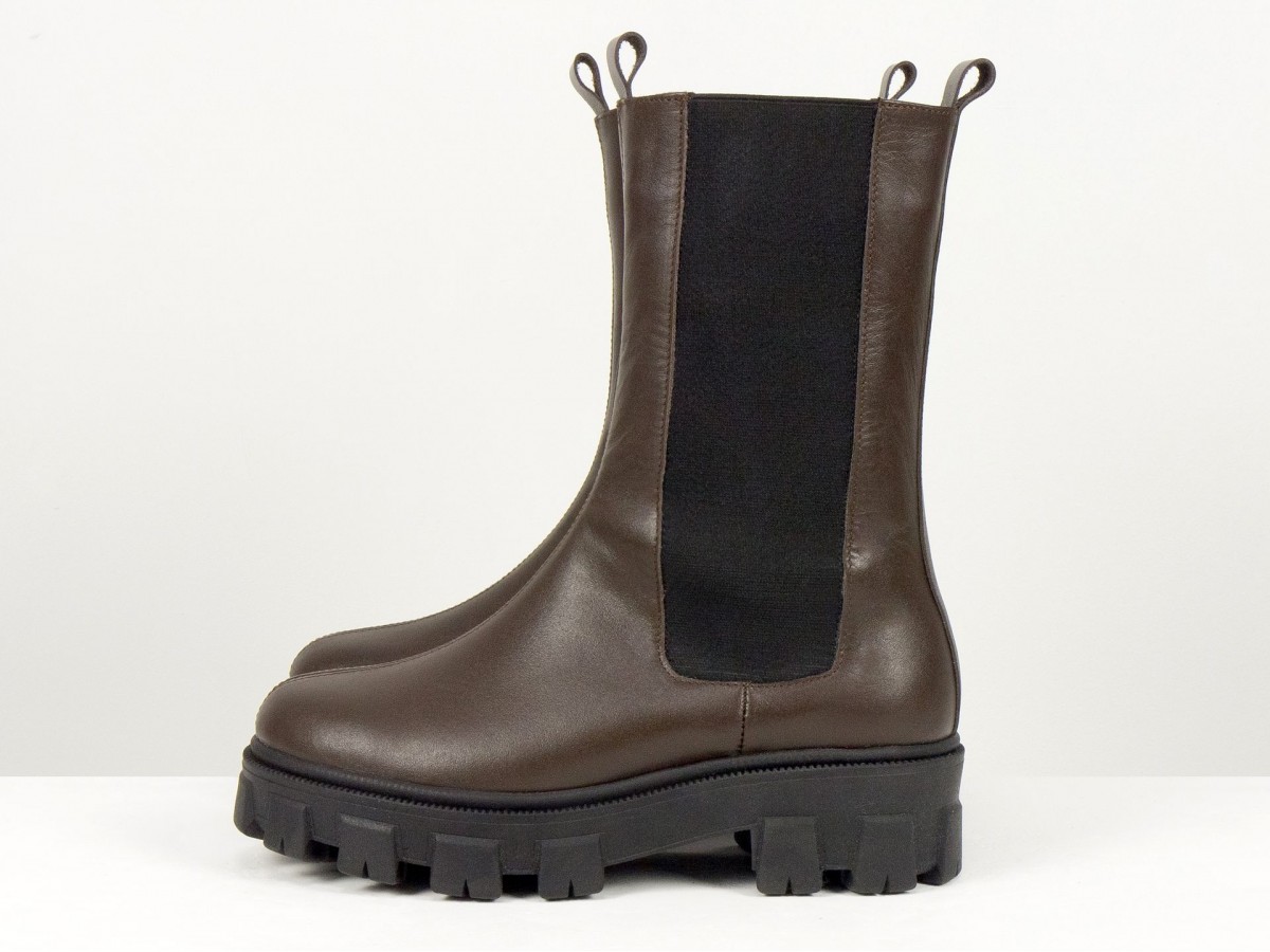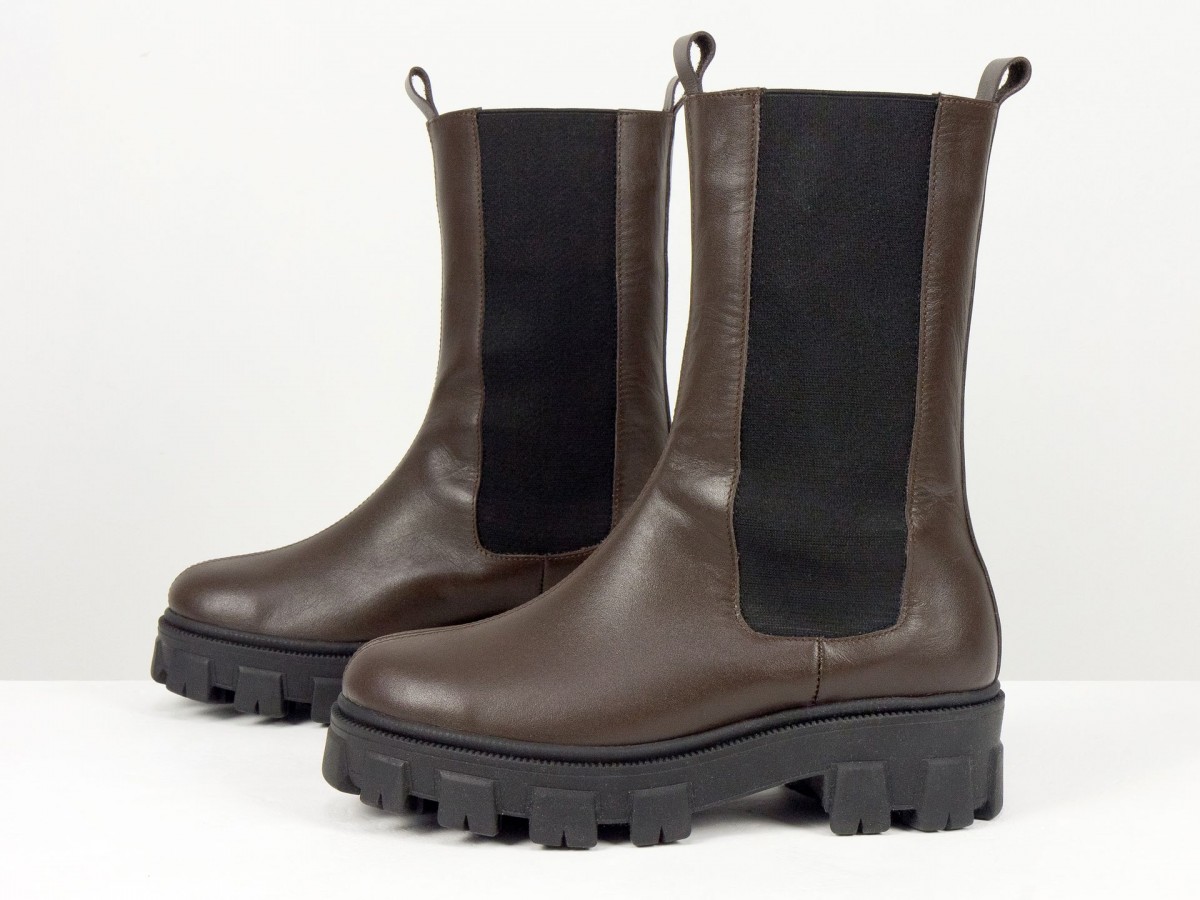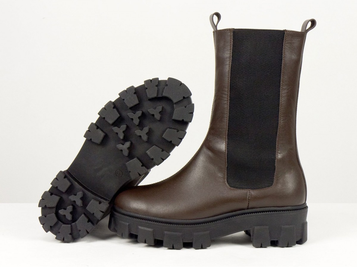 Женские ботинки челси из натуральной кожи - это сочетание актуального дизайна, комфорта и практичности. Модель выполнена в глубоком коричневом цвете и дополнена эластичными вставками по бокам, обеспечивающими удобную обувку и идеальную посадку.
