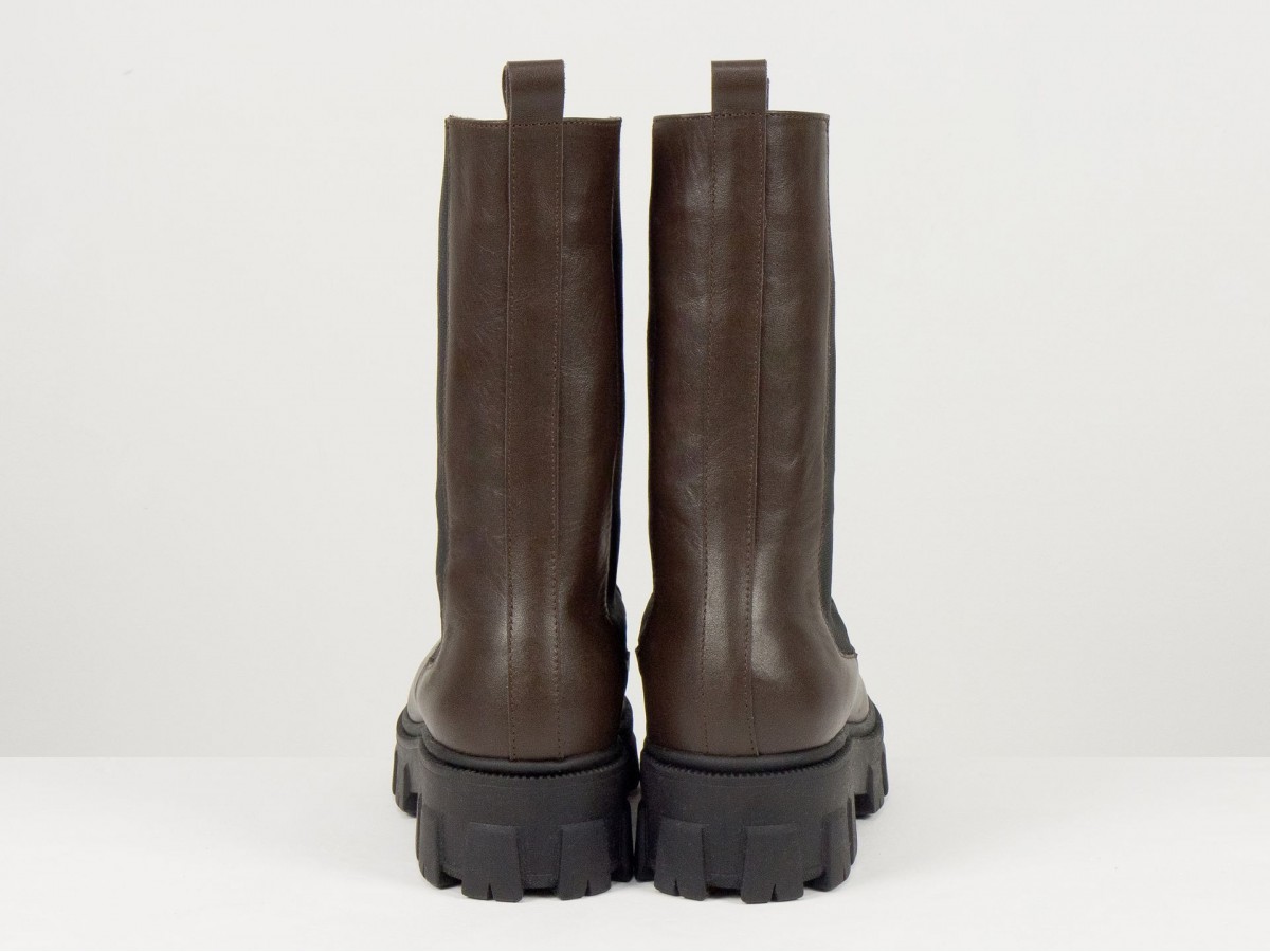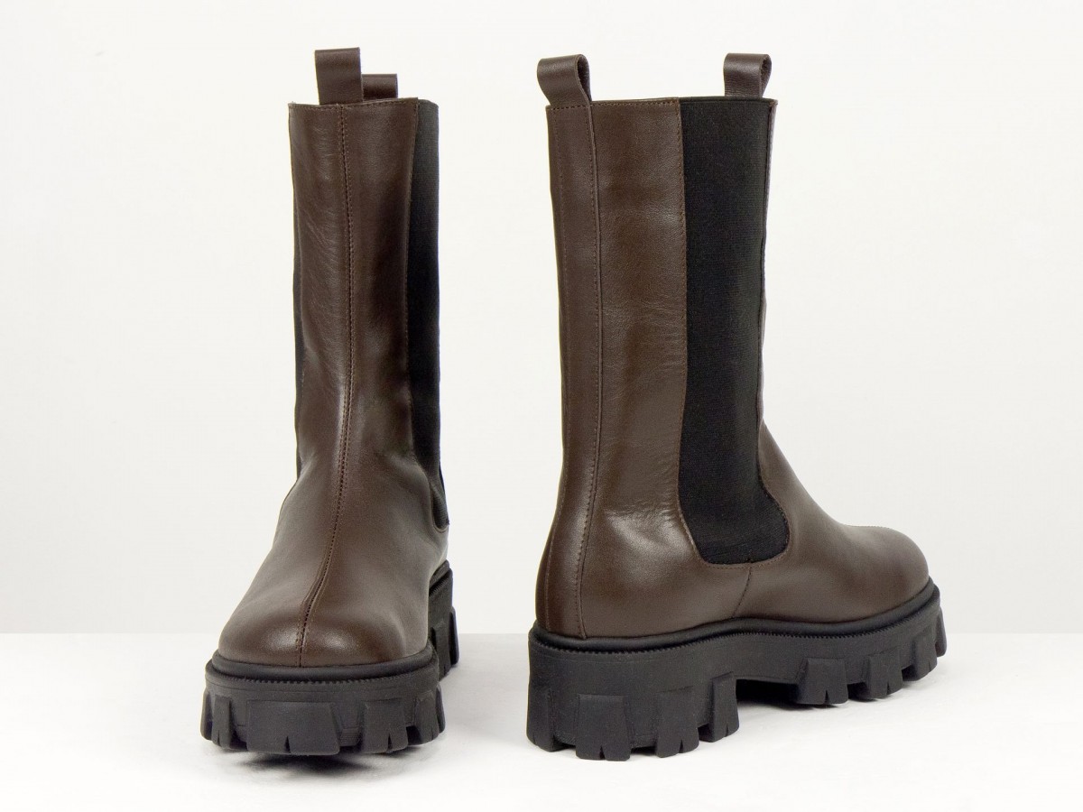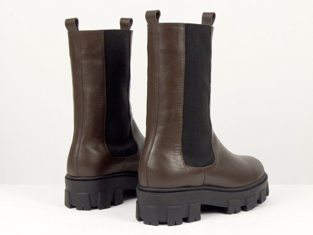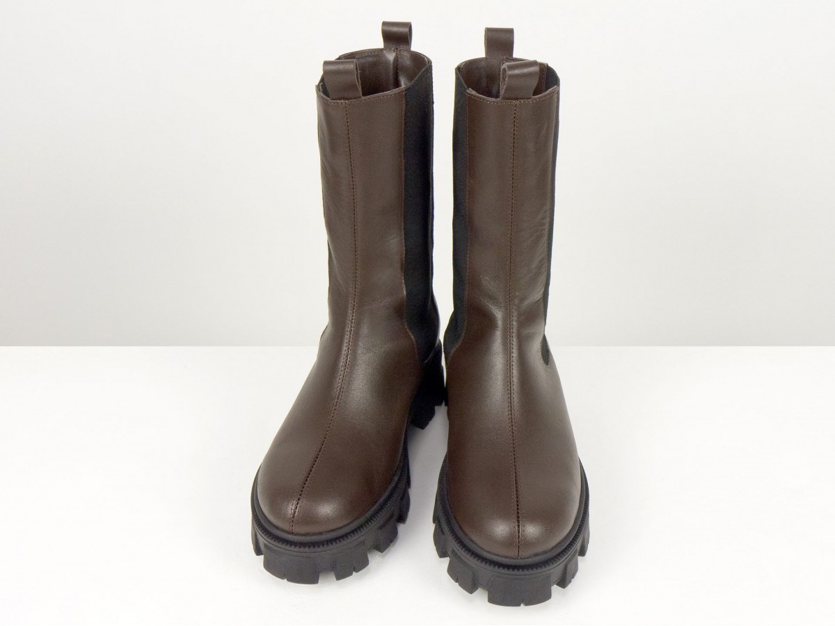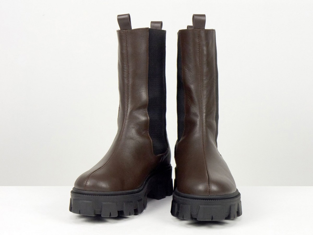 Женские ботинки челси из натуральной кожи - это сочетание актуального дизайна, комфорта и практичности. Модель выполнена в глубоком коричневом цвете и дополнена эластичными вставками по бокам, обеспечивающими удобную обувку и идеальную посадку.
