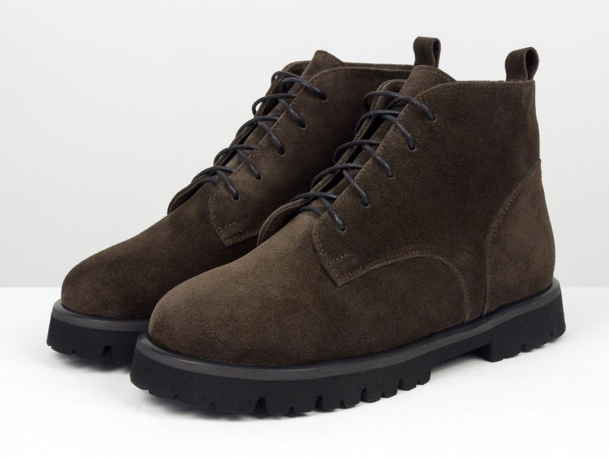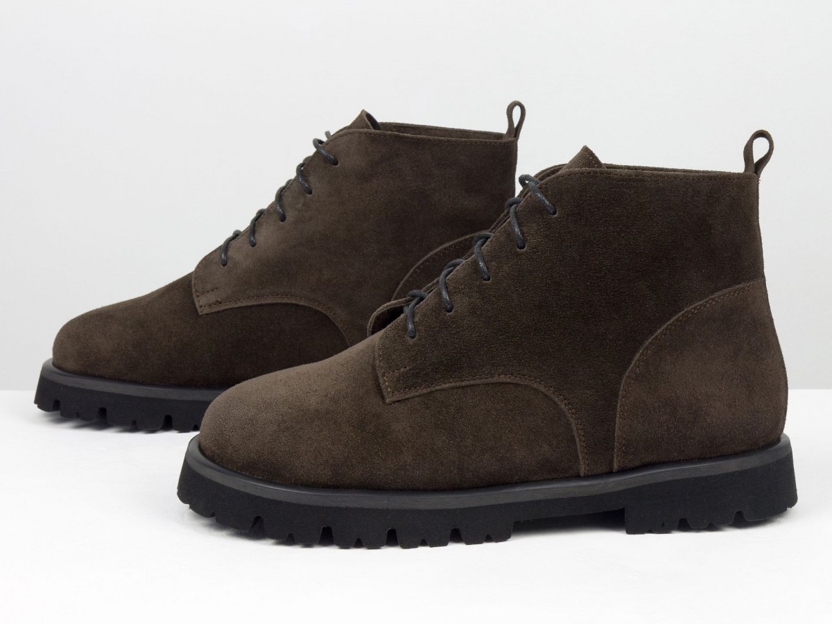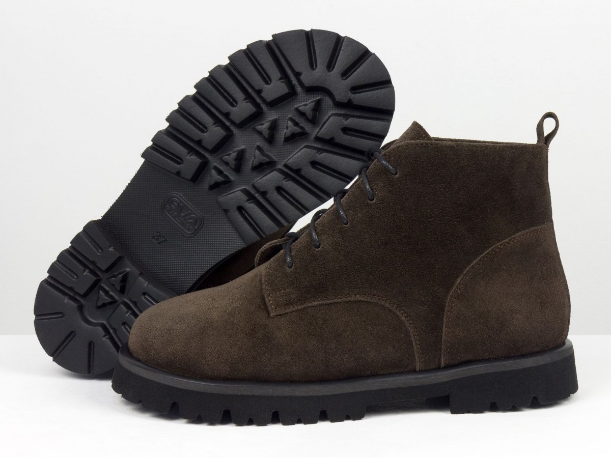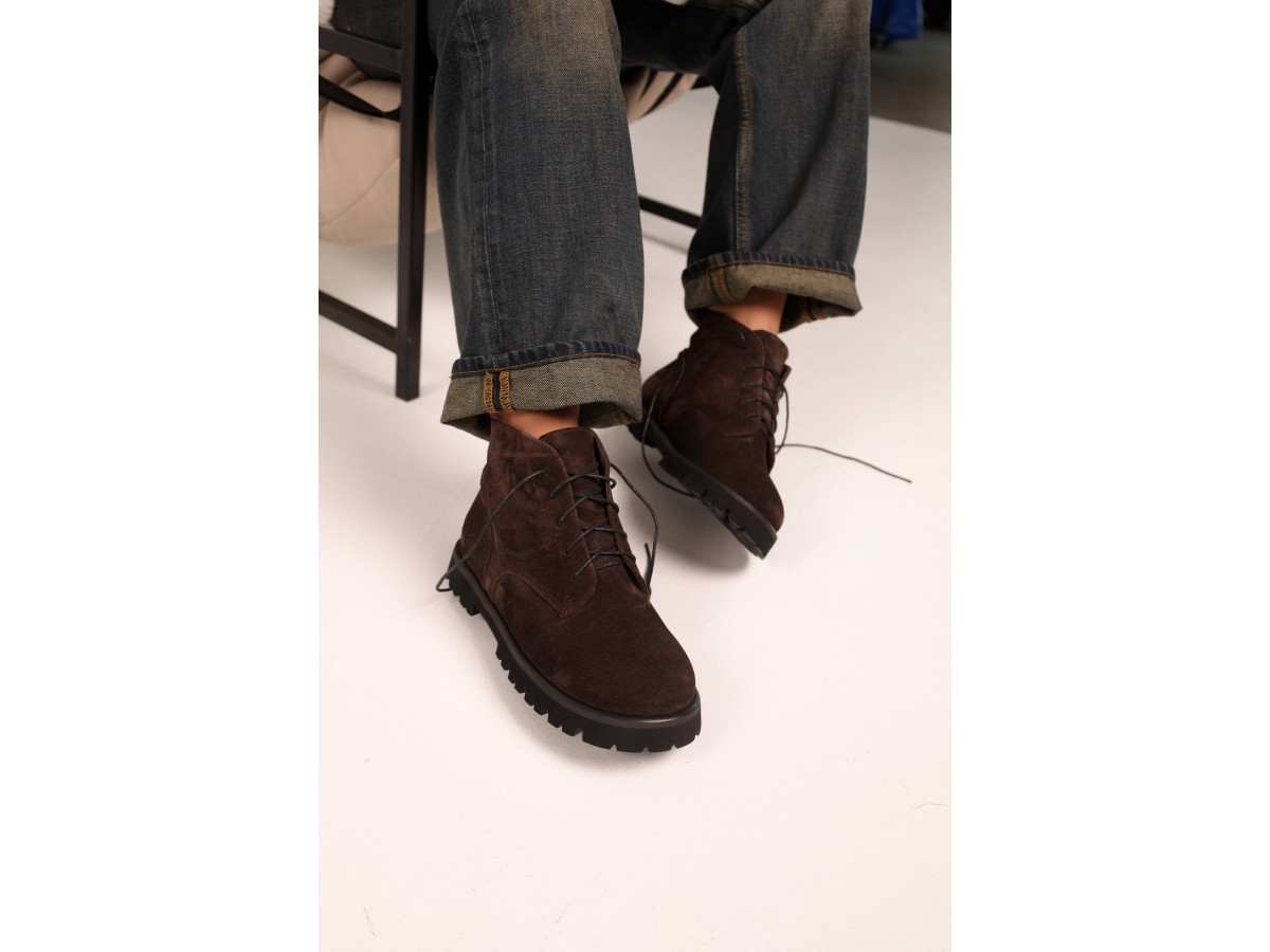 Выполненные из мягкой натуральной замши глубокого темно-коричневого оттенка, они легко сочетаются с базовыми вещами гардероба.