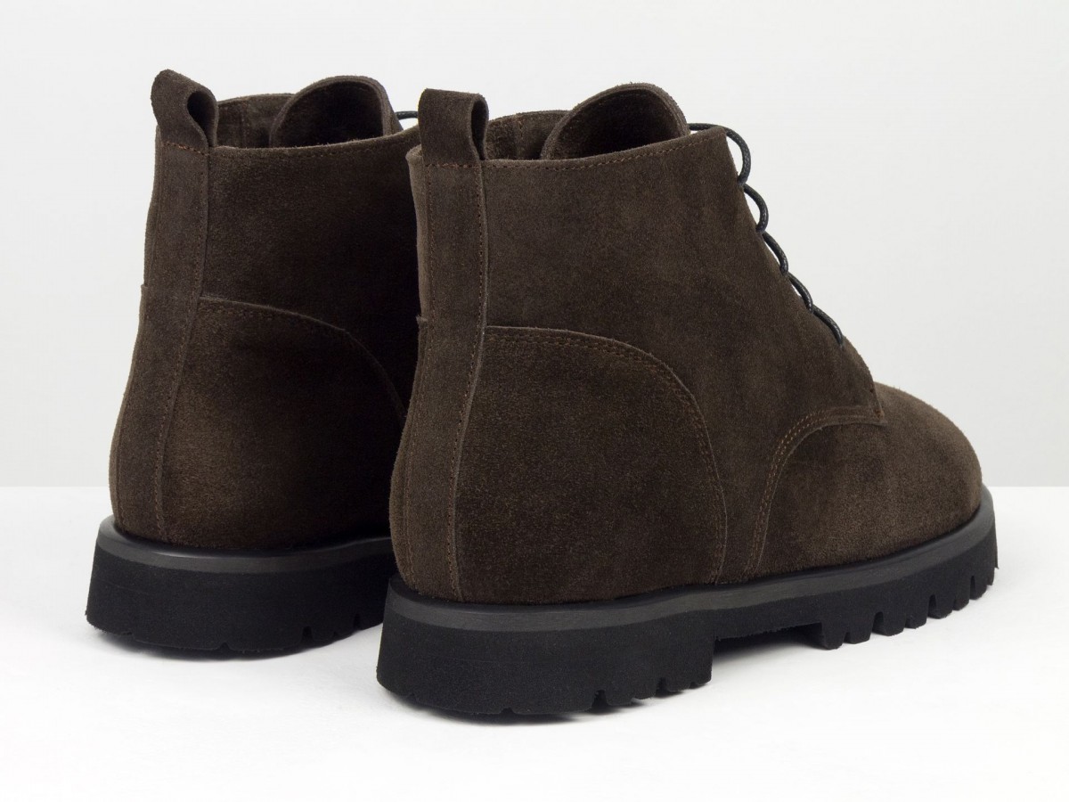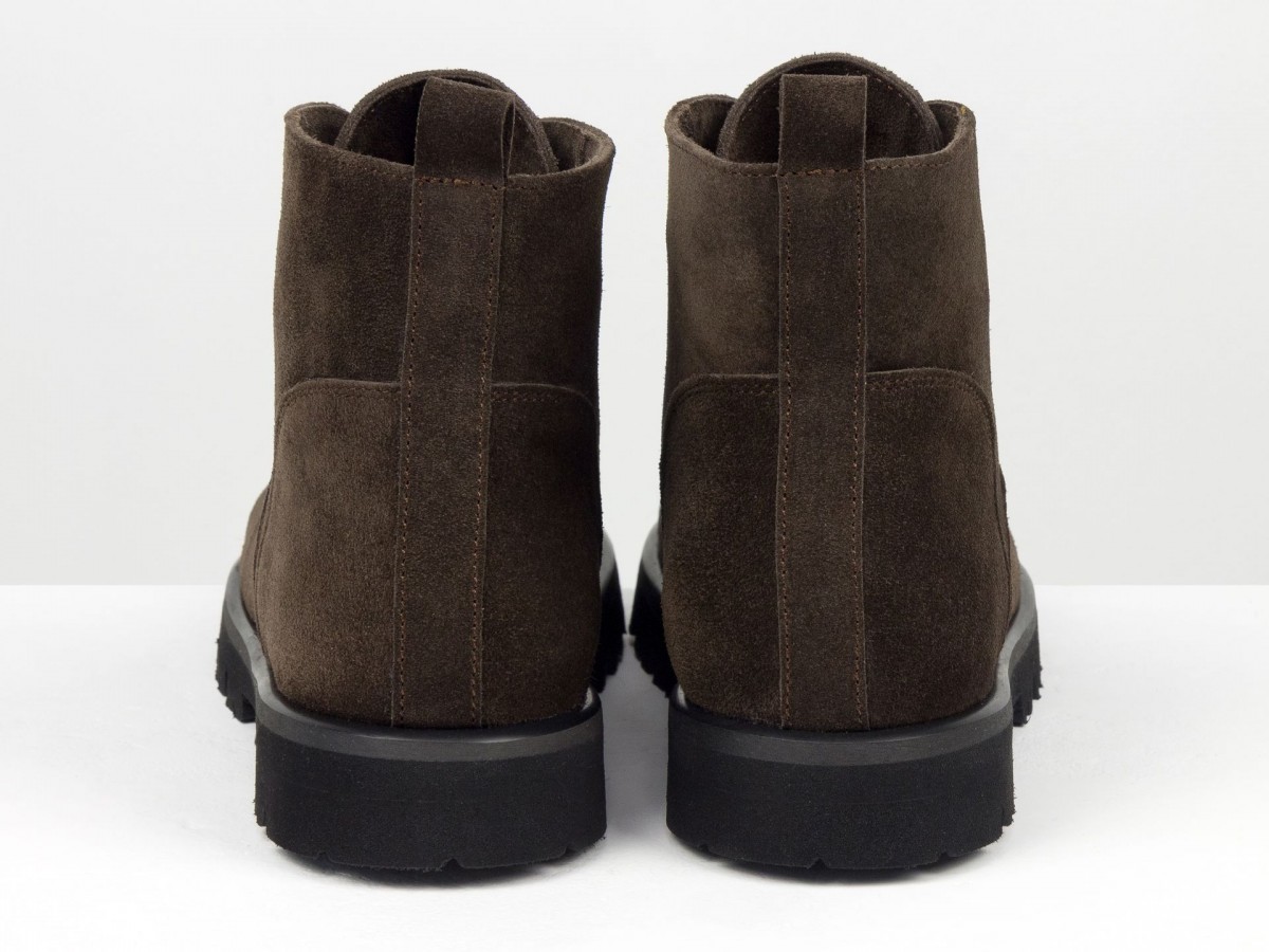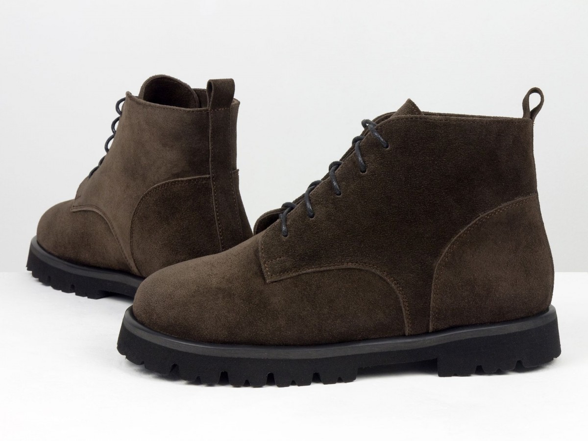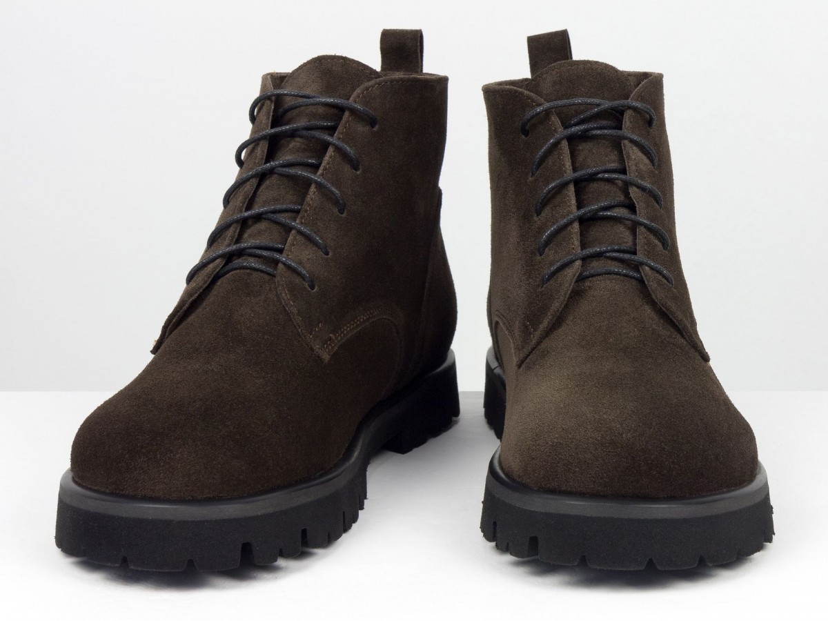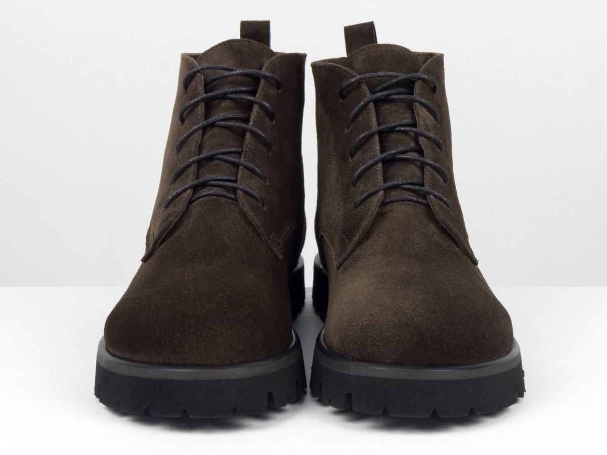Выполненные из мягкой натуральной замши глубокого темно-коричневого оттенка, они легко сочетаются с базовыми вещами гардероба.