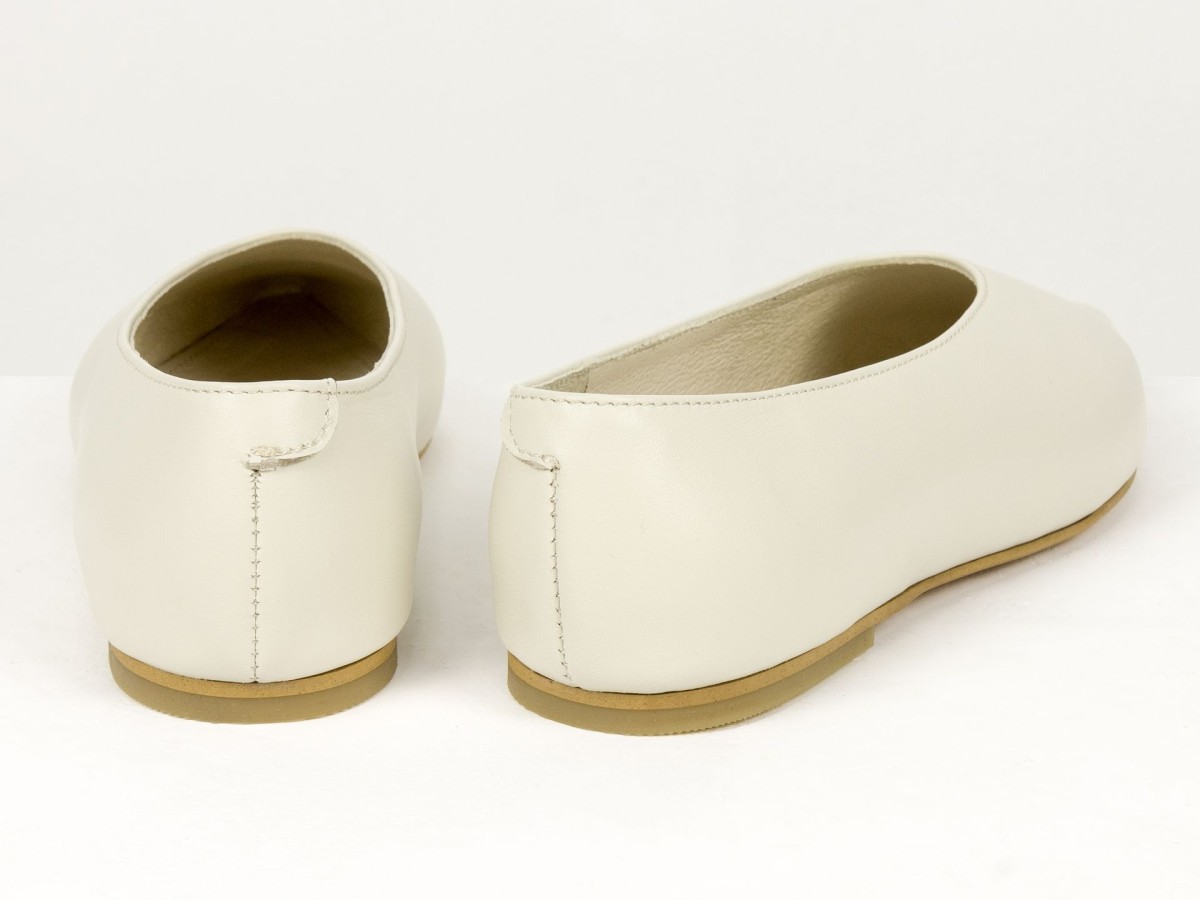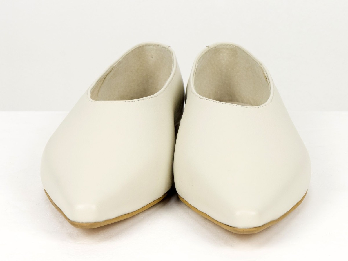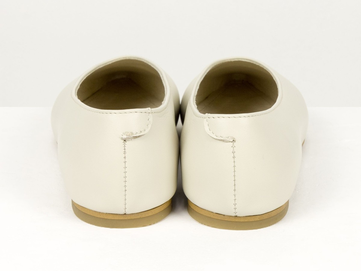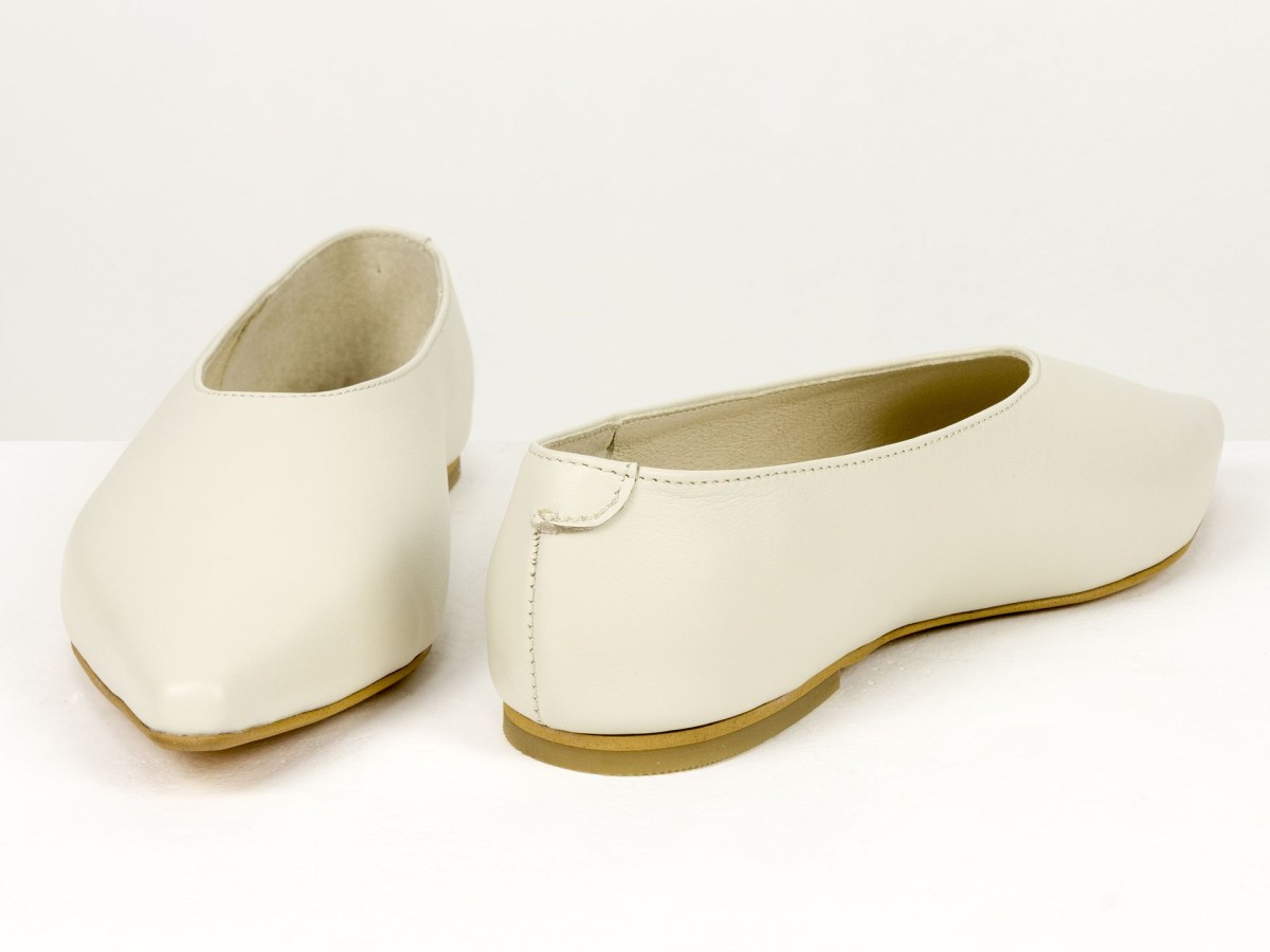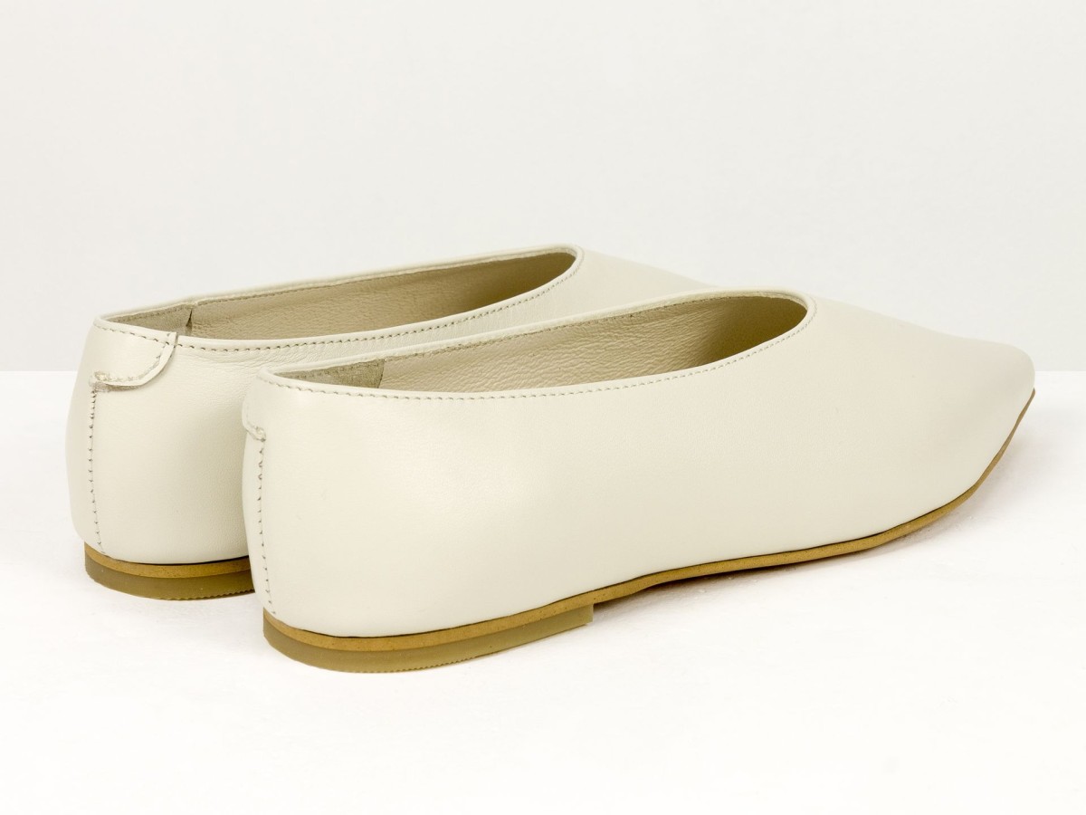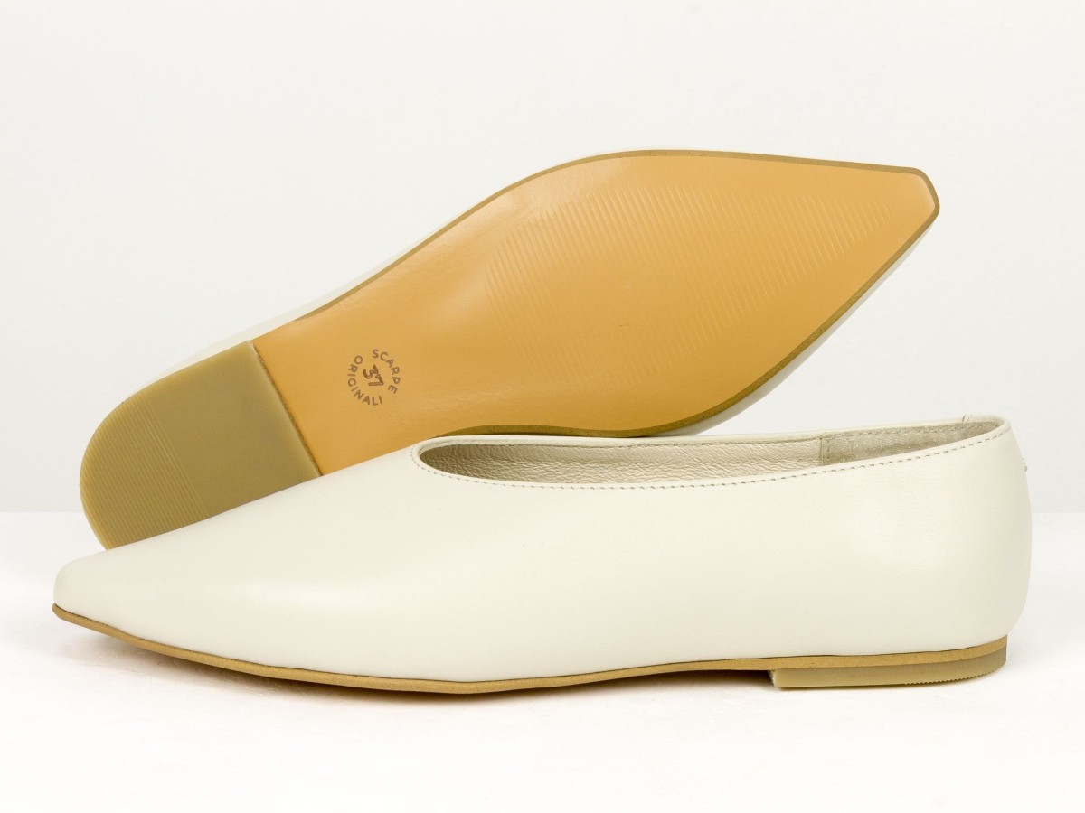 Стильні балетки у сучасному форматі лоферів з м’якої натуральної шкіри молочного кольору . Витончений загострений носок візуально подовжує ніжку, а закритий верх створює елегантний силует. Усередині натуральна шкіра, що забезпечує комфорт протягом усього дня. Легка підошва та універсальний дизайн роблять цю модель ідеальним вибором як для ділових образів, так і для повсякденного носіння.