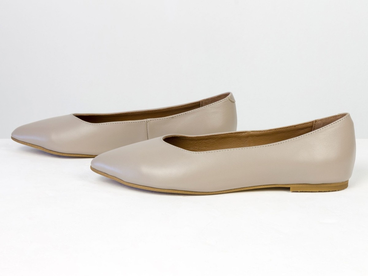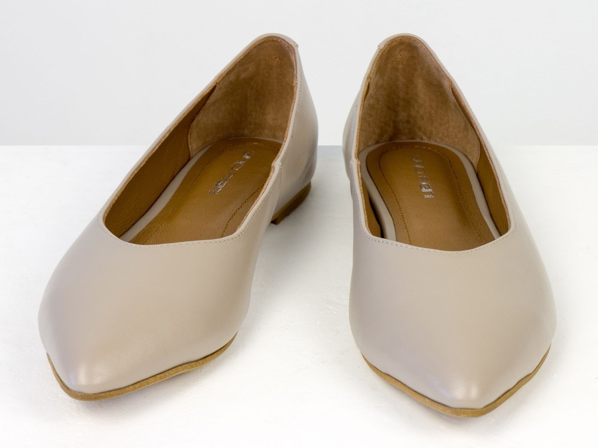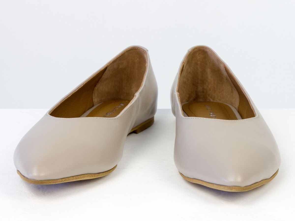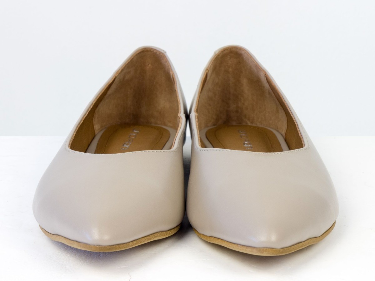 Жіночі шкіряні балетки - це ідеальна база для гардеробу, яка поєднує мінімалізм, комфорт та універсальність. Модель виконана з натуральної гладкої шкіри у ніжному бежевому відтінку, що додає образу легкості та елегантності.