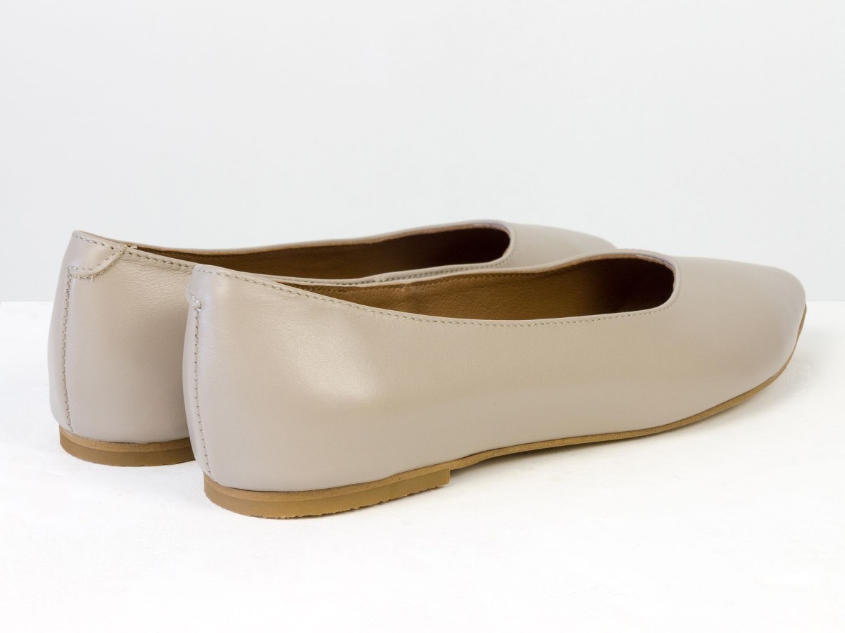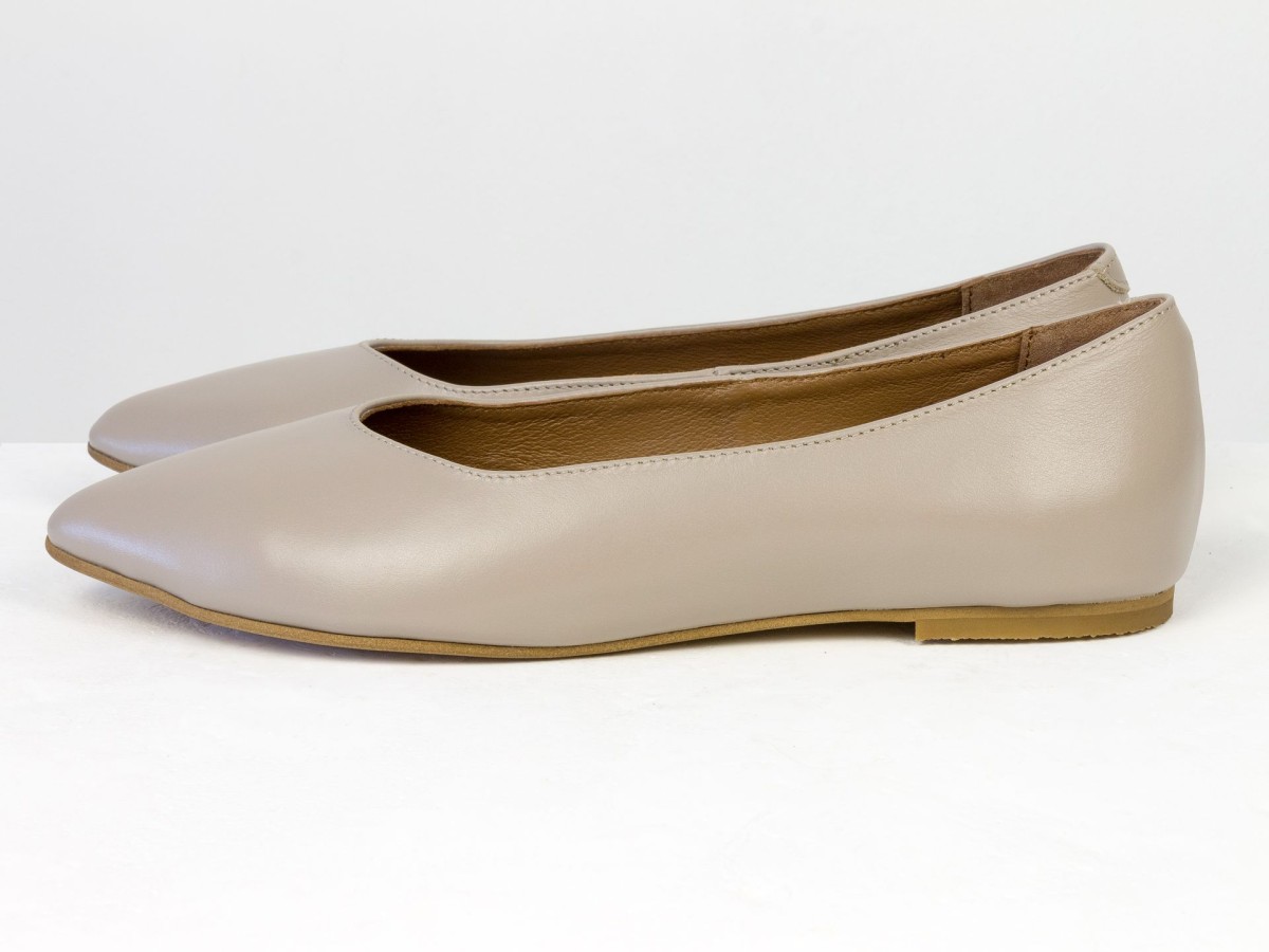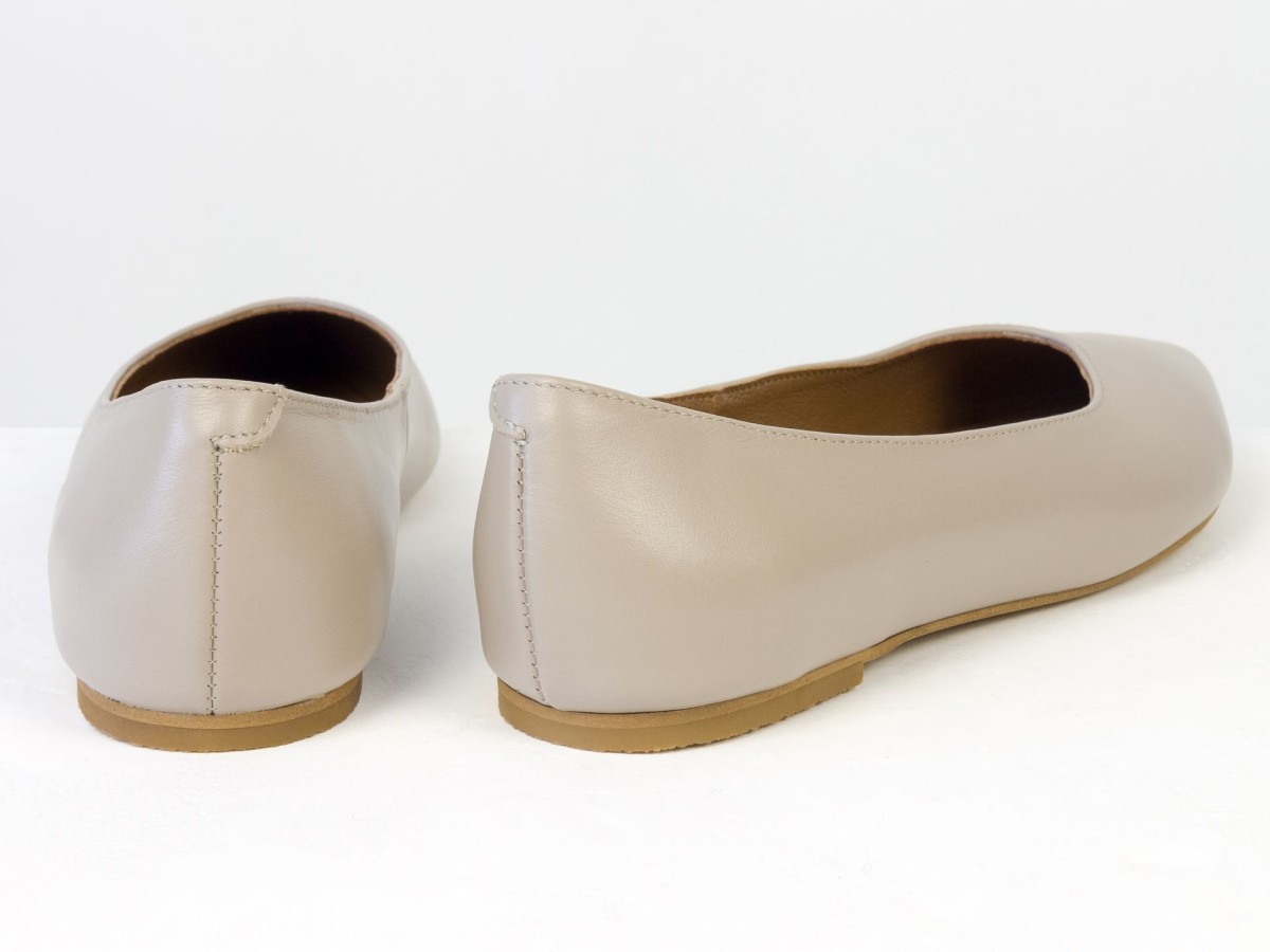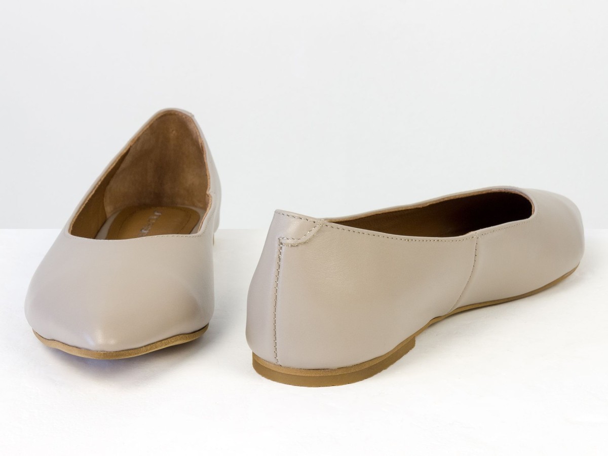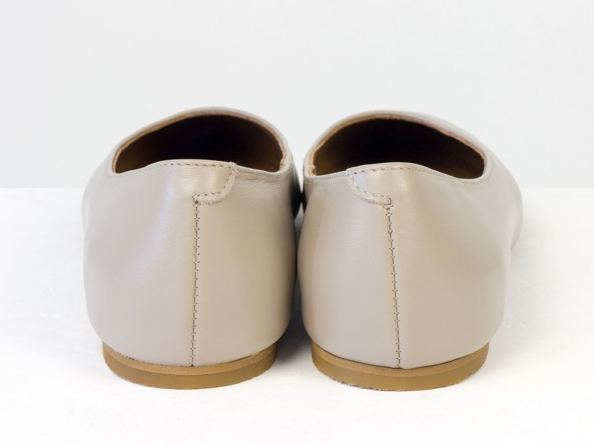 Жіночі шкіряні балетки - це ідеальна база для гардеробу, яка поєднує мінімалізм, комфорт та універсальність. Модель виконана з натуральної гладкої шкіри у ніжному бежевому відтінку, що додає образу легкості та елегантності.