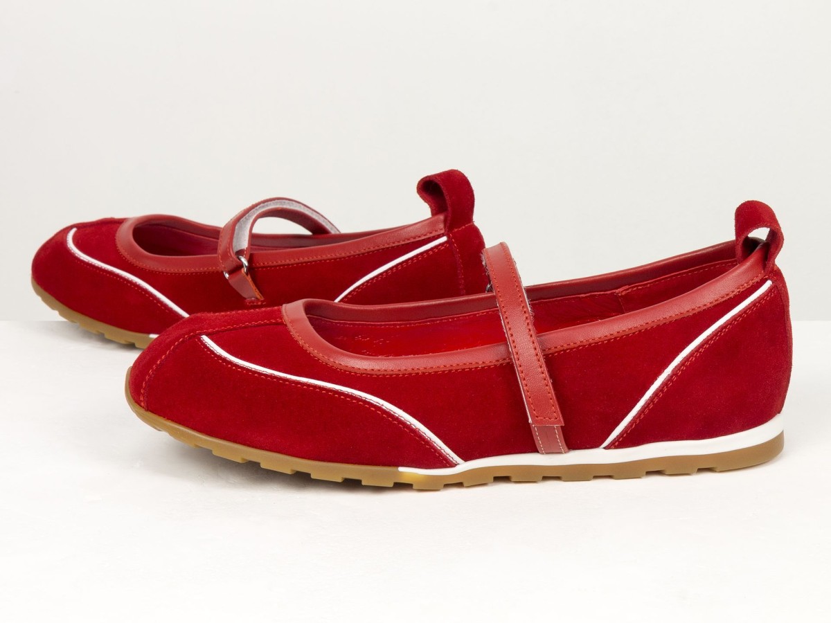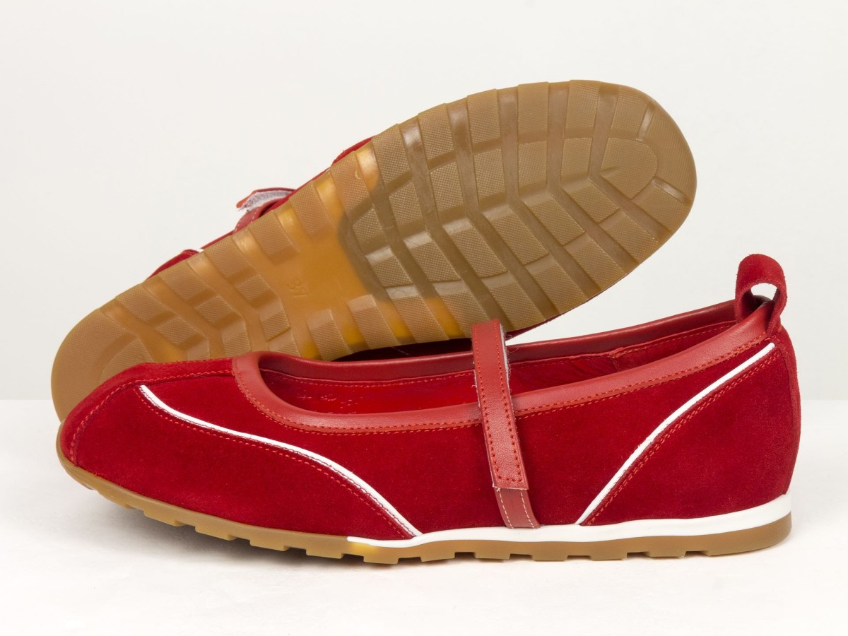 Жіночі балетки Mary Jane у насиченому червоному кольорі - це ідеальний варіант для тих, хто хоче додати акцент у свій образ. Модель виконана з м’якої замші, що виглядає дорого та приємна на дотик.