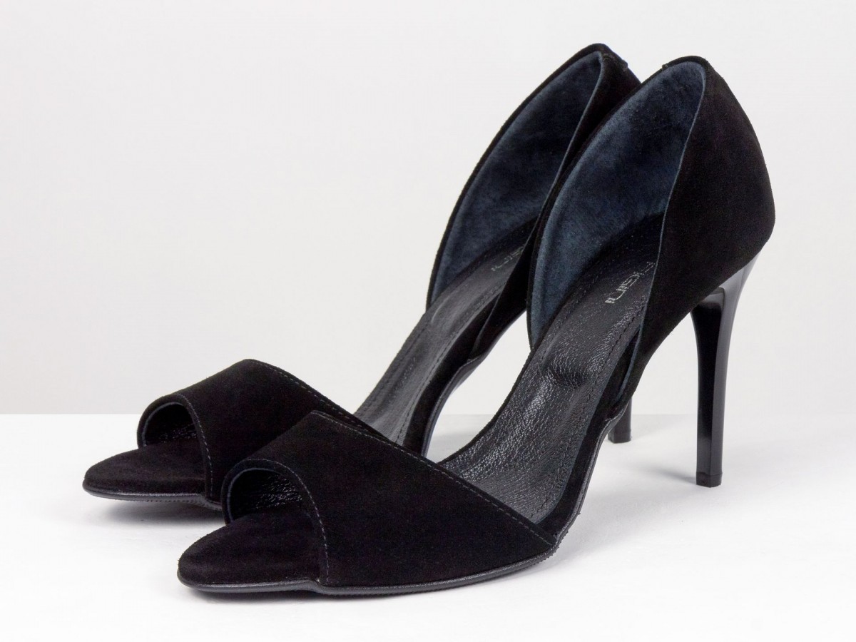 Открытый носок добавляет легкости и изящества, а высокая тонкая шпилька визуально удлиняет ноги и создает стройный силуэт. Благодаря анатомической посадке и удобной колодке модель комфортна даже при длительном ношении.