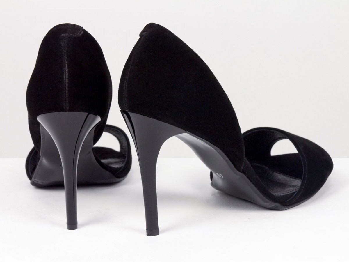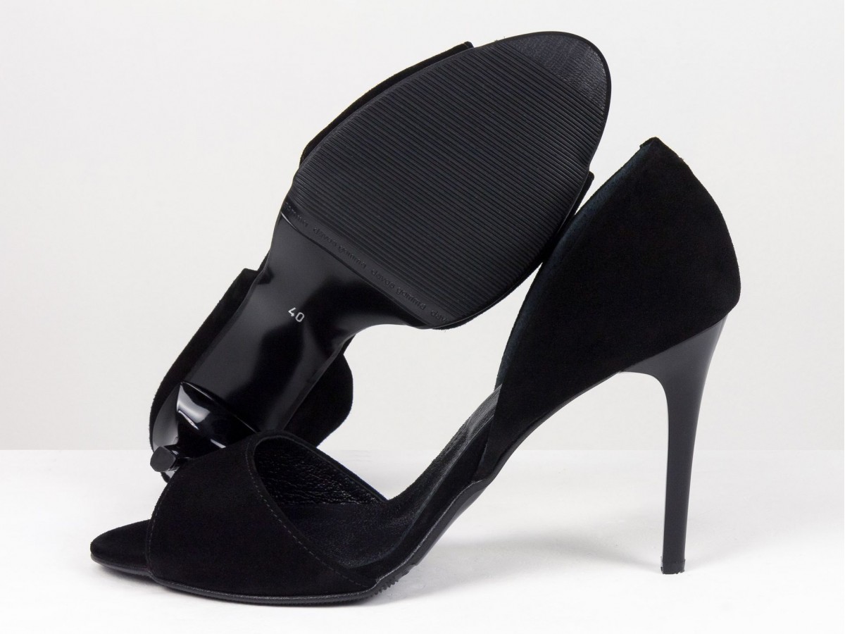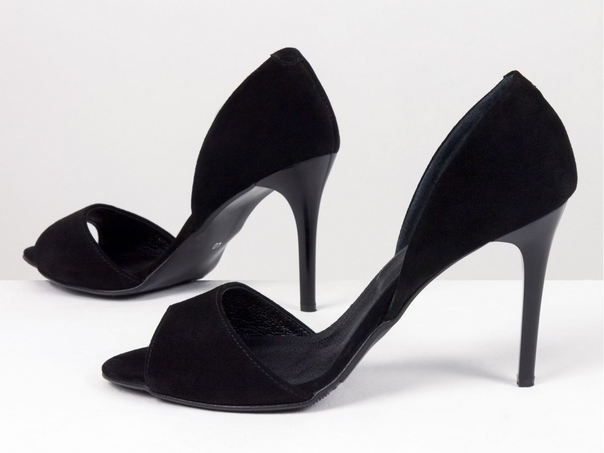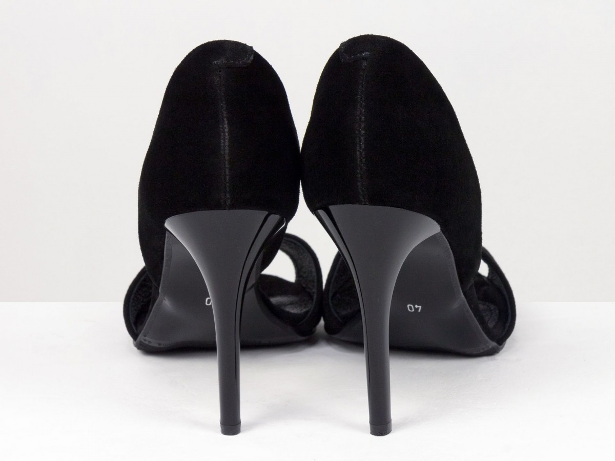 Черные замшевые босоножки на высоком каблуке - это беспроигрышная классика, которая подчеркивает женственность и элегантность. Модель выполнена из натуральной замши, что придает обуви глубокий, благородный вид.