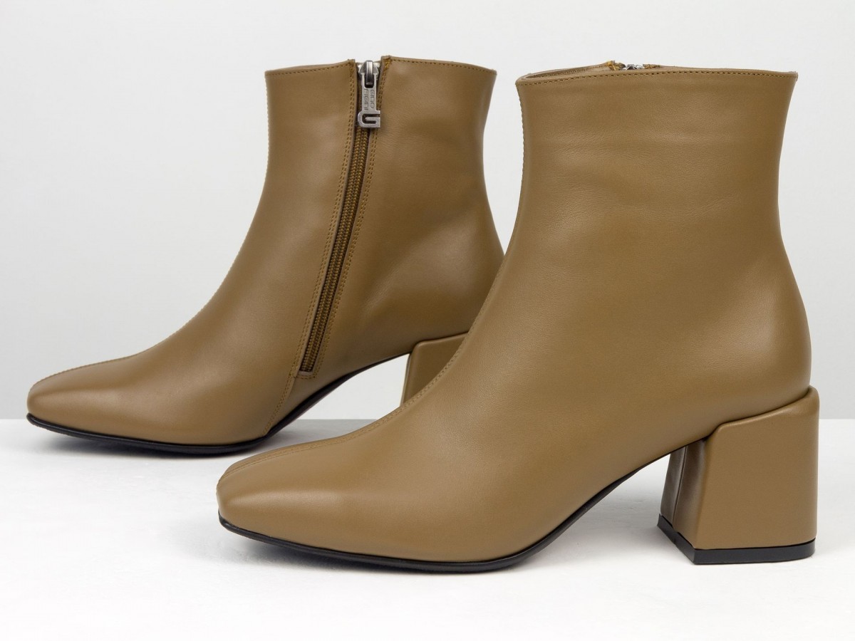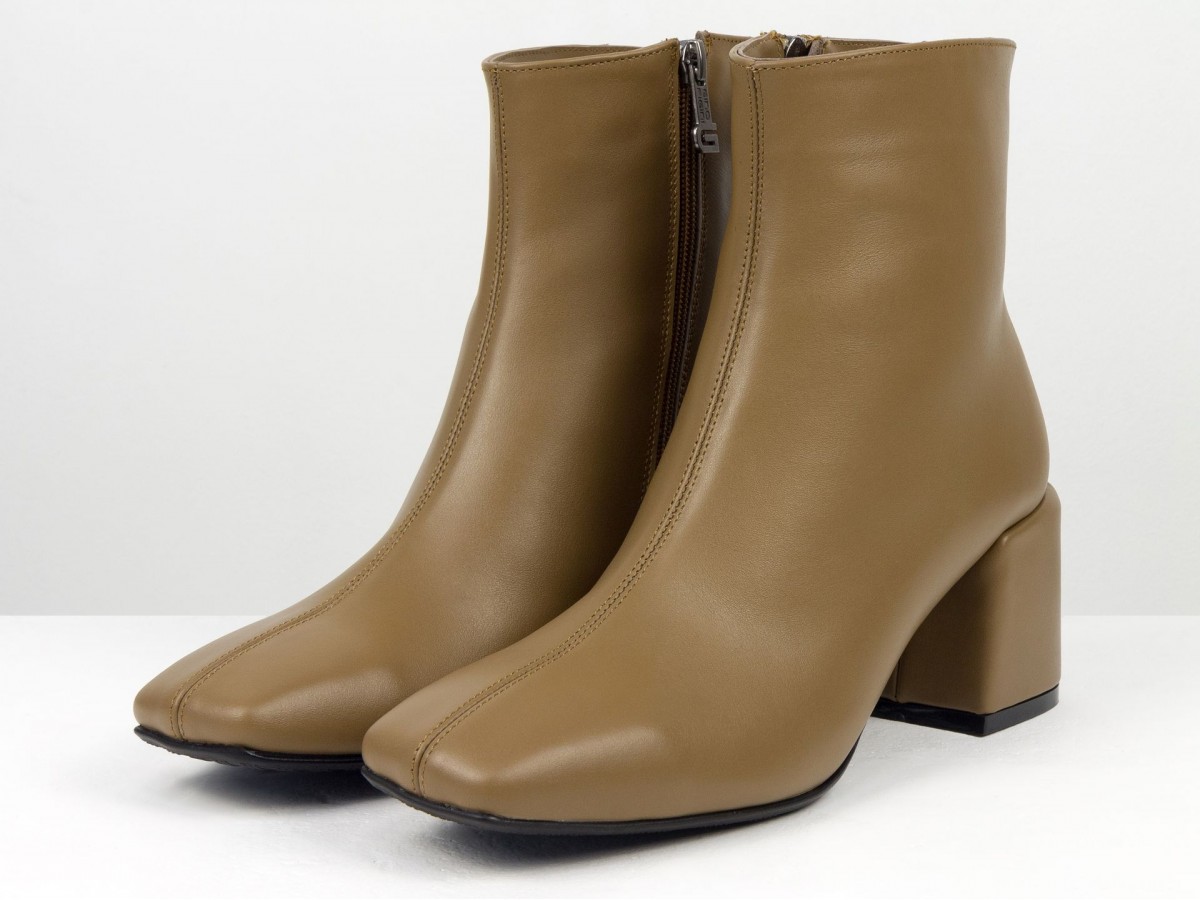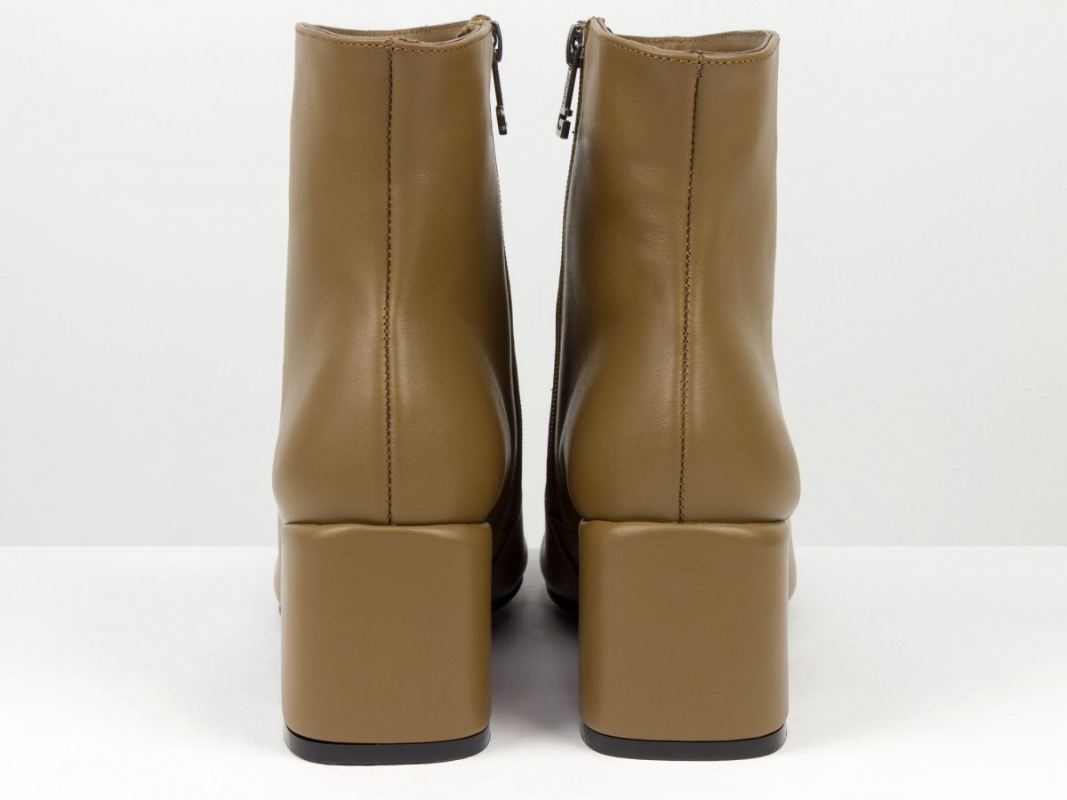 Жіночі карамельні черевики з натуральної шкіри з обтяжним підбором та блискавкою