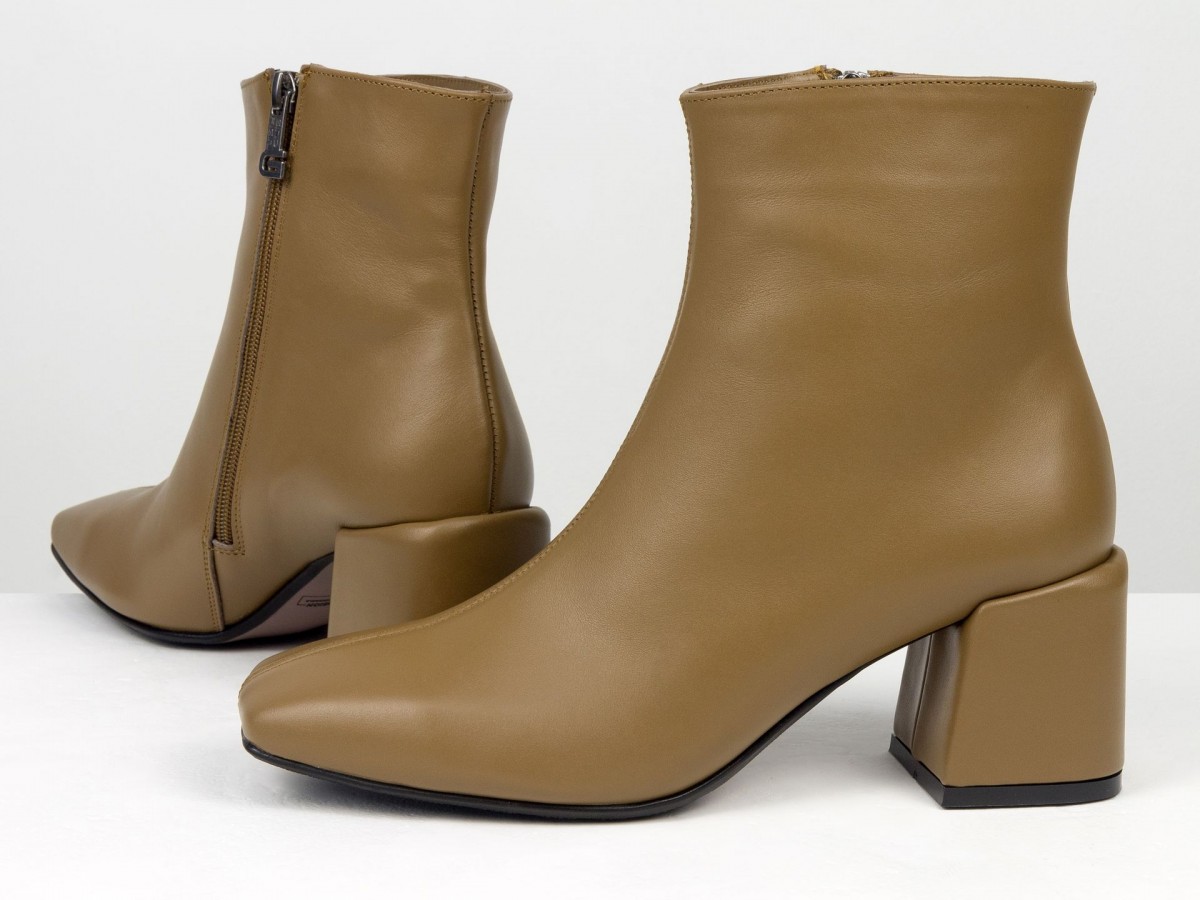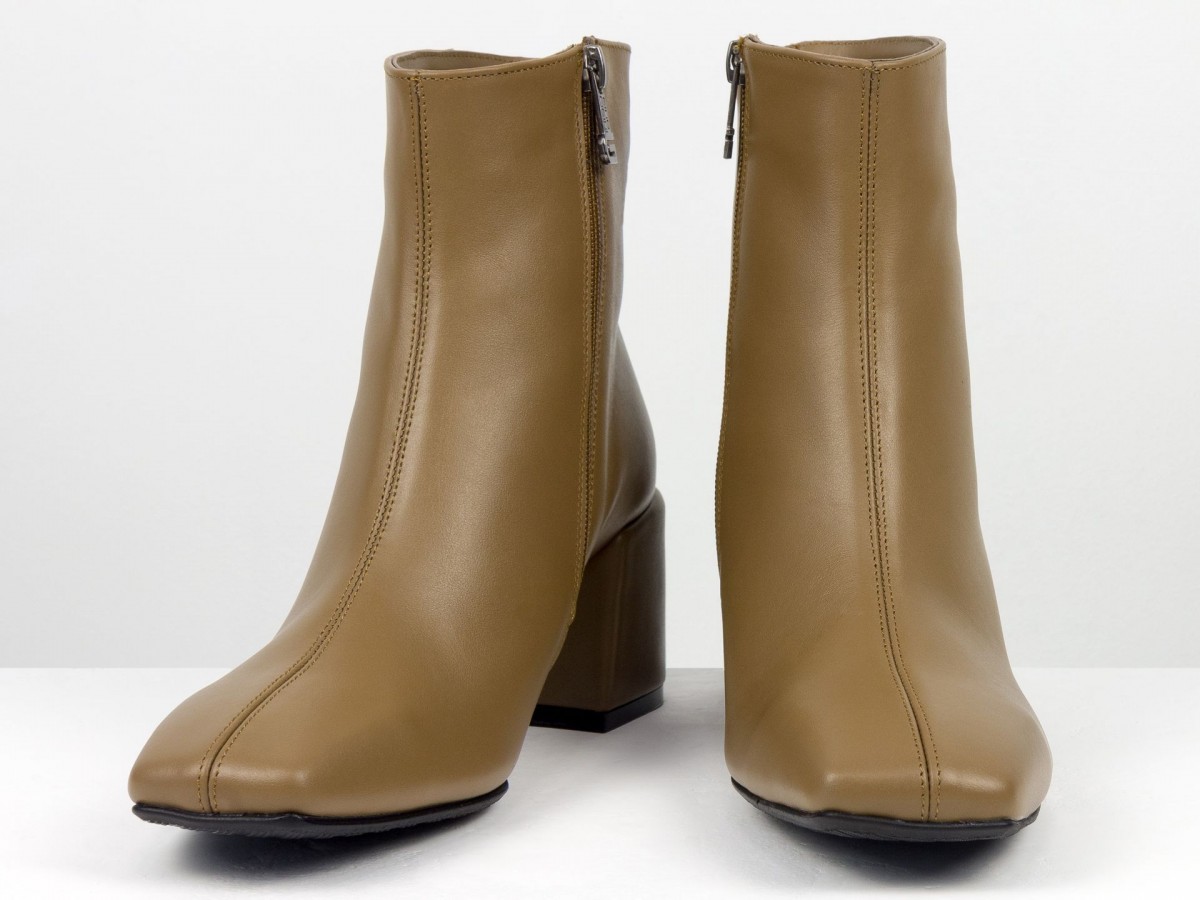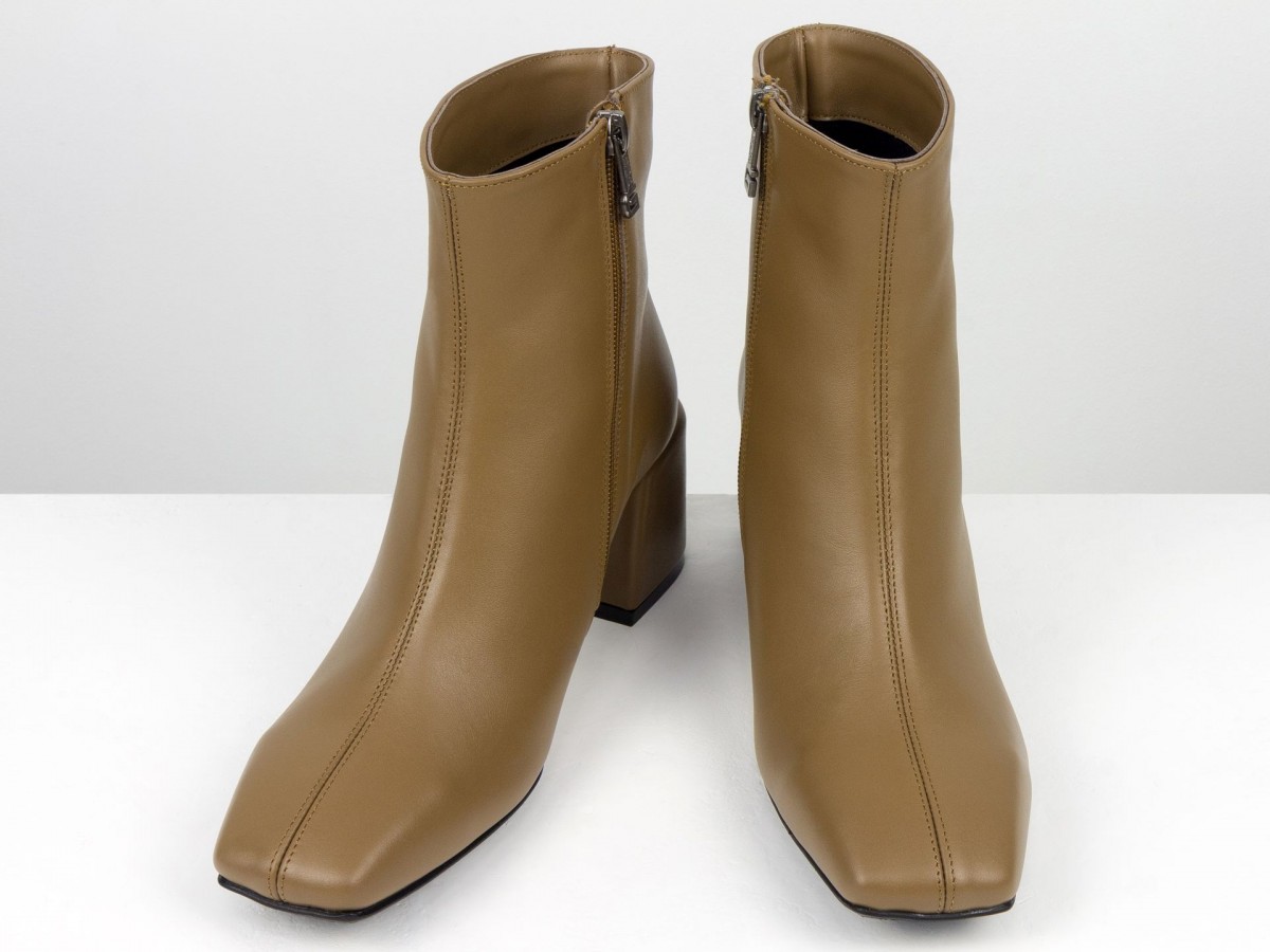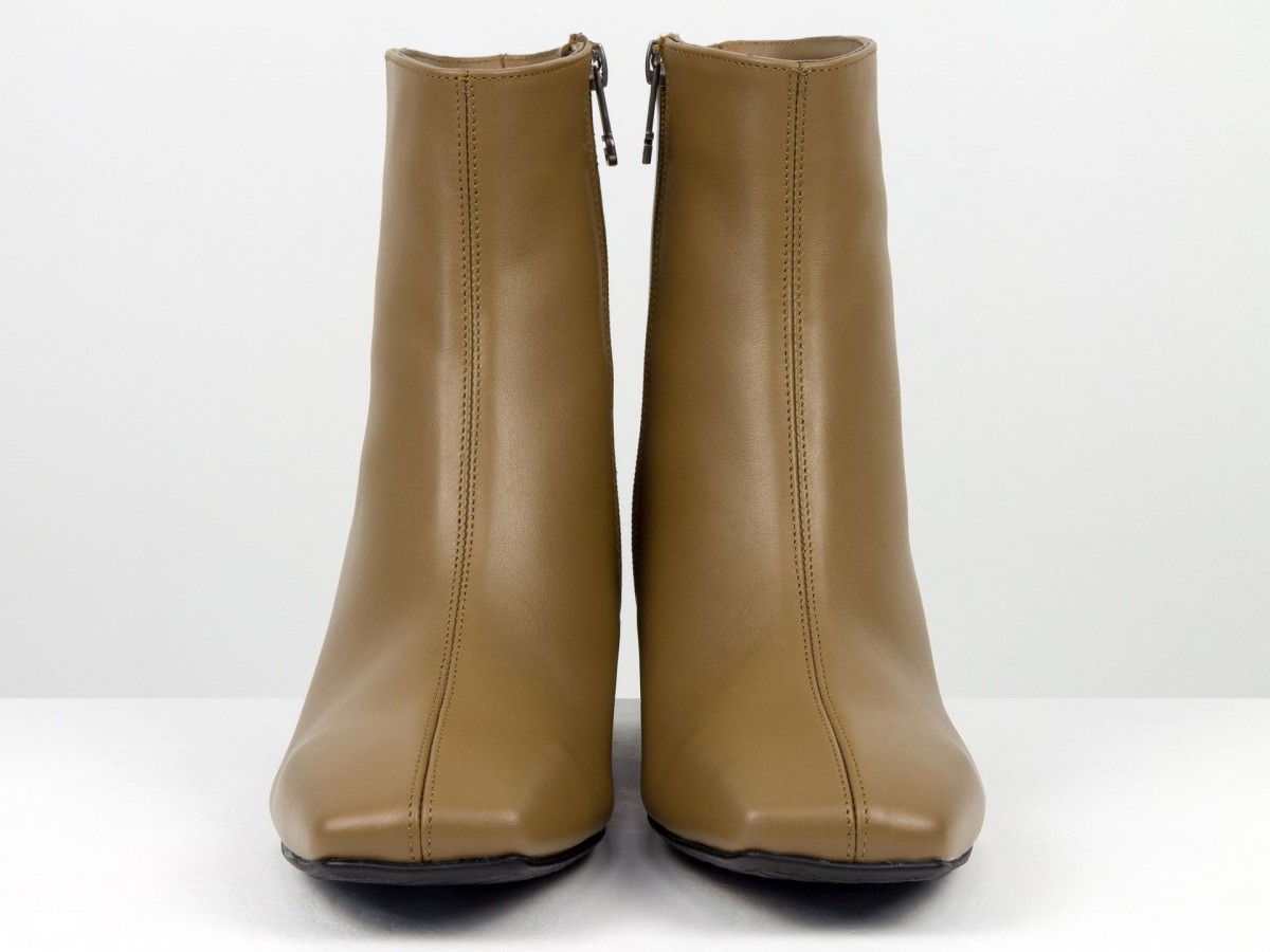 Жіночі карамельні черевики з натуральної шкіри з обтяжним підбором та блискавкою