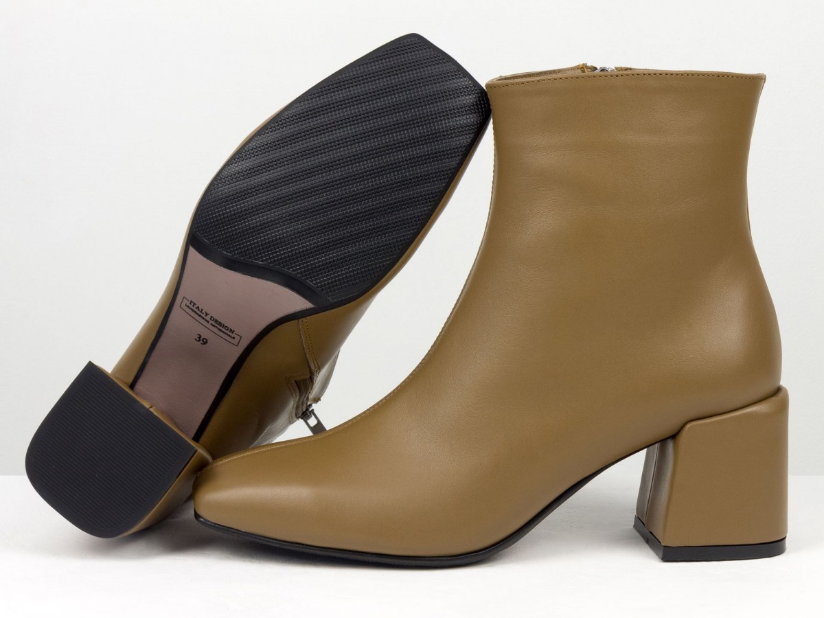 Наголосити на своїй жіночності, екстравагантний образ здатна правильна пара взуття. Класична модель карамельного кольору виготовлена з натуральної італійської шкіри на підошві з квадратними елементами, на обтяжному підборі 6 см та ефектом антиковзання. Стильна класика завжди в ціні і особливо такі оригінальні черевики, які доречно носити в будь-якому напрямку, будь це робота в офісі, ділові переговори, романтичне побачення, презентація або романтична вечеря в ресторані. Вони гармонійно поєднуються з класичними строгими костюмами, вузькими брючками, кюлотами, джинсами, романтичними і діловими сукнями, спідницями різного крою в підлогу.