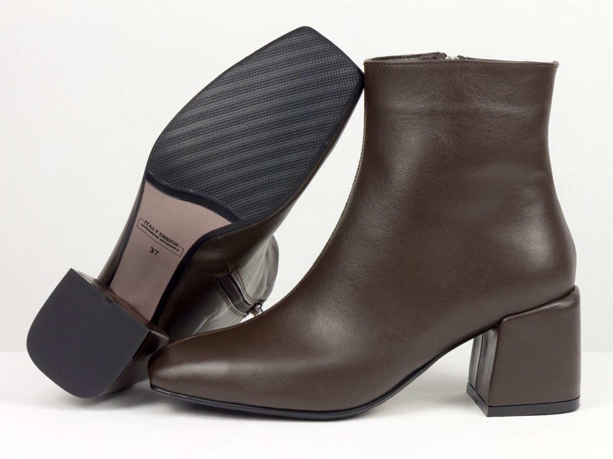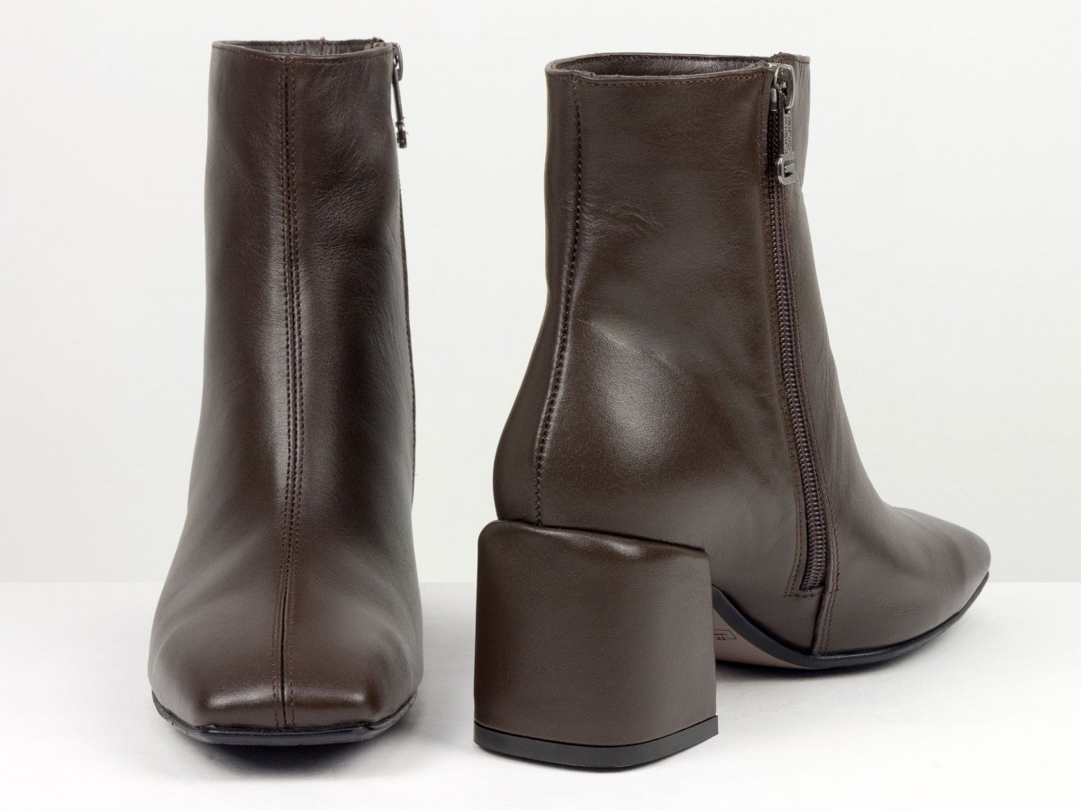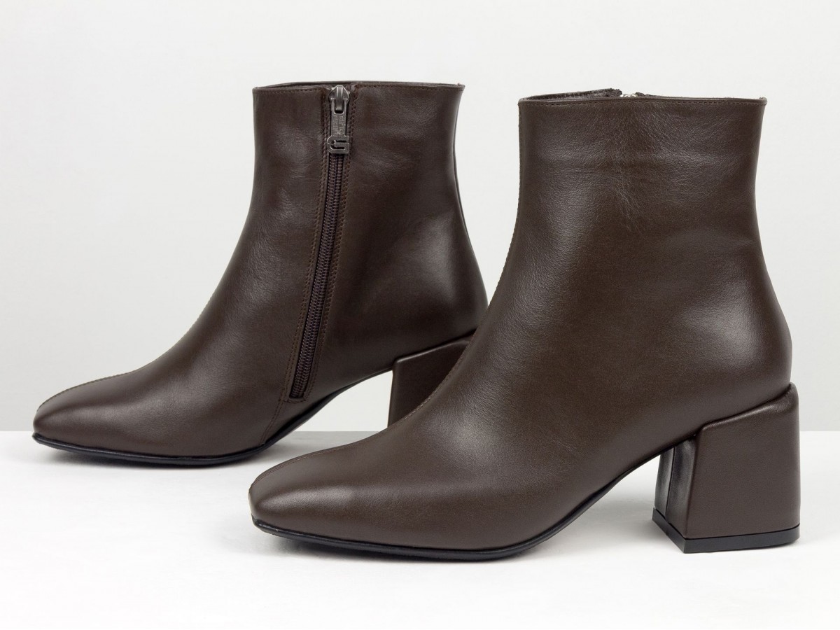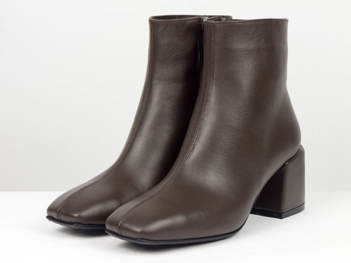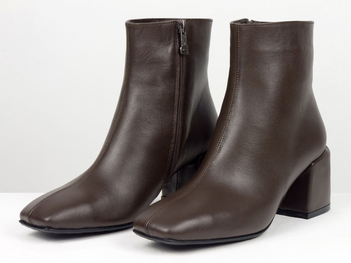 Жіночі шкіряні черевики на підборах у кольорі гіркого шоколаду - це ідеальне поєднання мінімалізму та вишуканості. Виконані з натуральної гладкої шкіри преміум якості, вони забезпечують комфорт і бездоганний вигляд у будь-якому образі. Стійкий квадратний підбор додає висоти, зберігаючи зручність протягом усього дня, а блискавка збоку робить взування швидким і зручним.